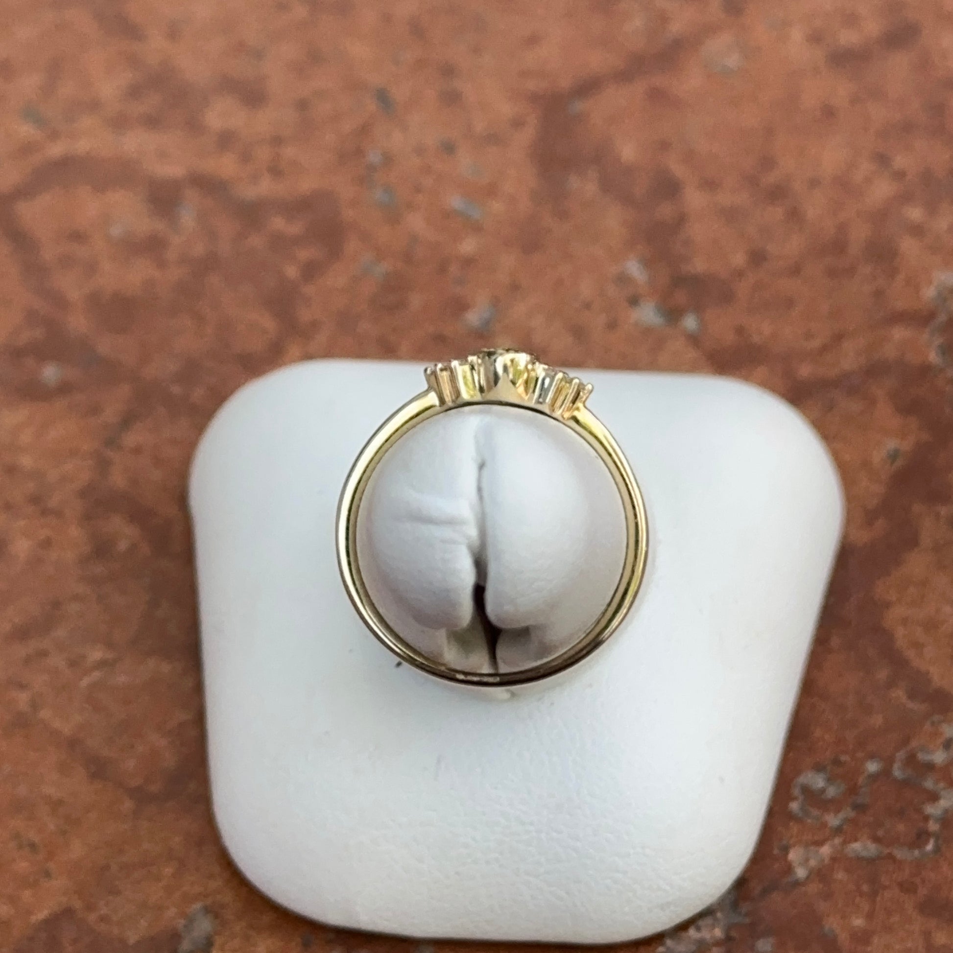 Estate 10KT Yellow Gold Pear-Cut Green Peridot + Diamond Accent Ring Size 6.5