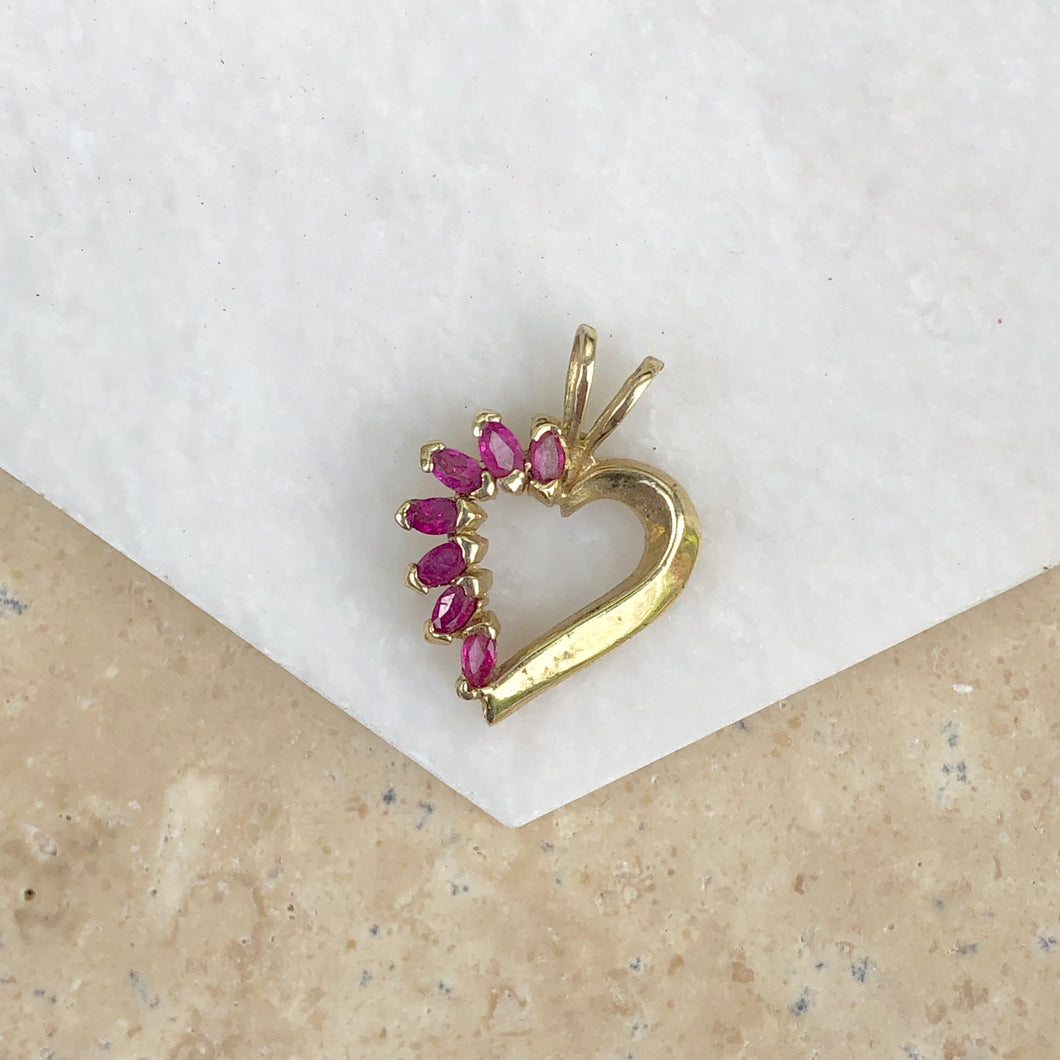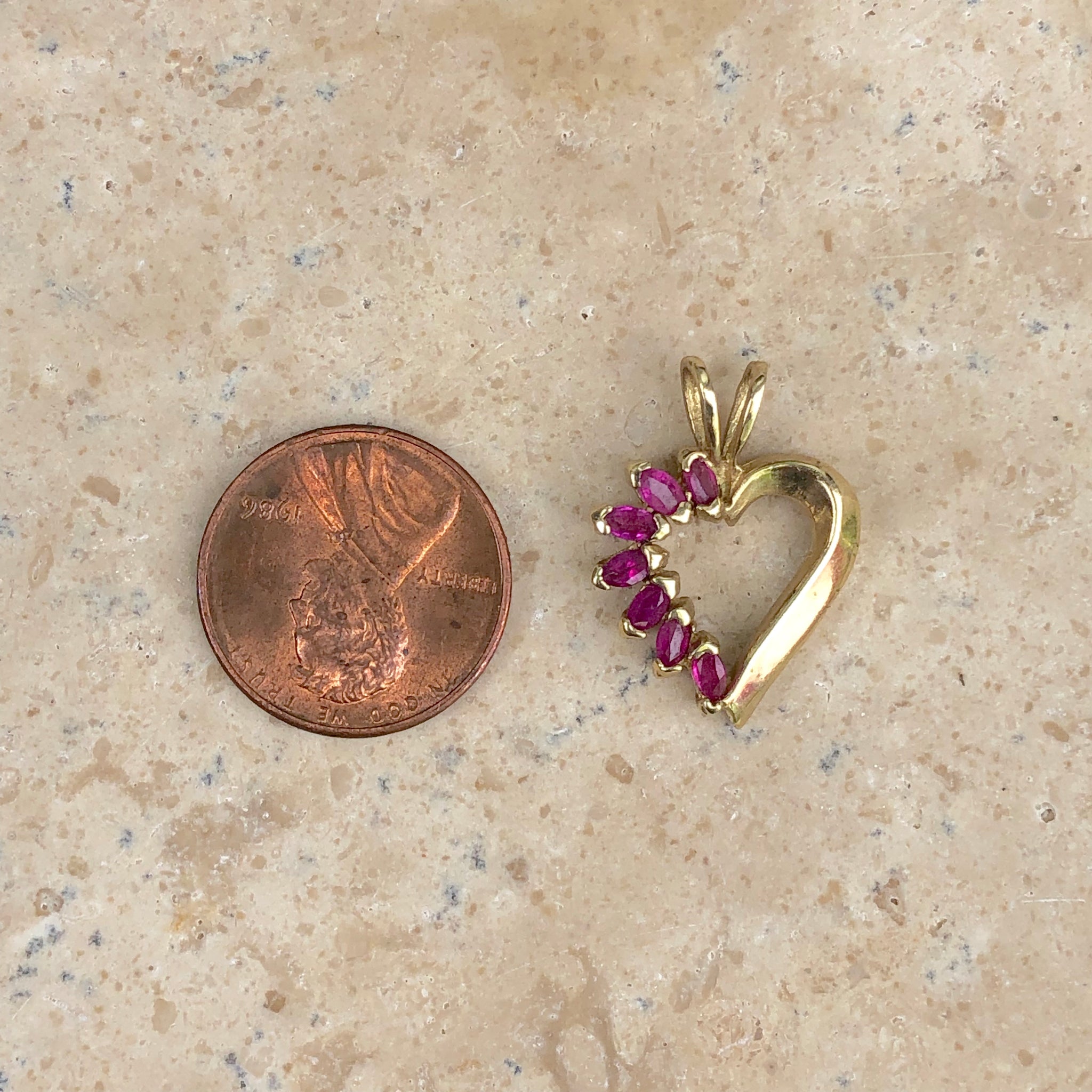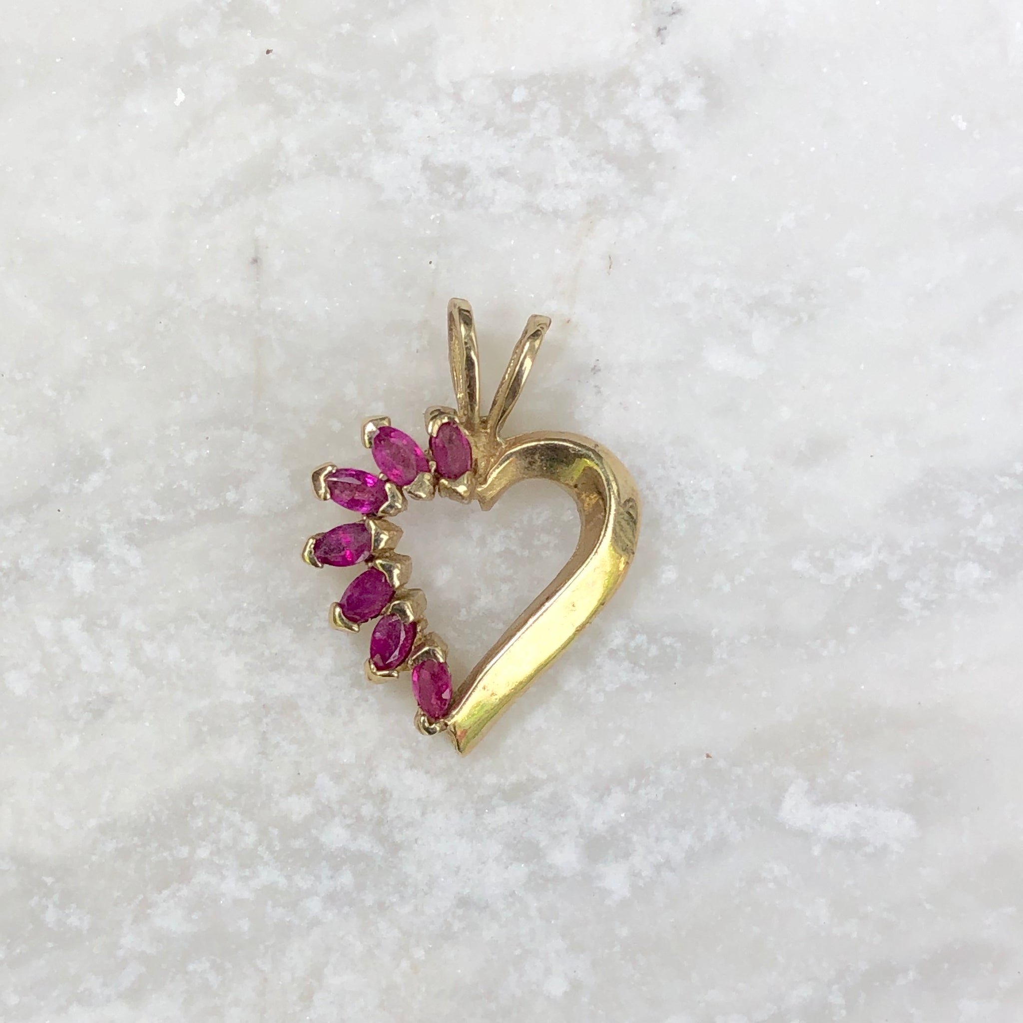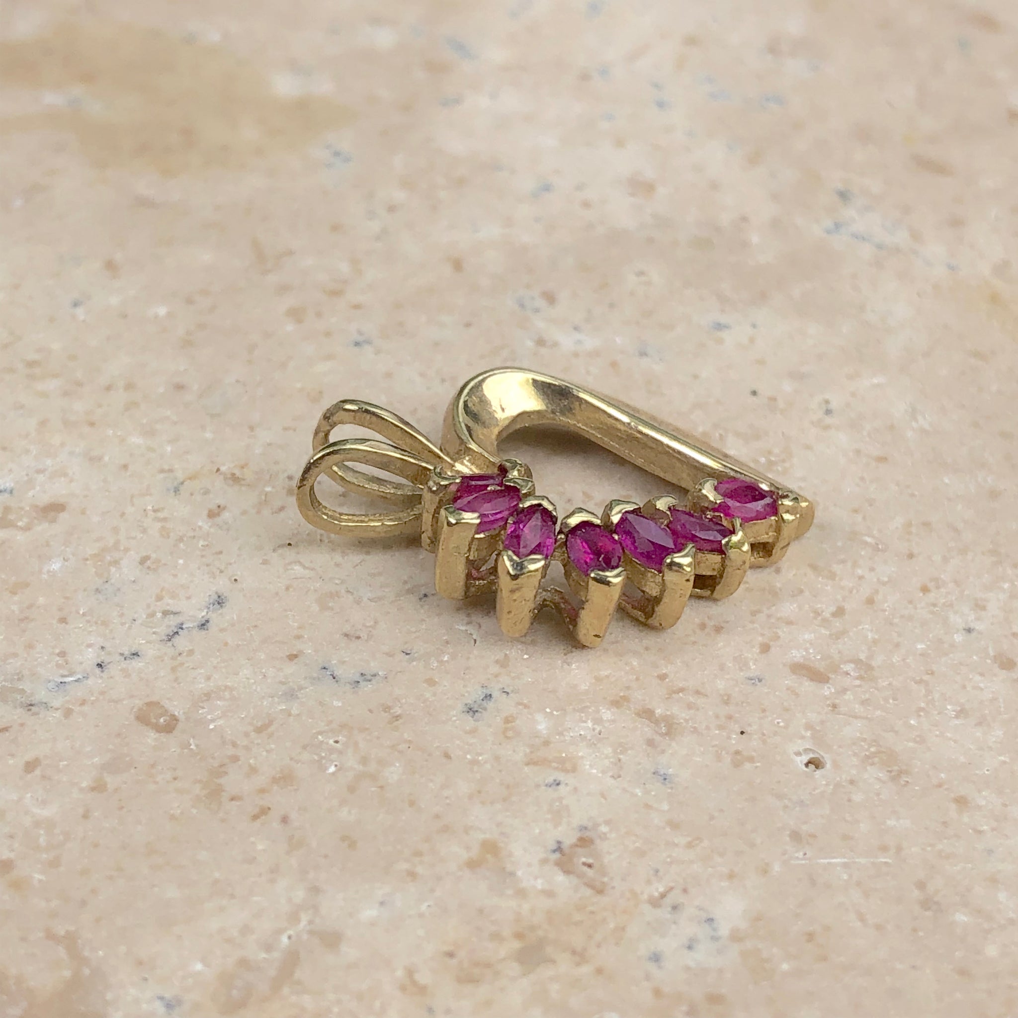 Estate 10KT Yellow Gold Marquise Ruby Heart Pendant