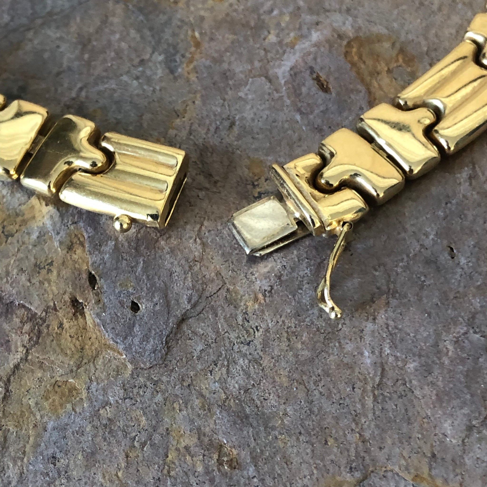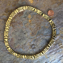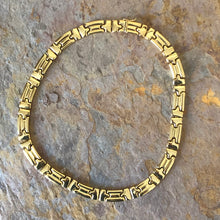 Estate 14KT yellow gold patterned Stampato style necklace. Heavy estate piece in very good condition. Wear by itself or layer it up with more gold necklaces!