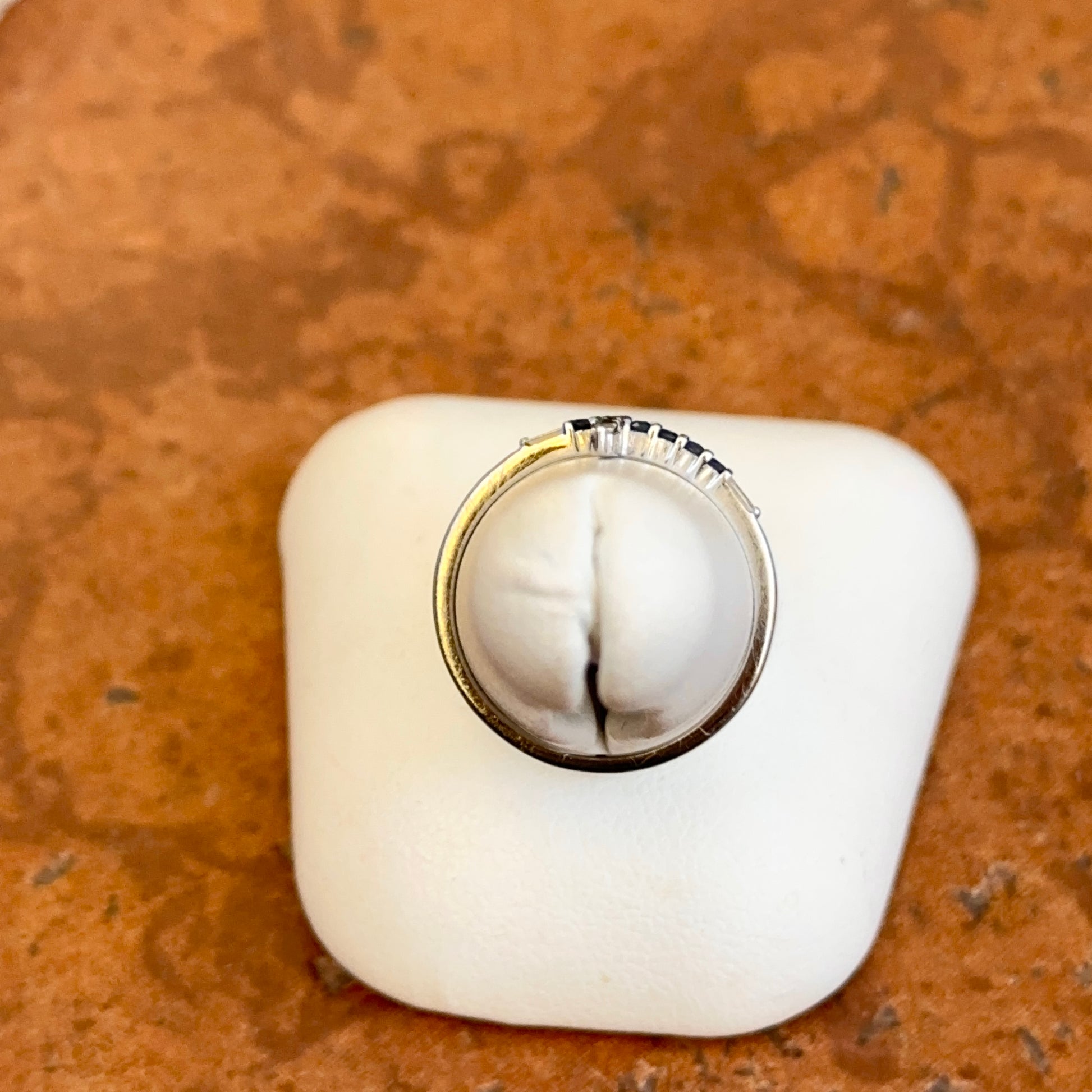 Estate 14K White Gold Round Blue Sapphire + Baguette Diamond Sideways Cross Ring