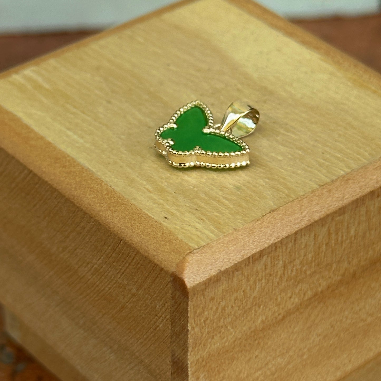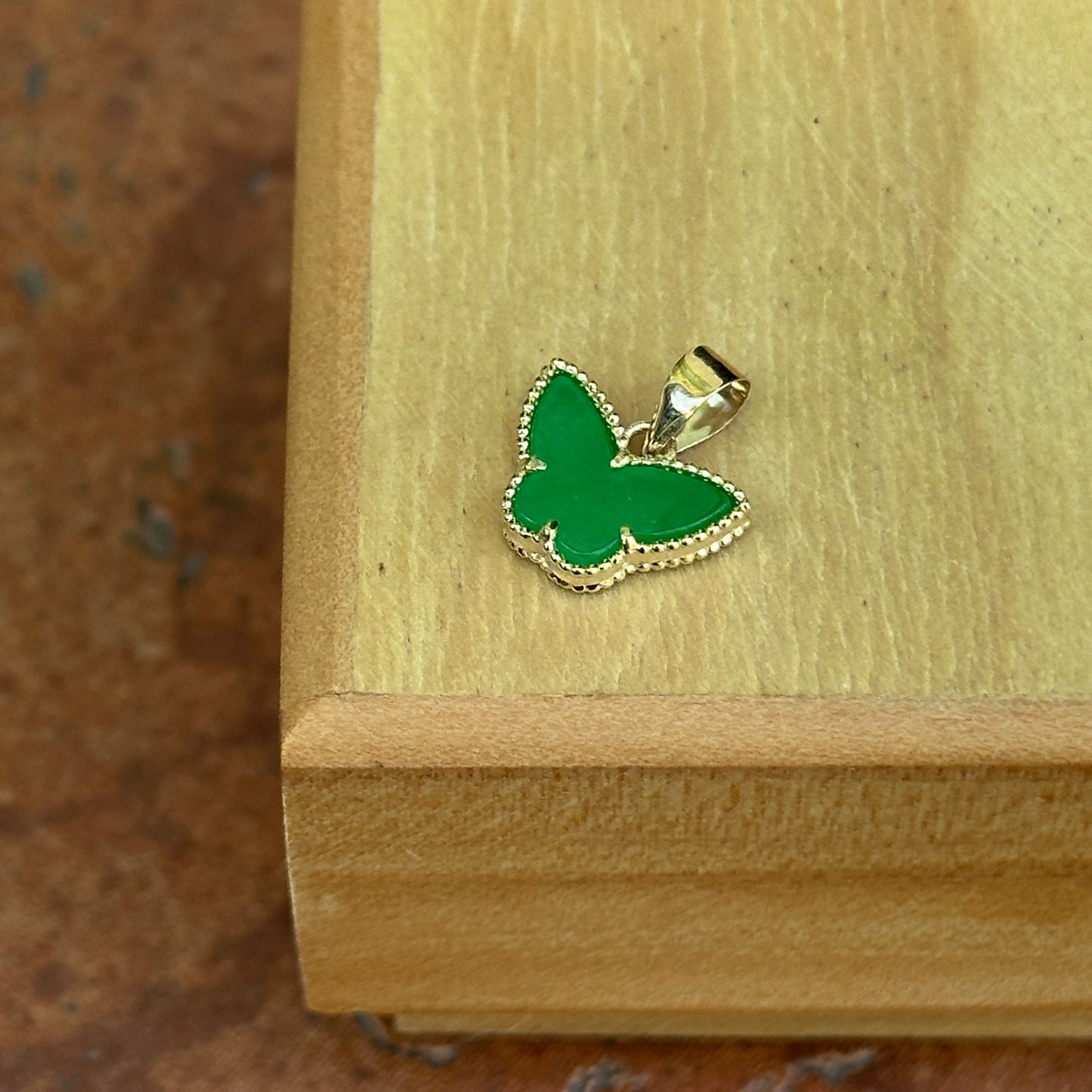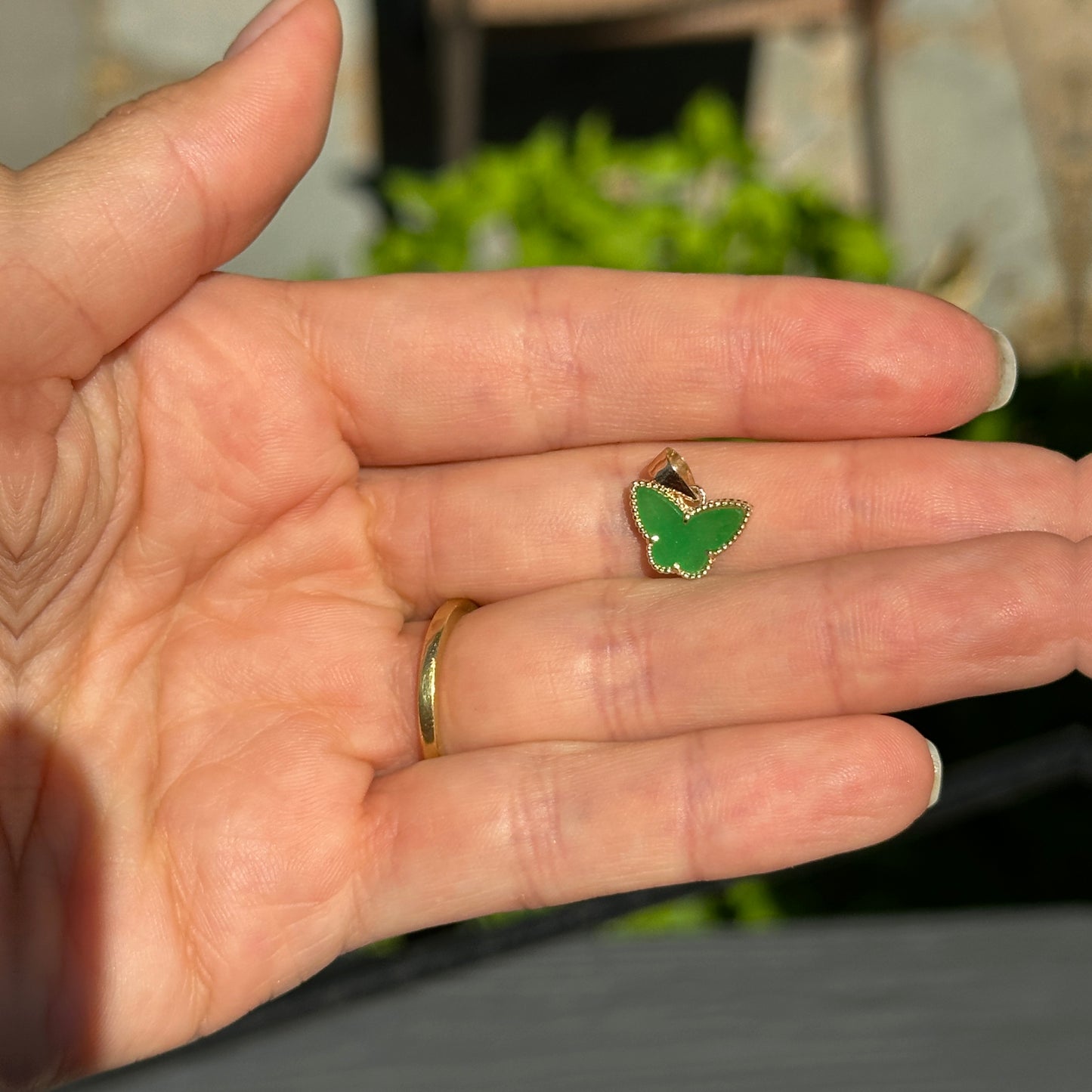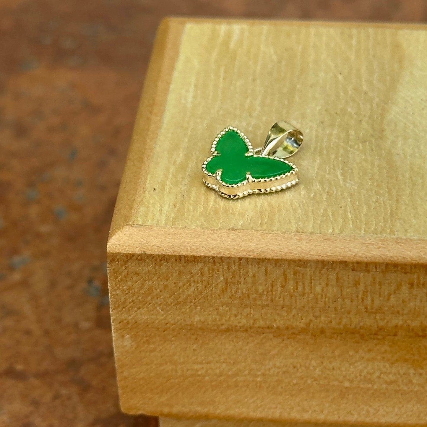 Estate 14K Yellow Gold Dyed Green Jade Bezel Butterfly Pendant Charm
