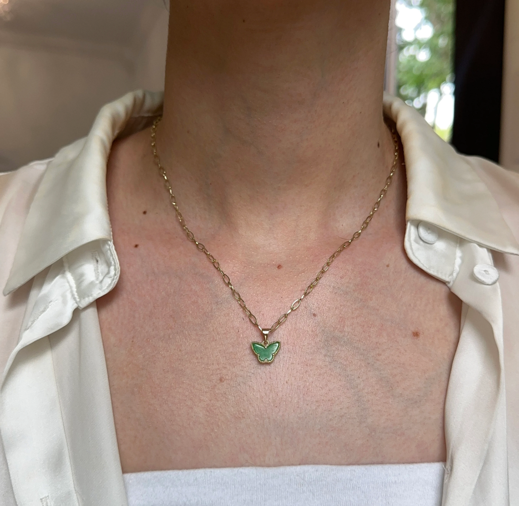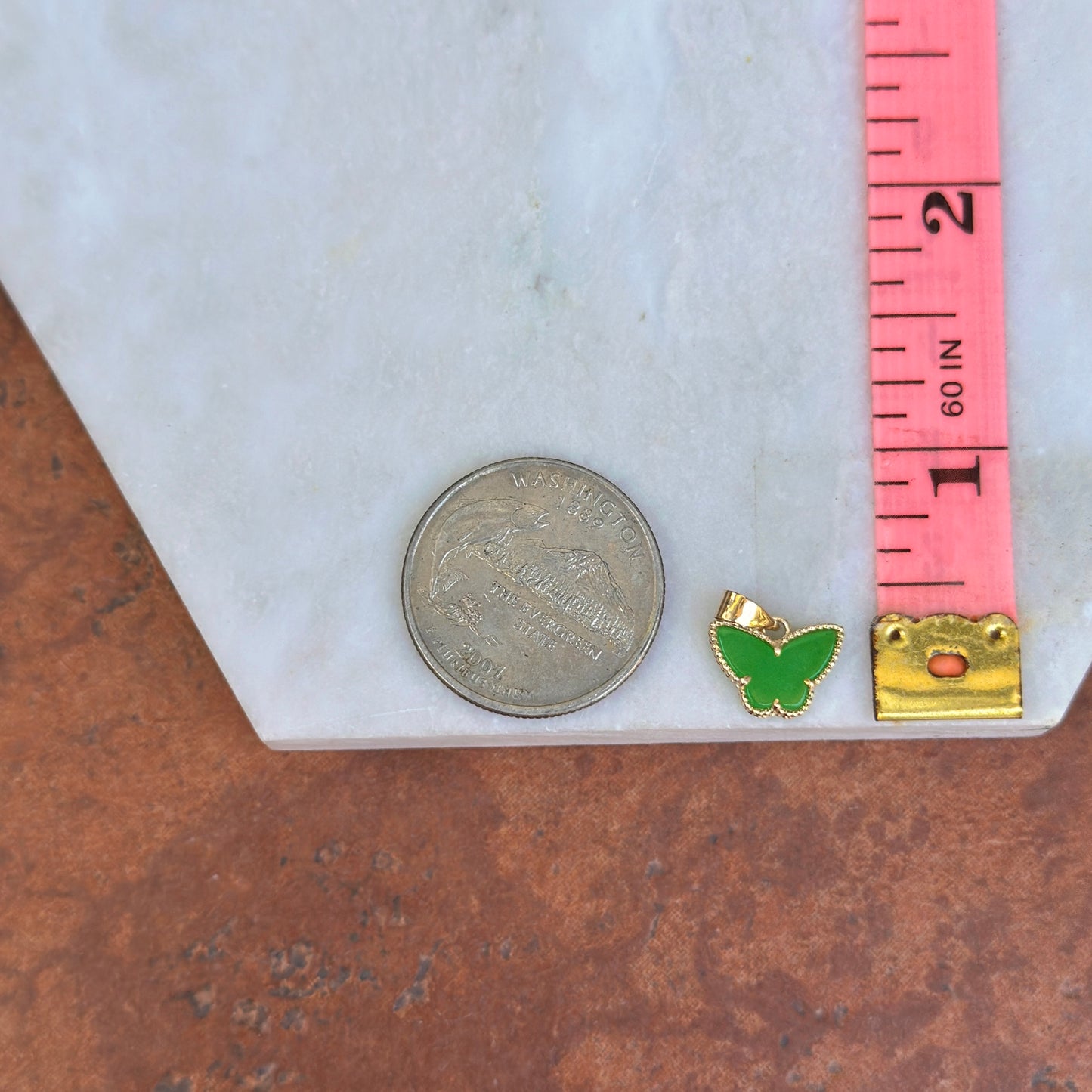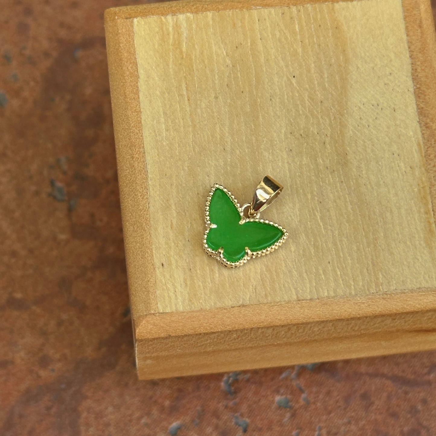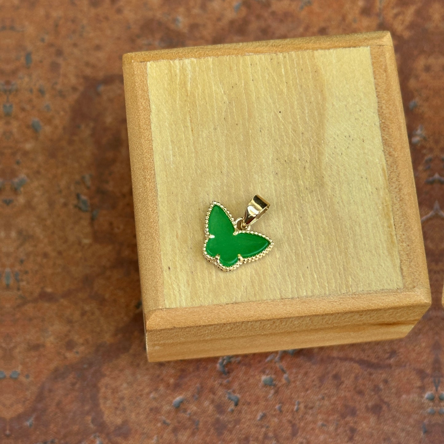 Estate 14K Yellow Gold Dyed Green Jade Bezel Butterfly Pendant Charm