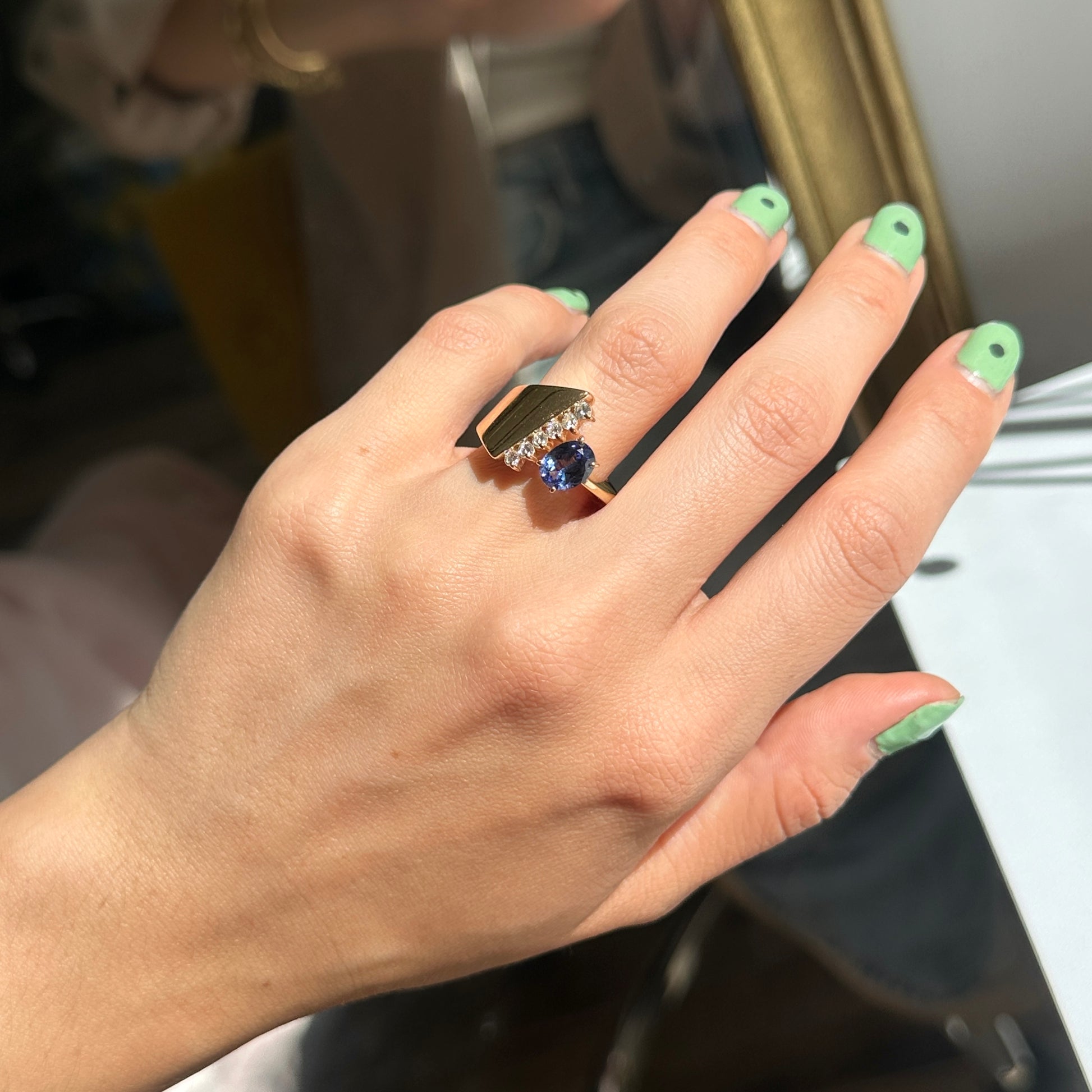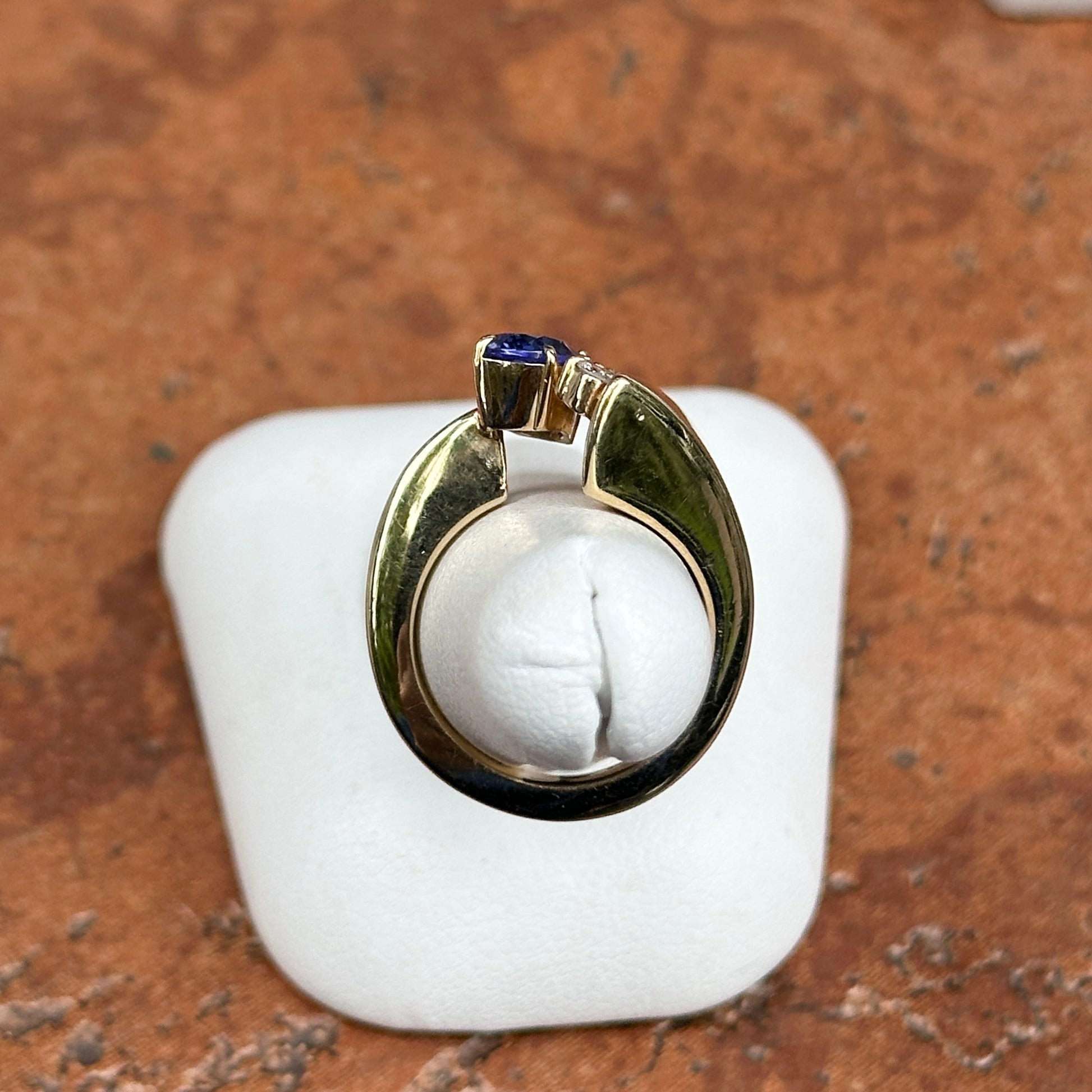 Estate 14K Yellow Gold Oval Tanzanite and Round Diamond Ring