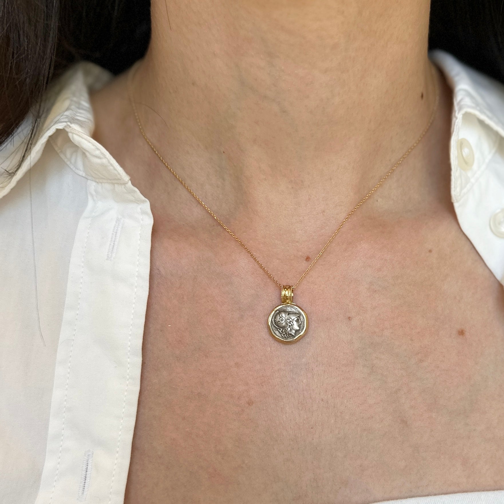 Estate 14K Yellow Gold & Silver Athena/King Pyrrhus Replica Coin Pendant