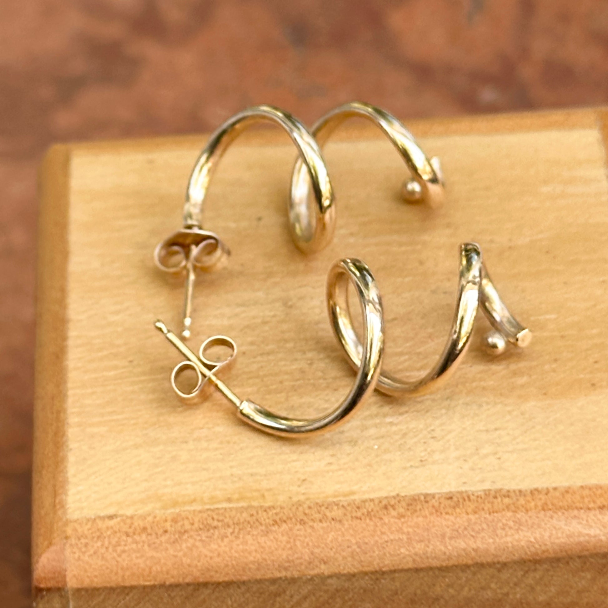 14K yellow gold spiral wire pierced earrings. Earrings are twisted shape with ball/bead ends for sliding on earring charms!