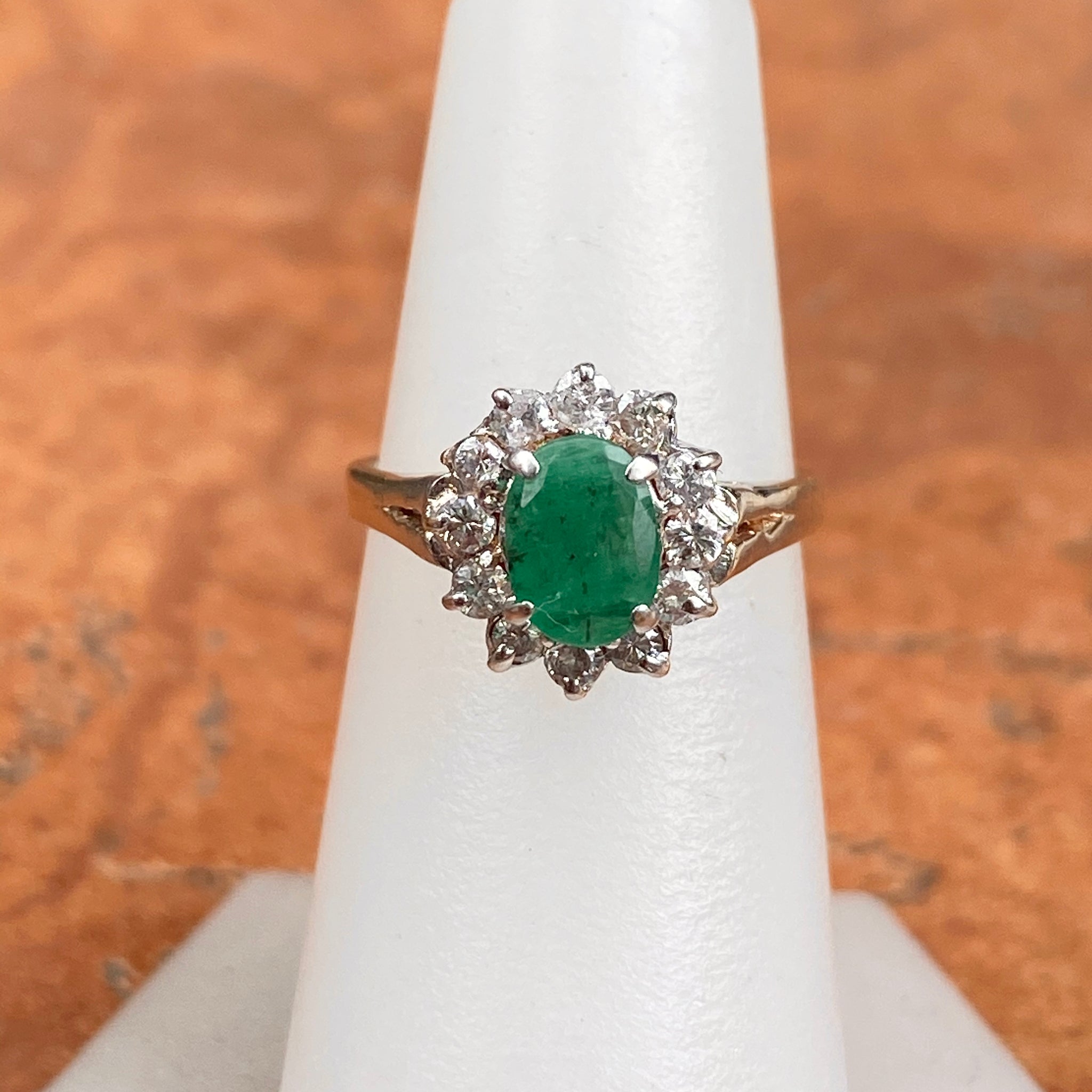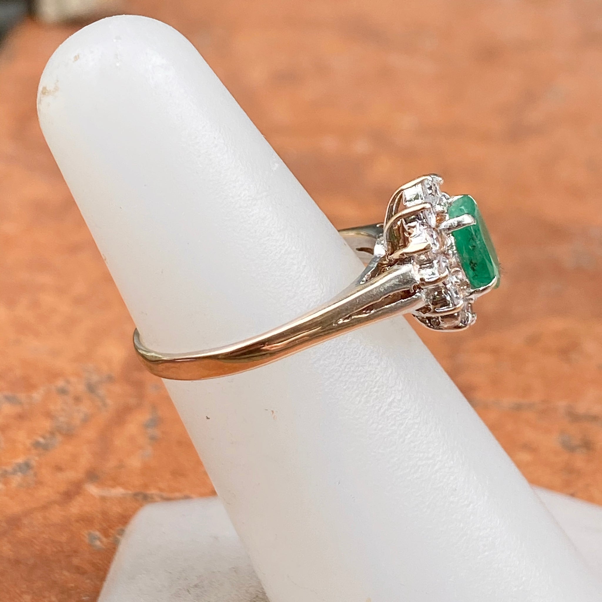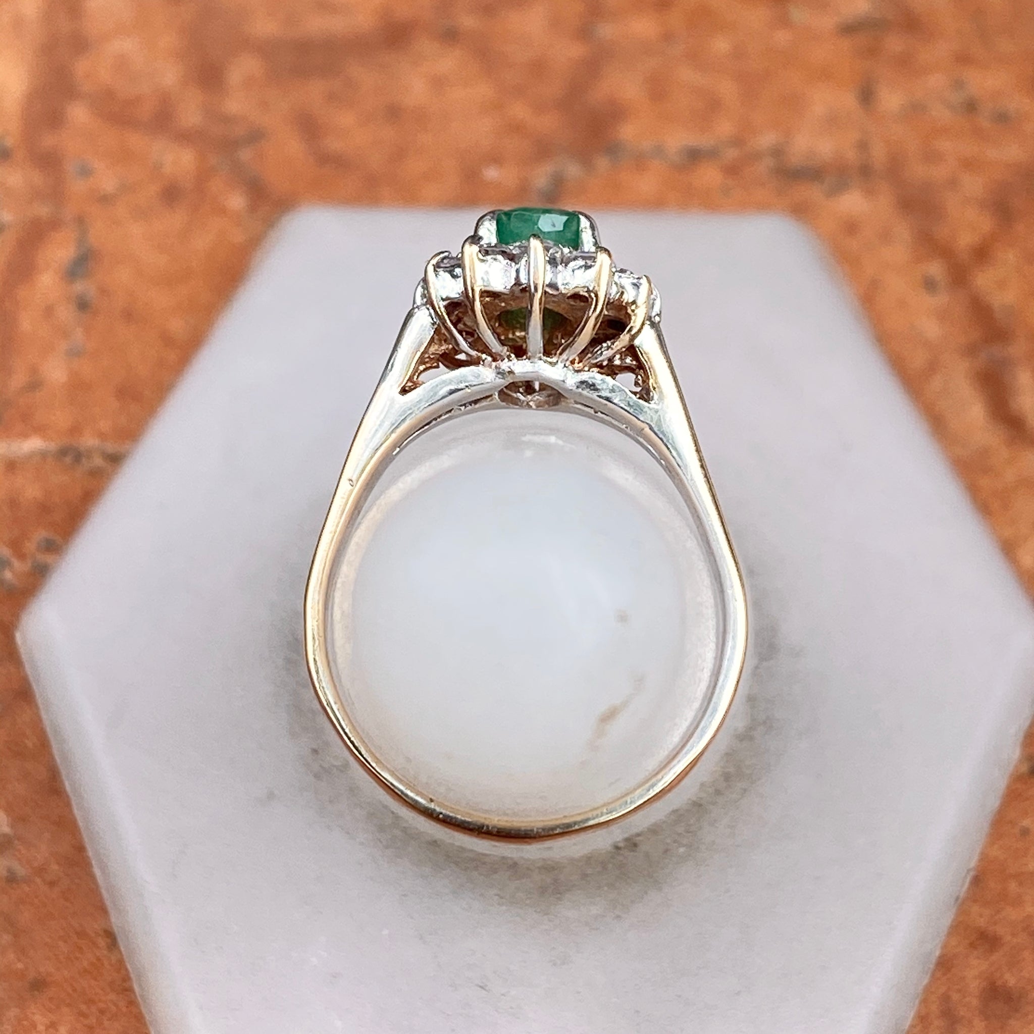 Estate 14KT White Gold Oval .90CT Emerald + Diamond Accent Ring