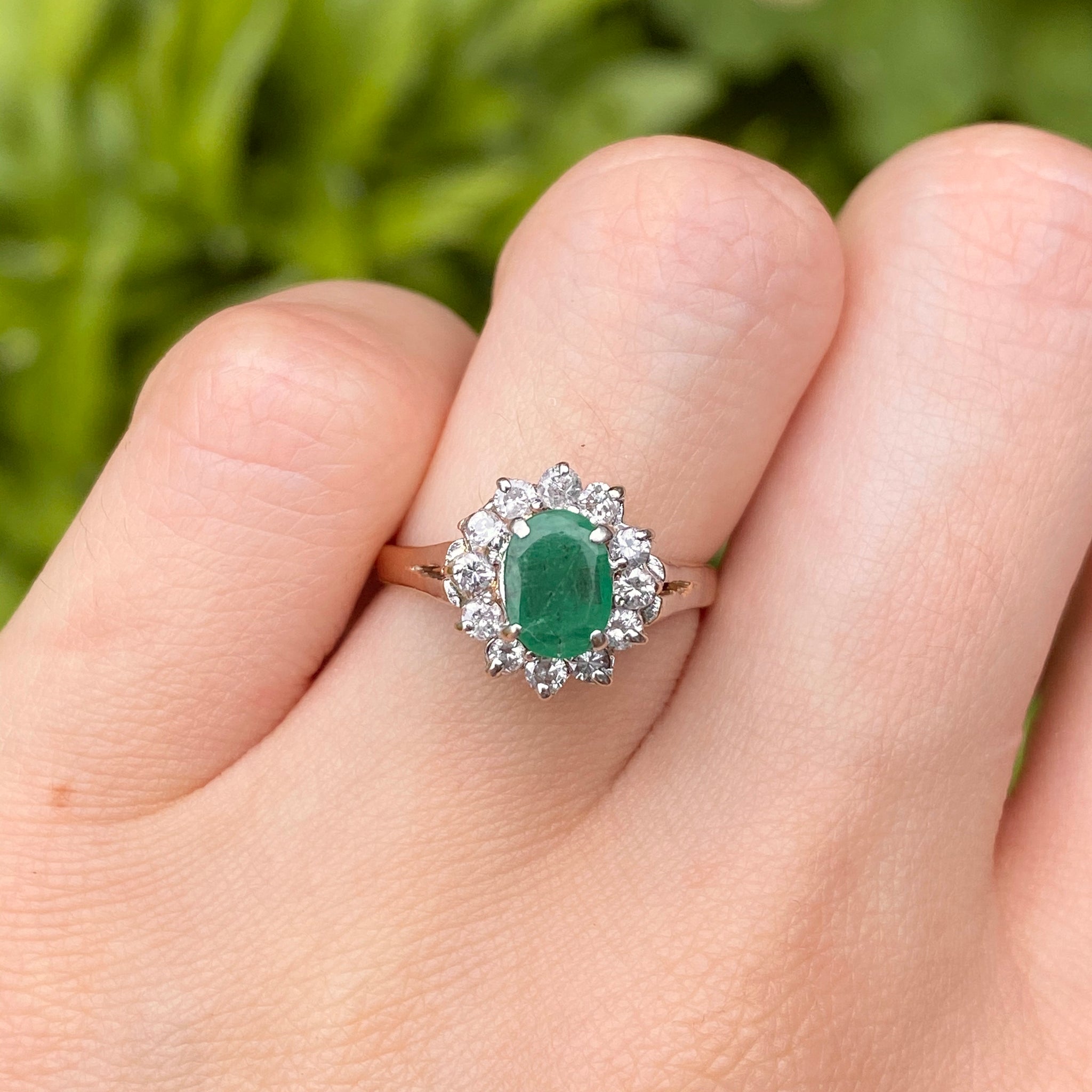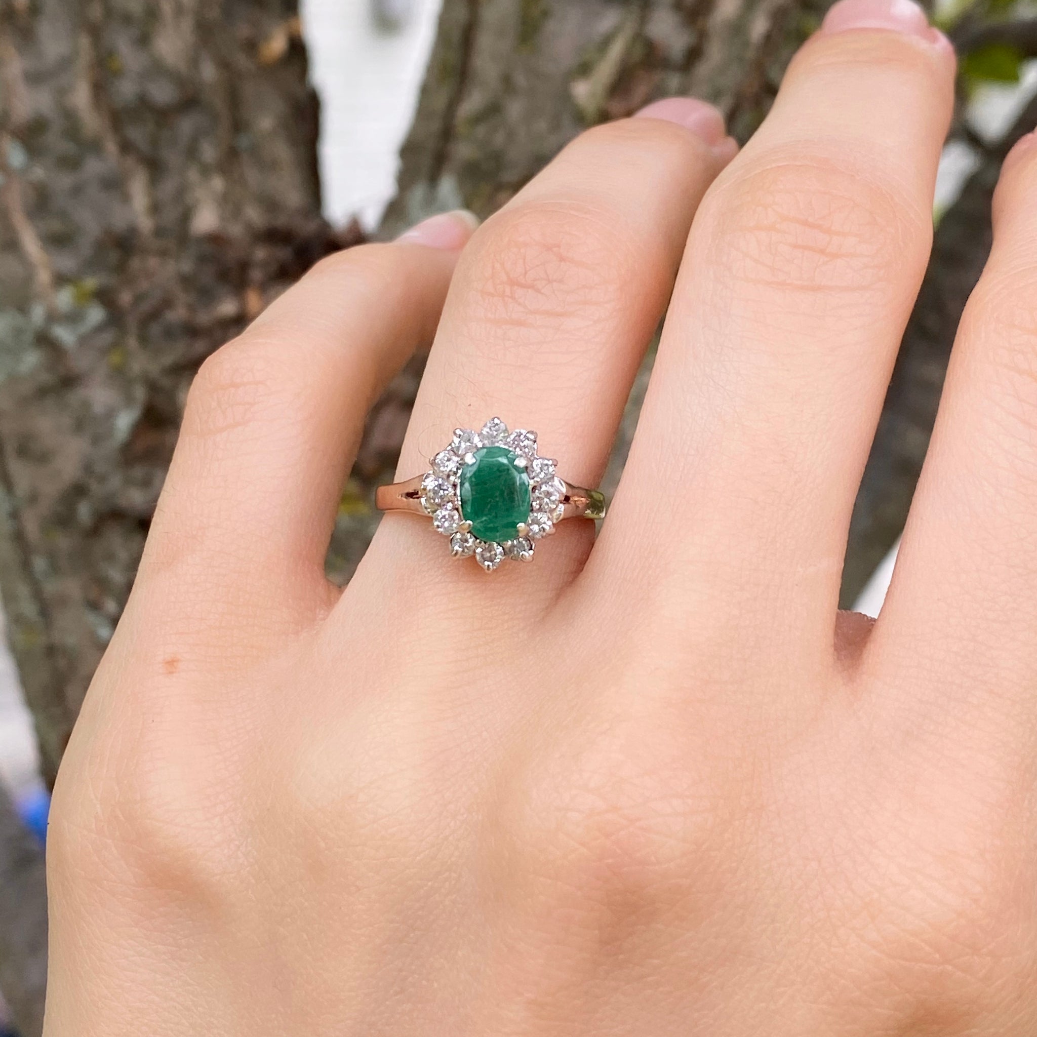 - Genuine, oval emerald measures: 7mm x 5.5mm