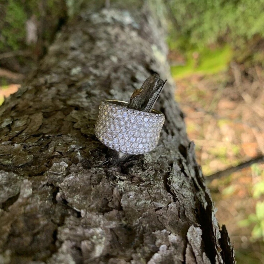 Estate 14KT White Gold 3.00 CT Pave Diamond Concave Ring
