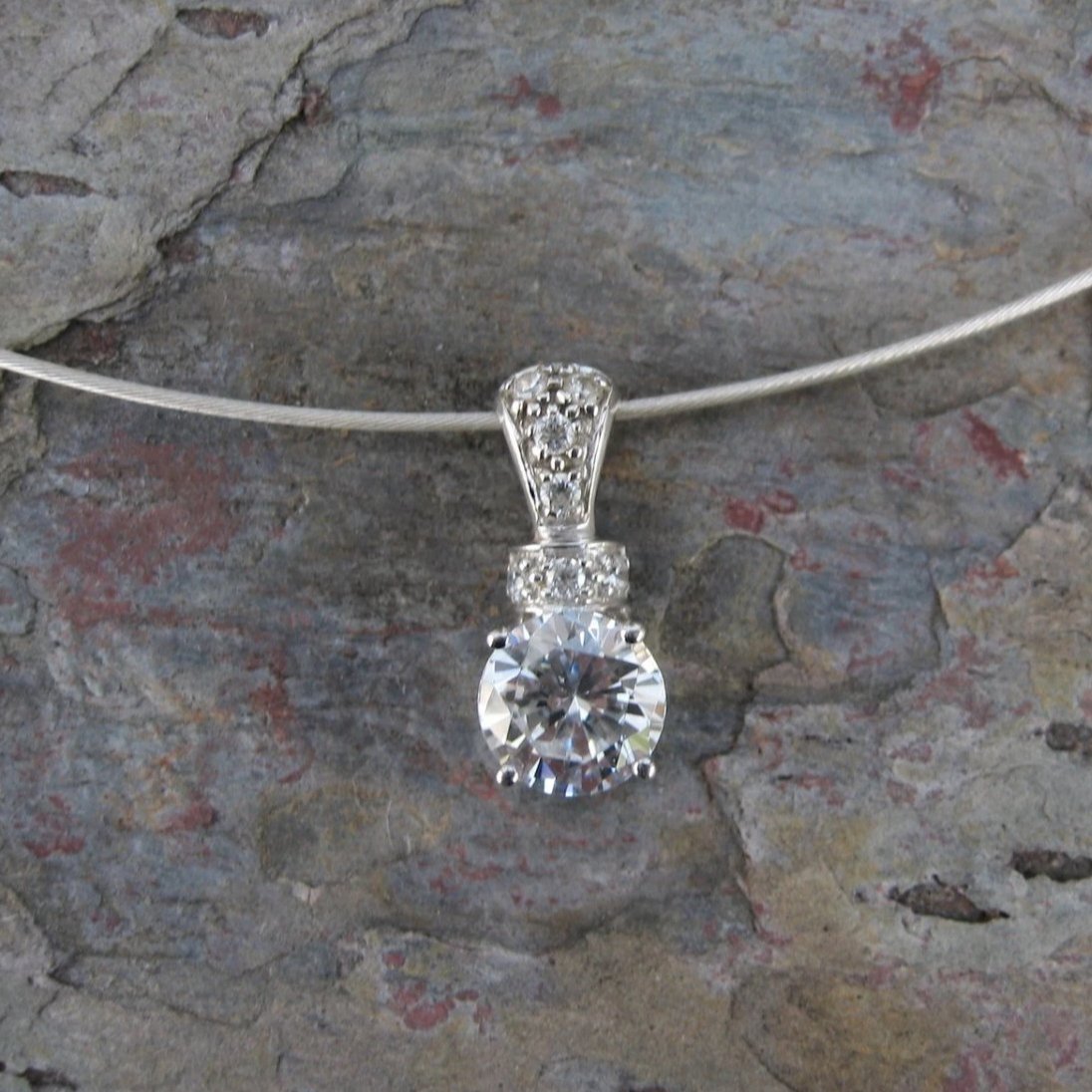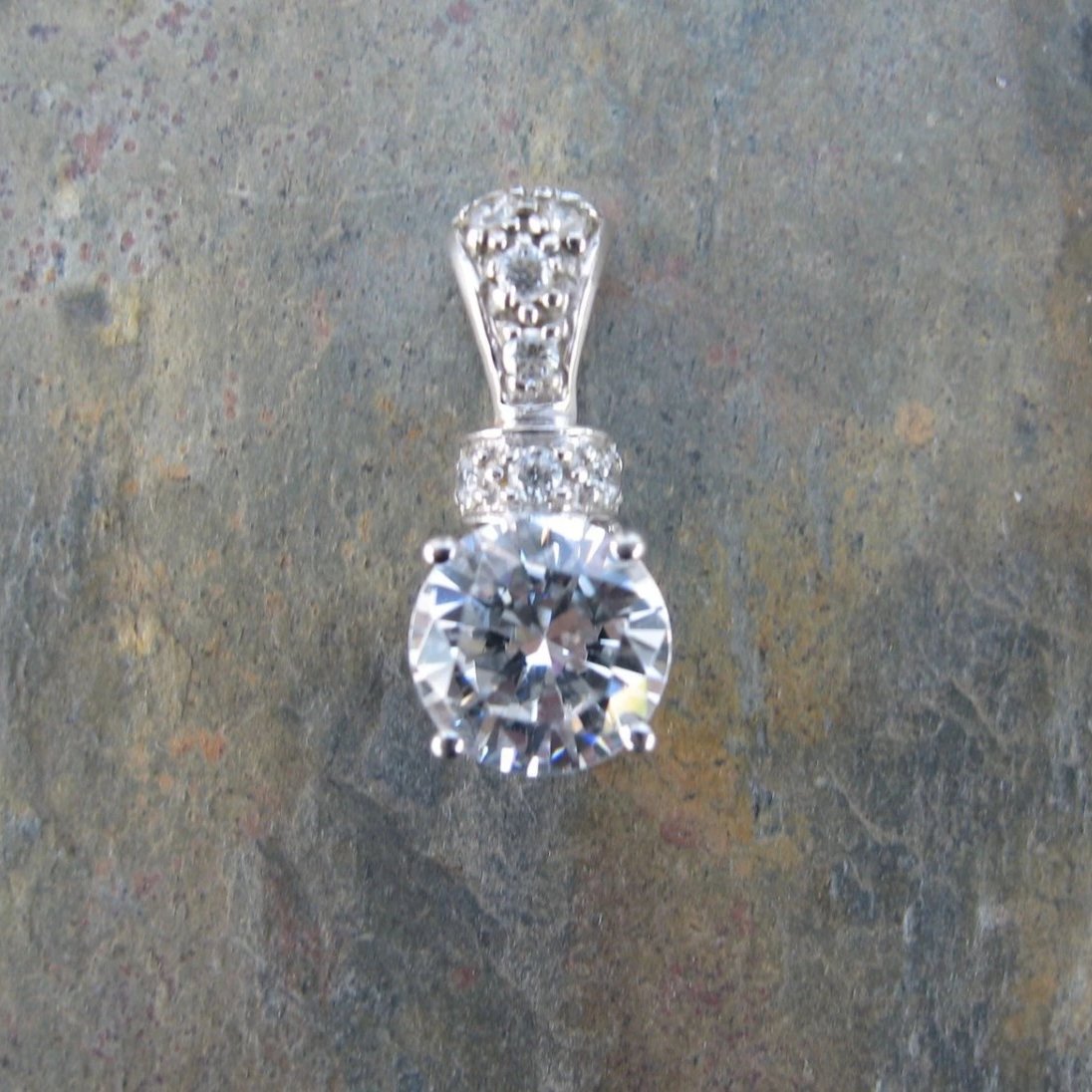Estate 14KT white gold + pave CZ chain slide pendant. Fits up to a 2.9mm necklace.