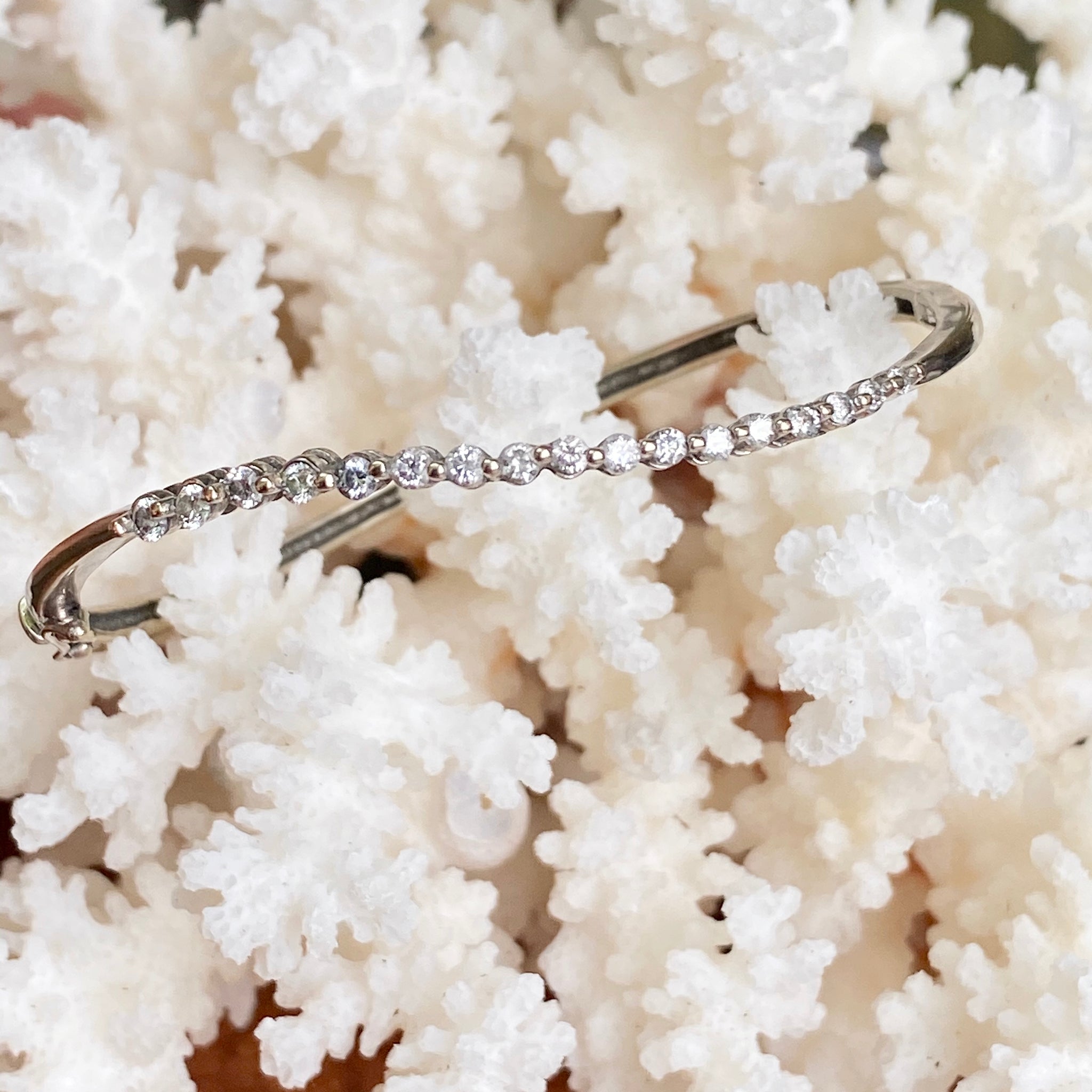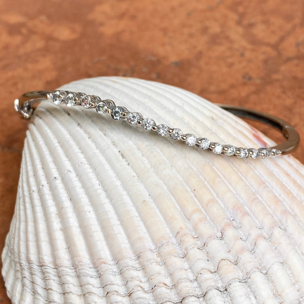 Estate 14KT White Gold Wave Journey Diamond .75 CT Bangle Bracelet