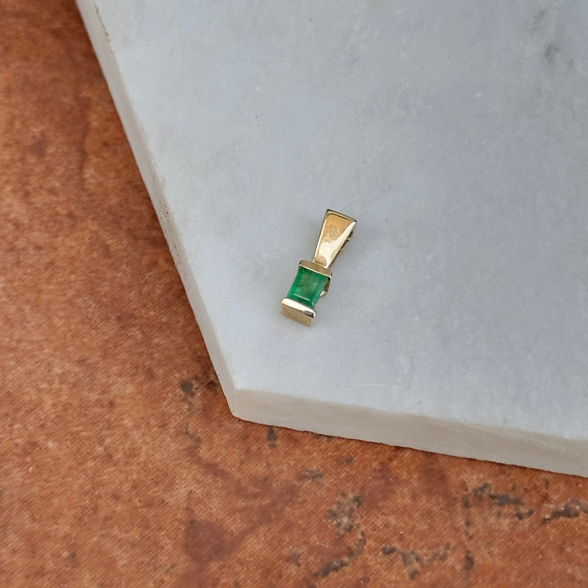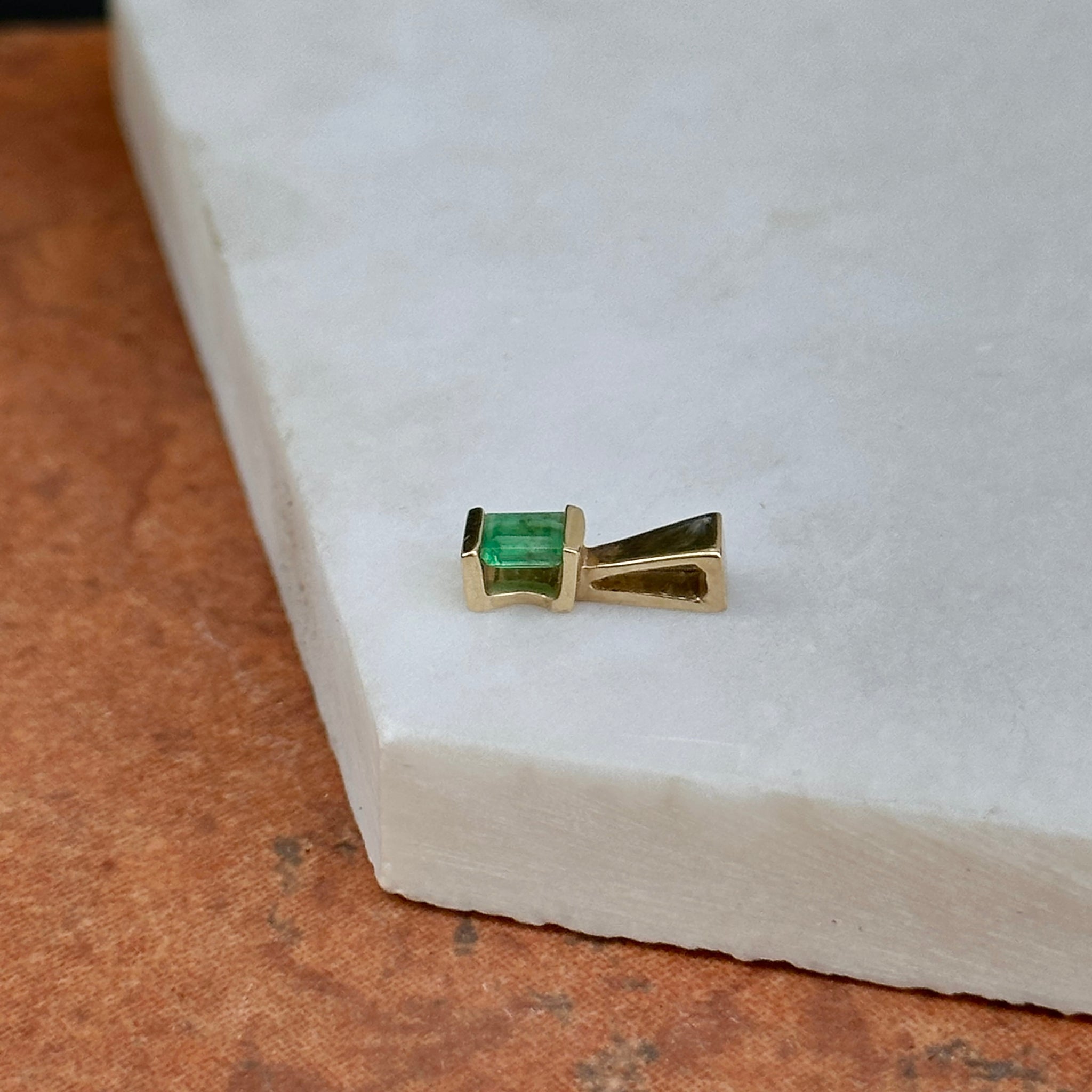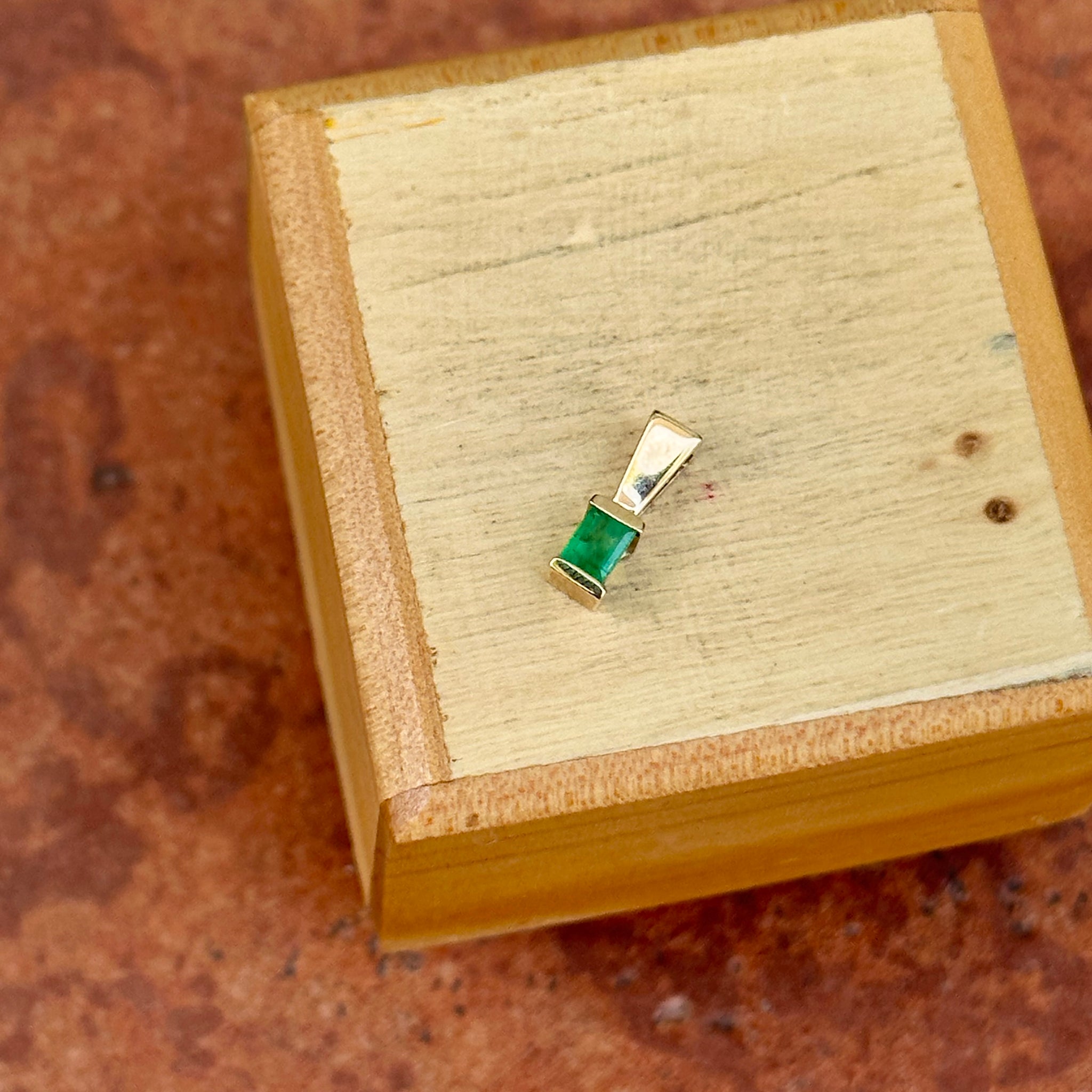 Estate 14KT Yellow Gold .35 CT Emerald-Cut Emerald Drop Pendant