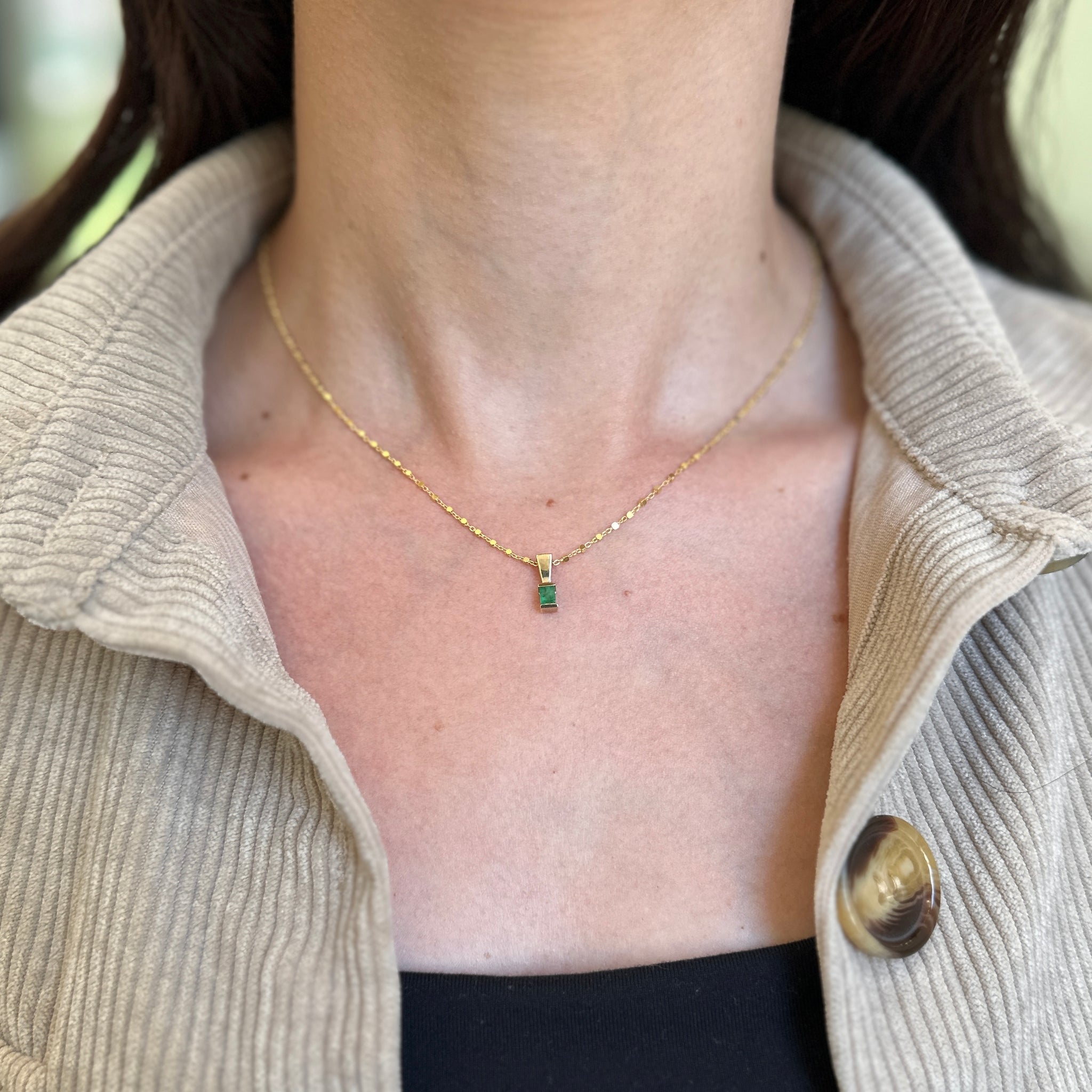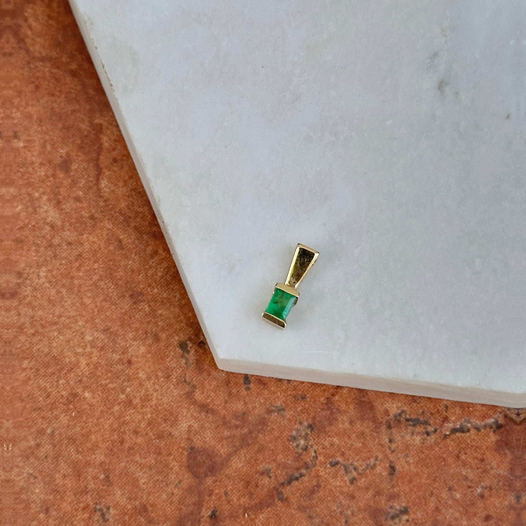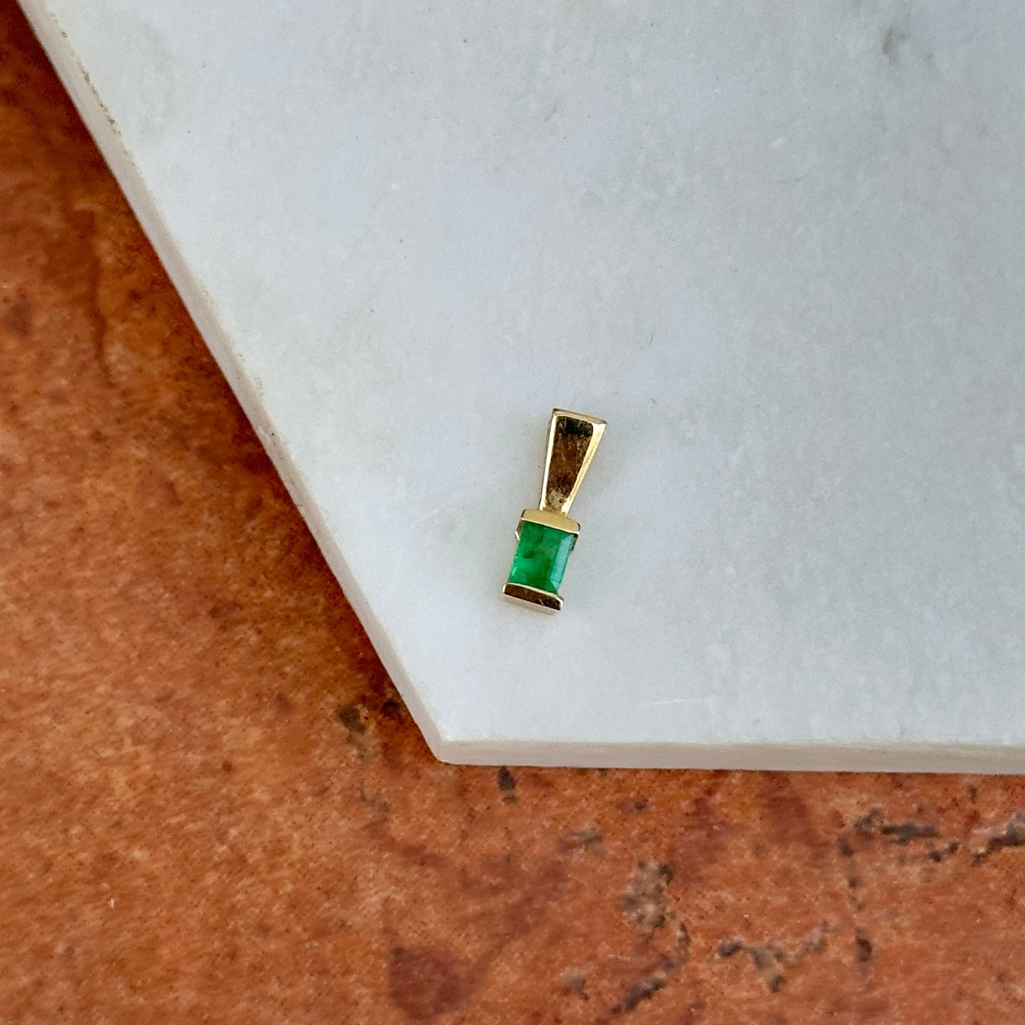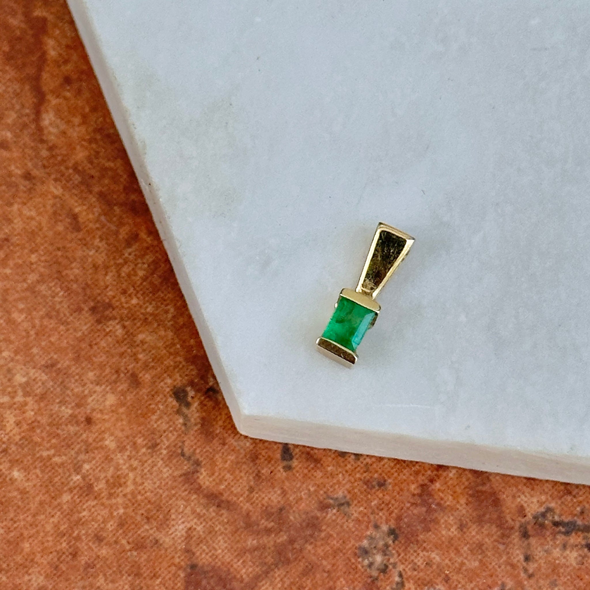 Estate 14KT Yellow Gold .35 CT Emerald-Cut Emerald Drop Pendant