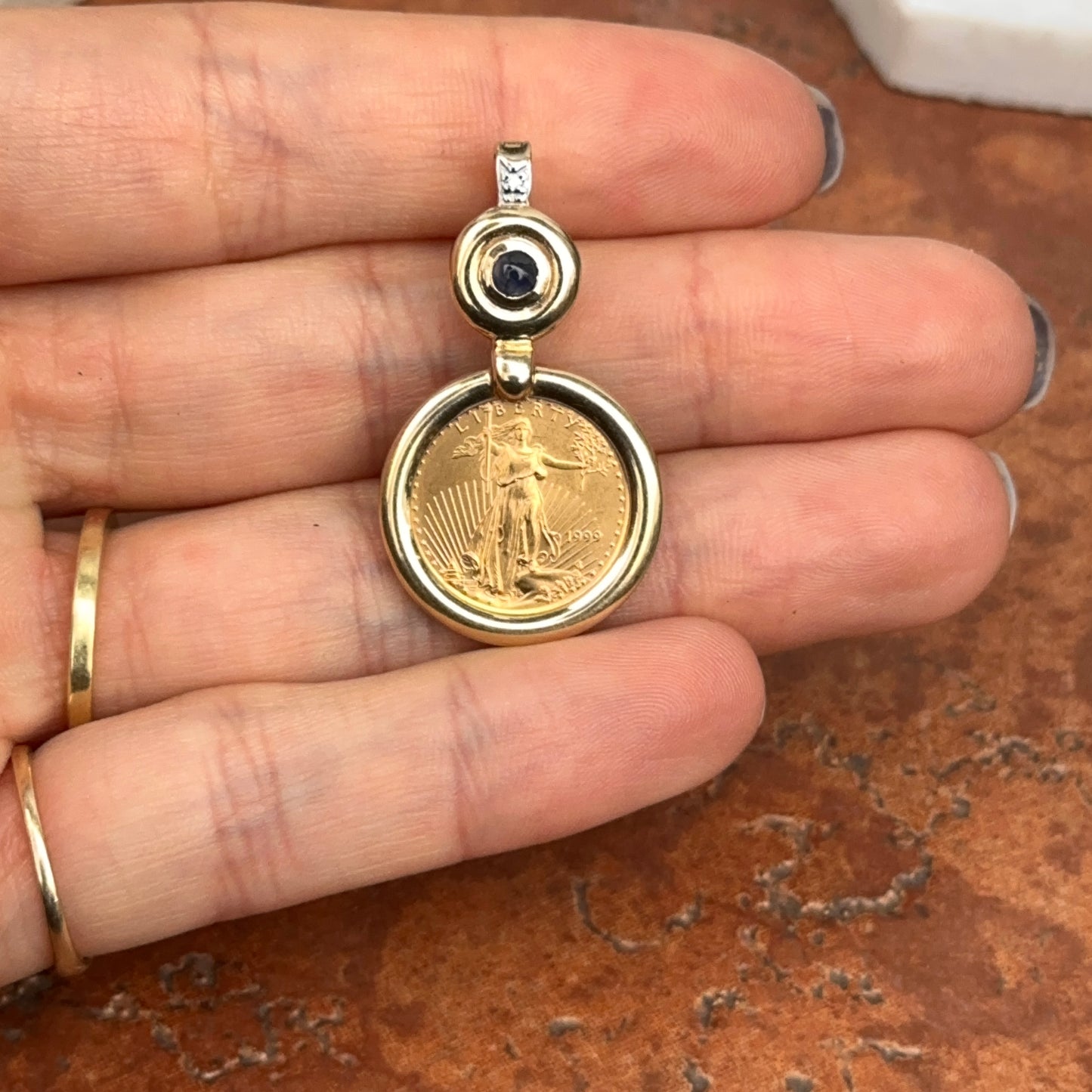 - Bezel-set American Liberty Coin