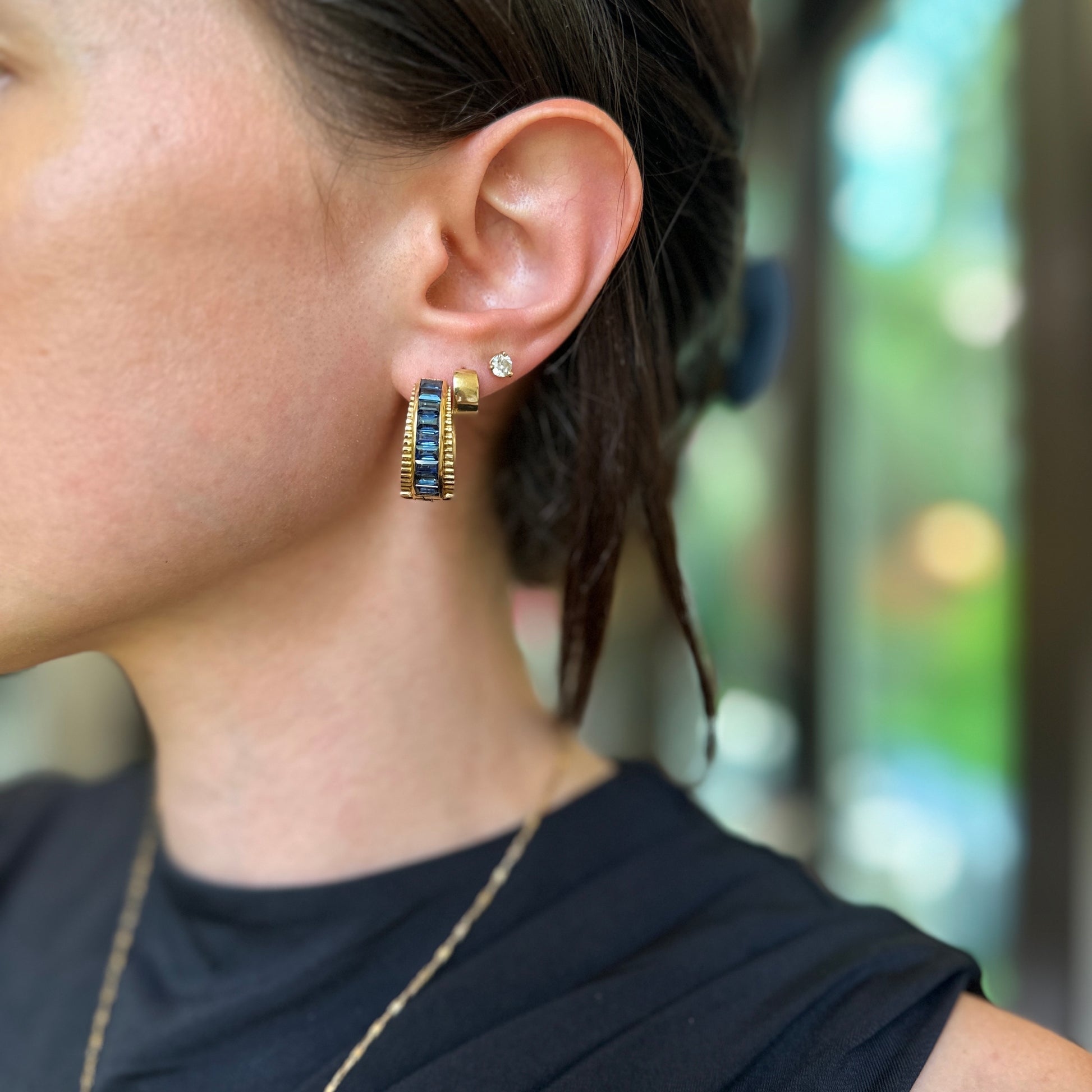 Estate 14KT Yellow Gold Baguette Blue Sapphire Hoop Earrings