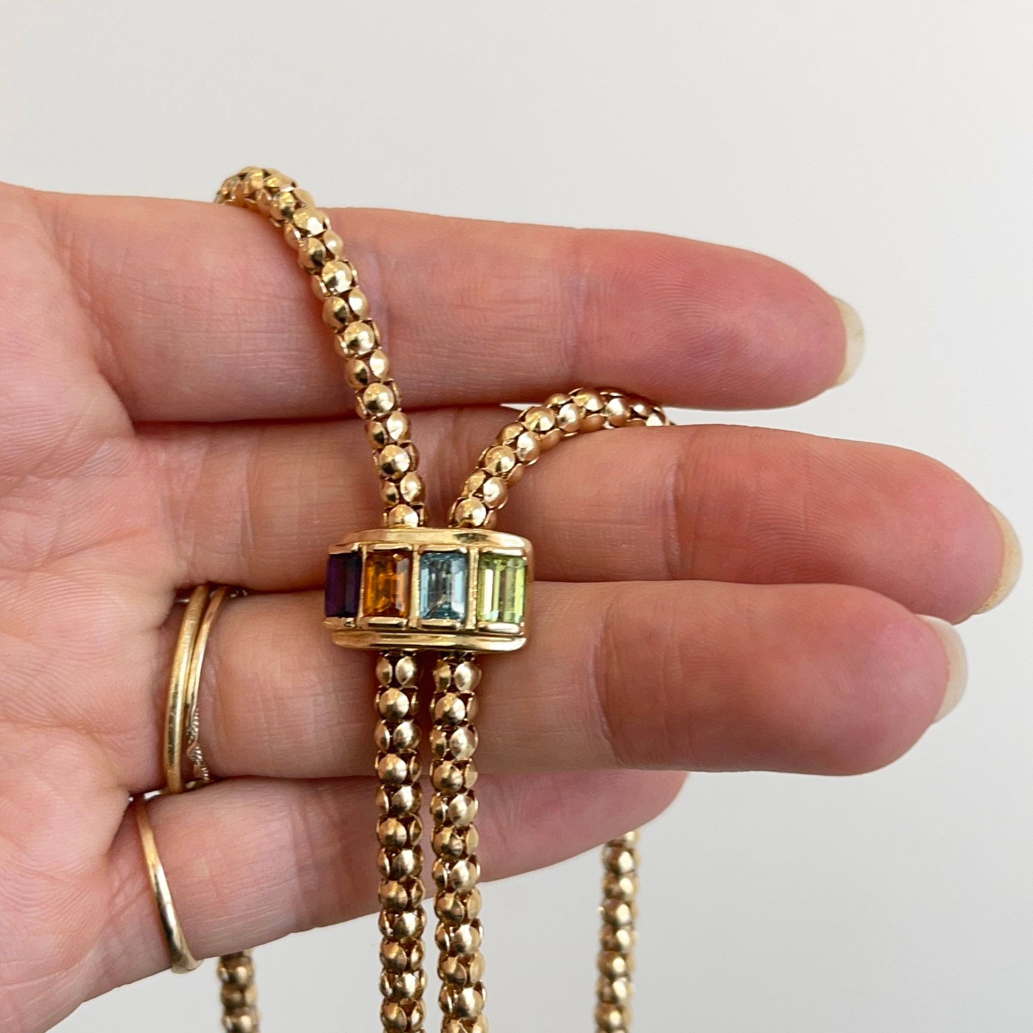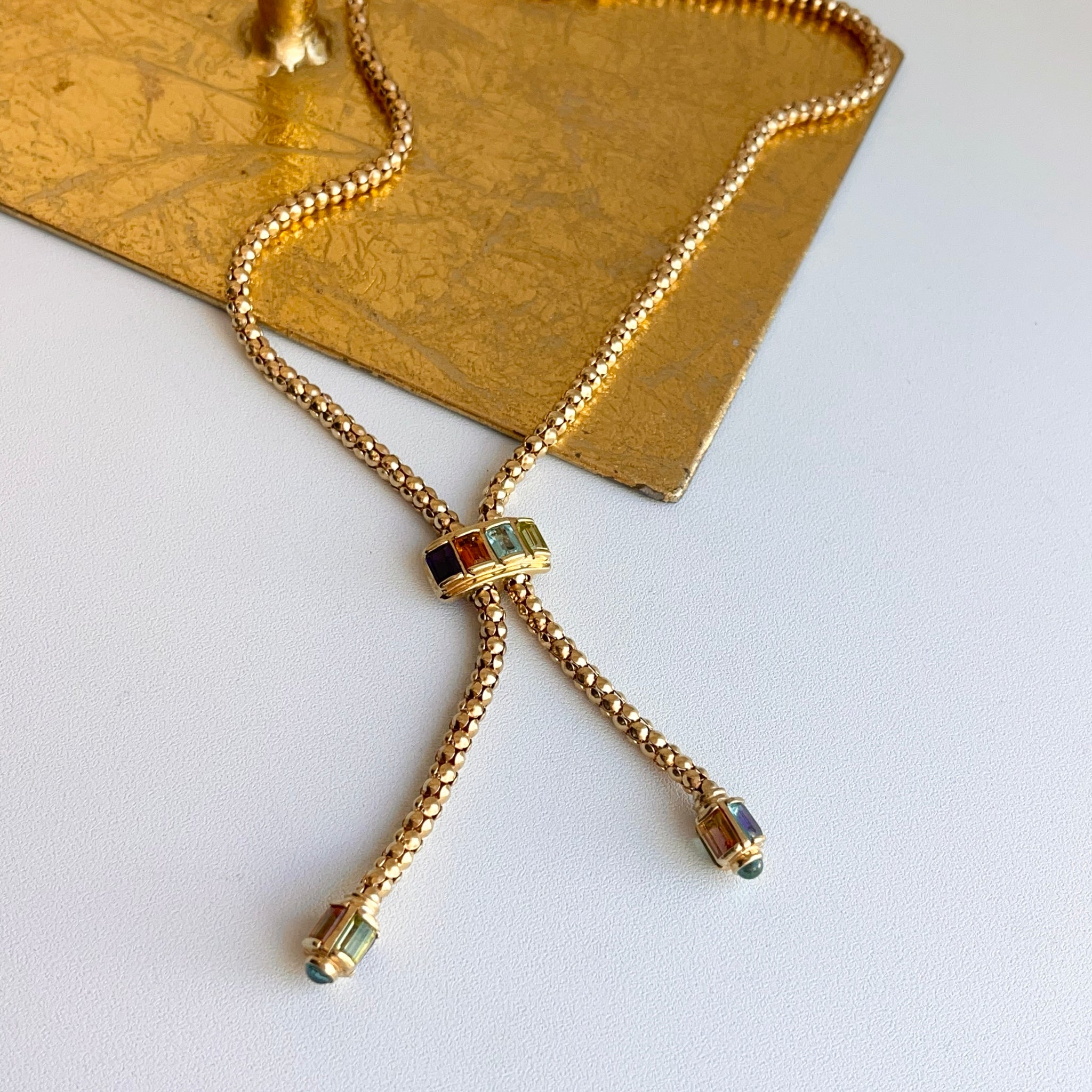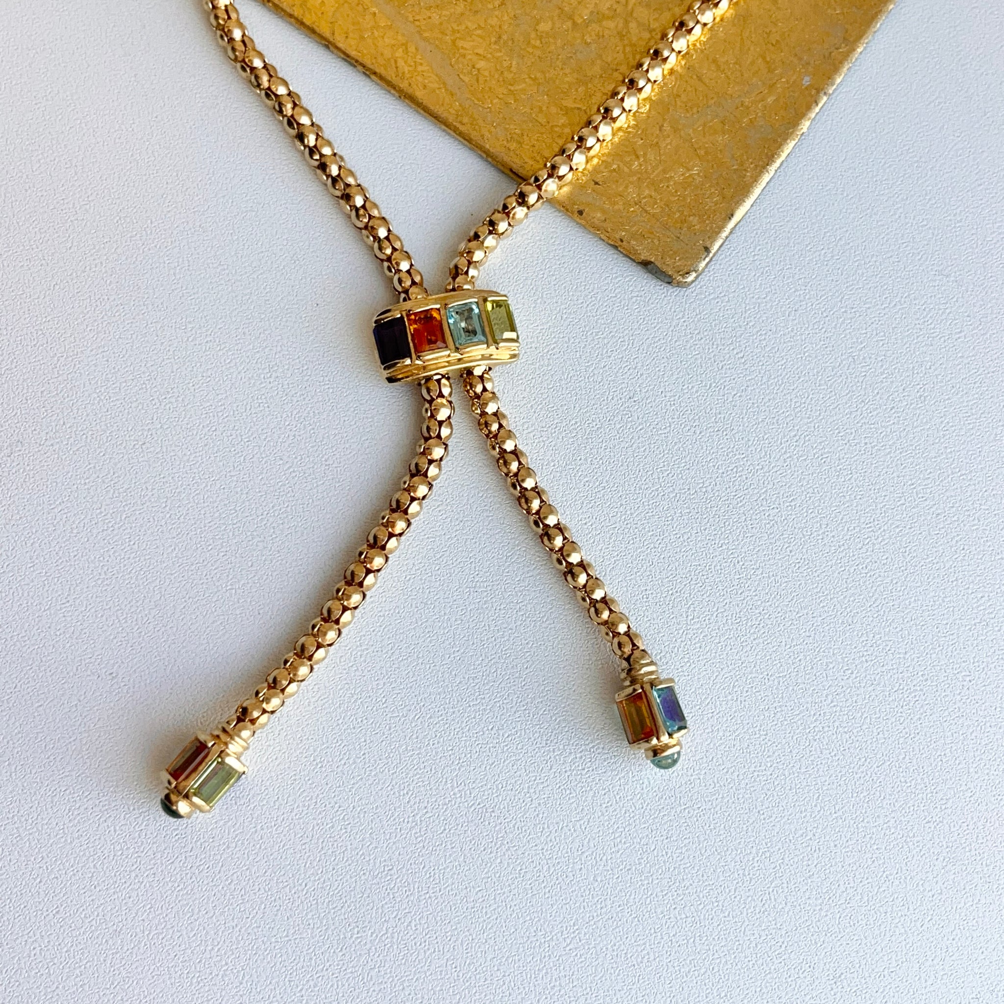 Estate 14KT Yellow Gold Byzantine Multi-Gemstone Popcorn Lariat Necklace