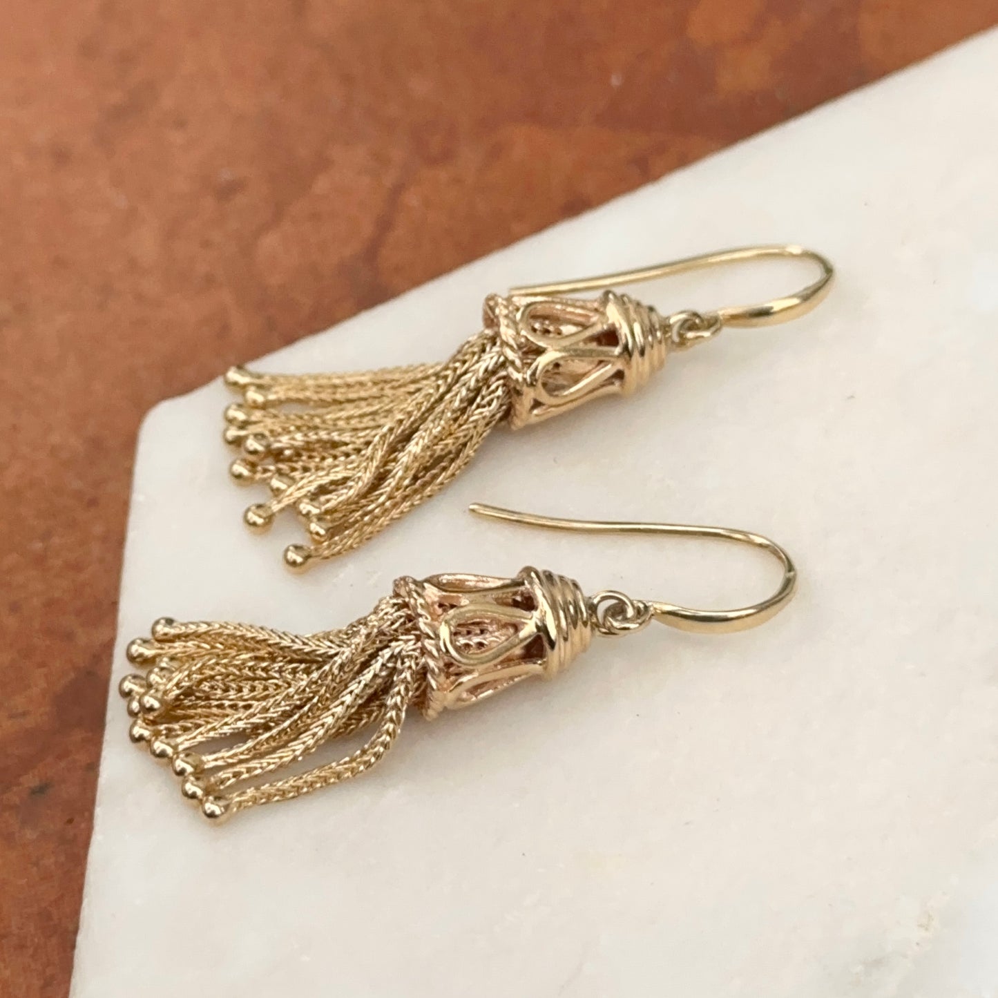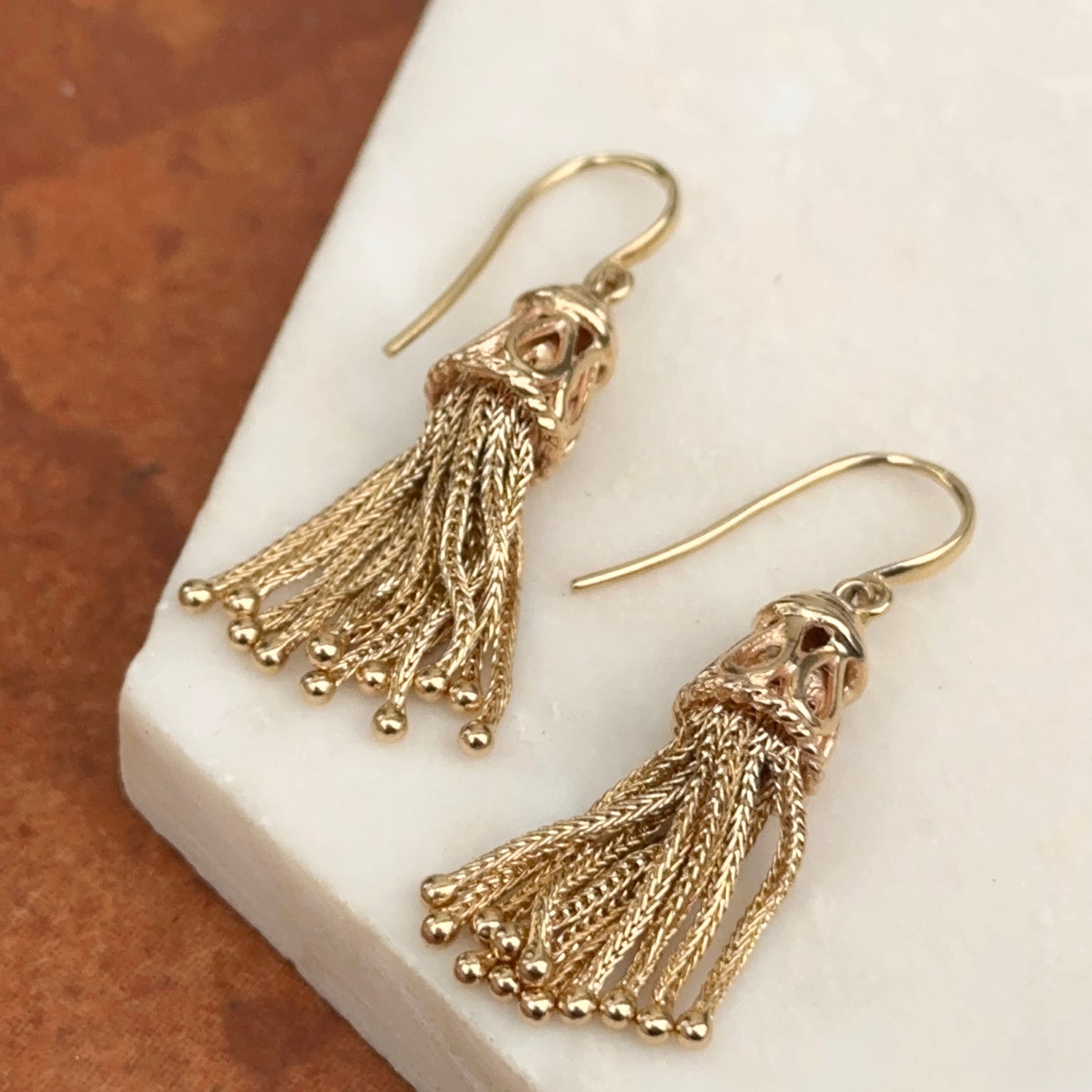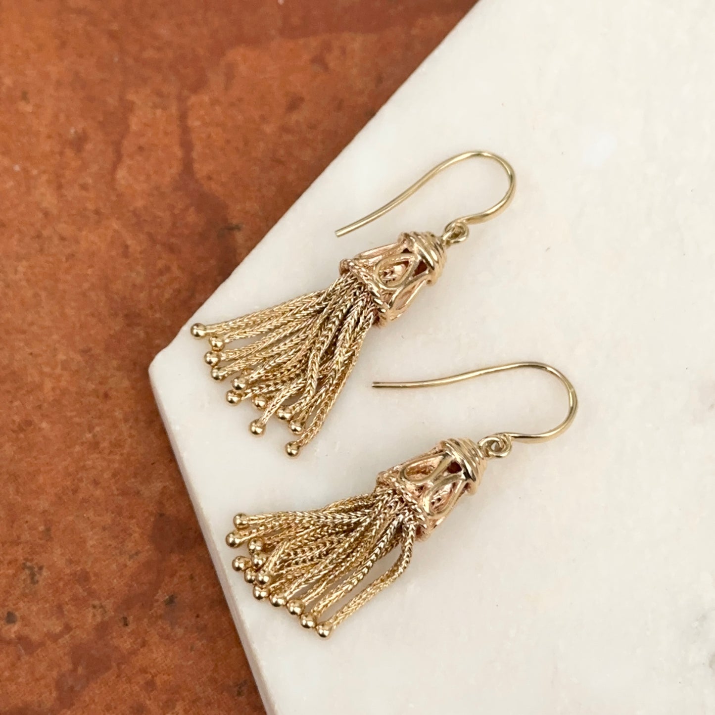 Estate 14KT Yellow Gold Chain Tassel Dangle Earrings