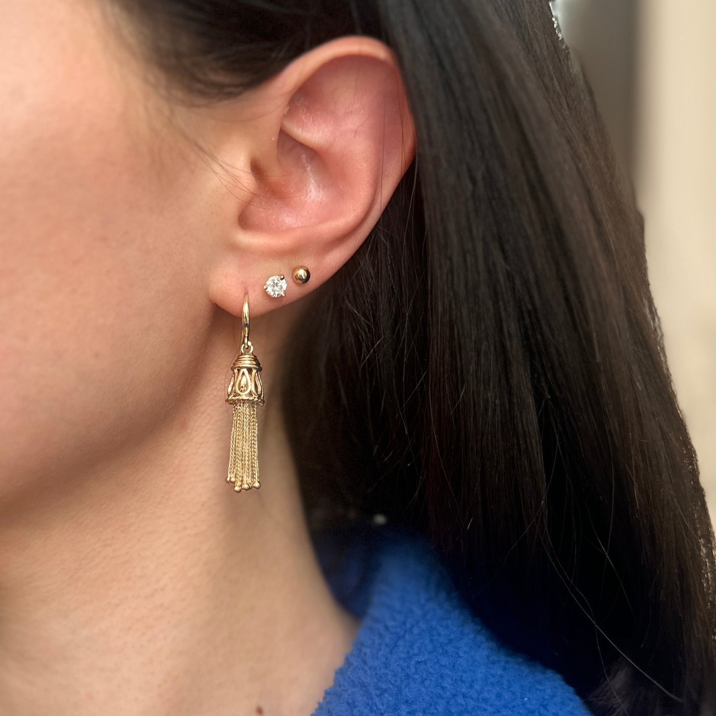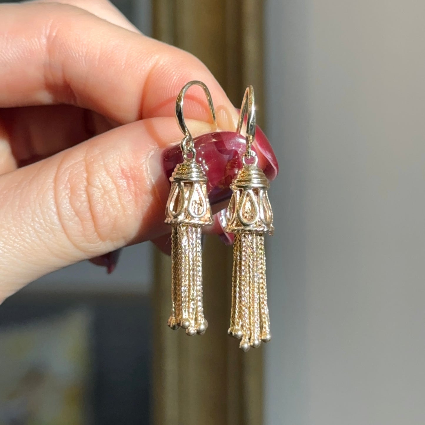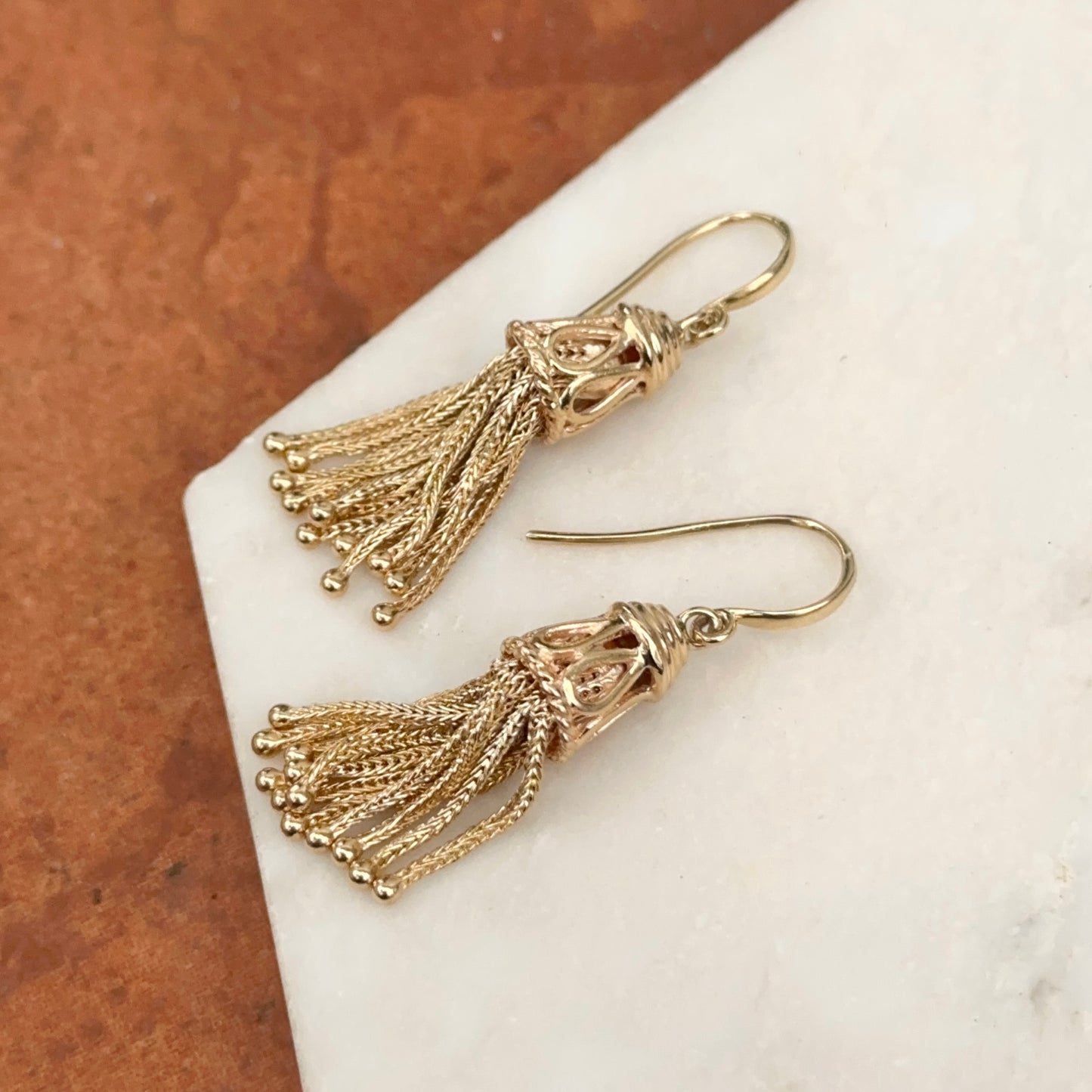 Estate 14KT Yellow Gold Chain Tassel Dangle Earrings