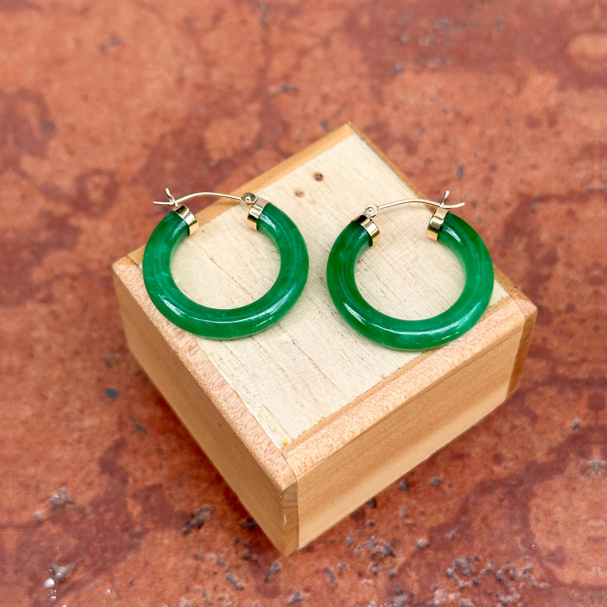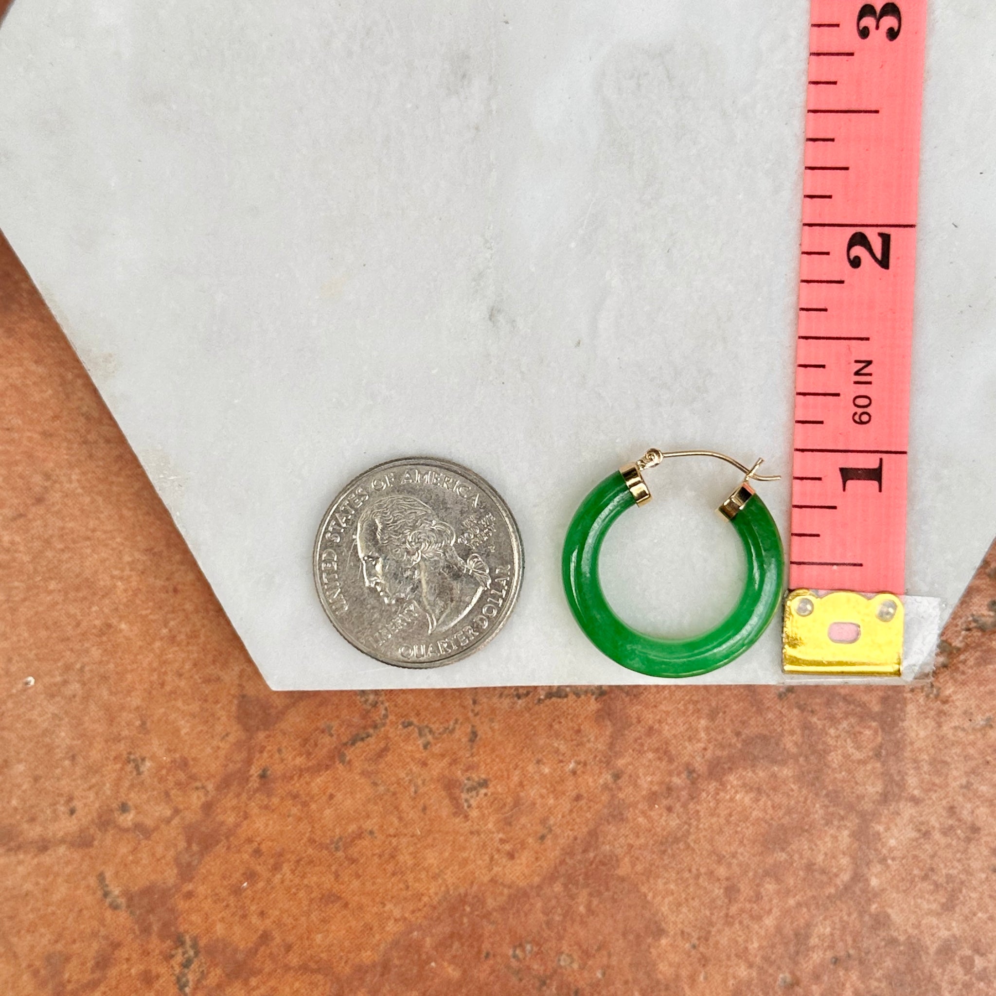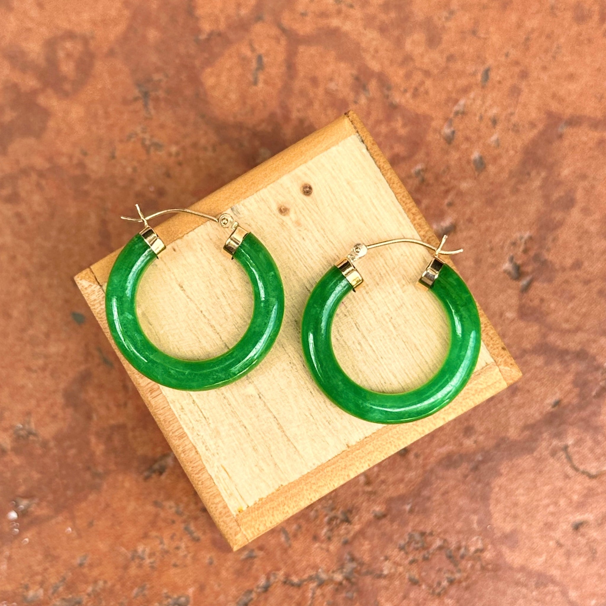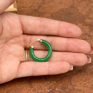 Estate 14KT Yellow Gold Dark Green Jade Tube Hoop Earrings