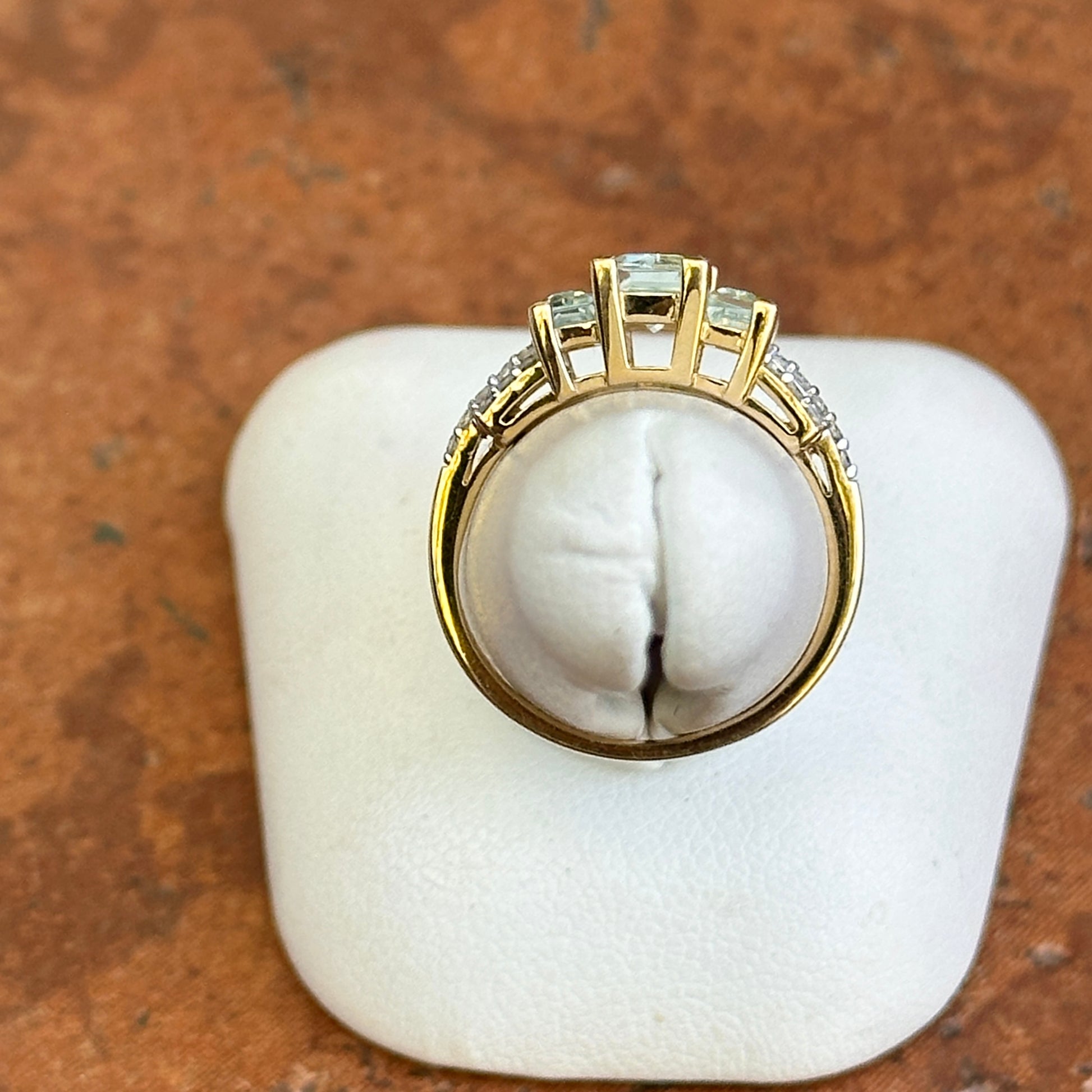 Estate 14KT Yellow Gold Elongated Emerald-Cut Aquamarine + Diamond Ring