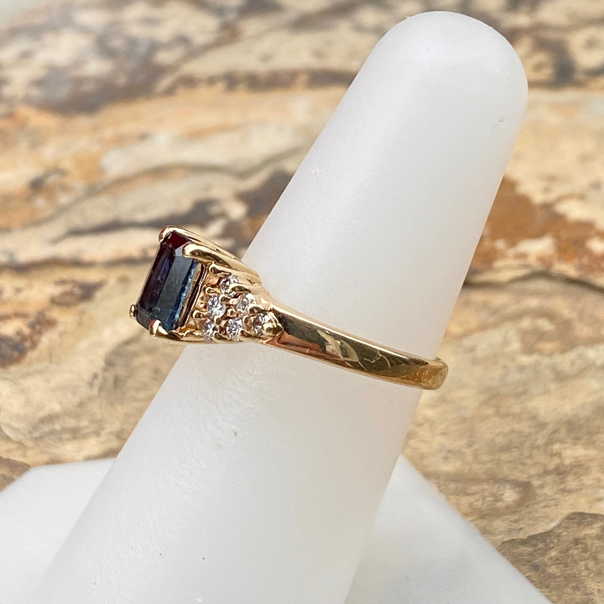 14KT Yellow Gold Emerald-Cut Blue Sapphire + Diamond Accent Ring