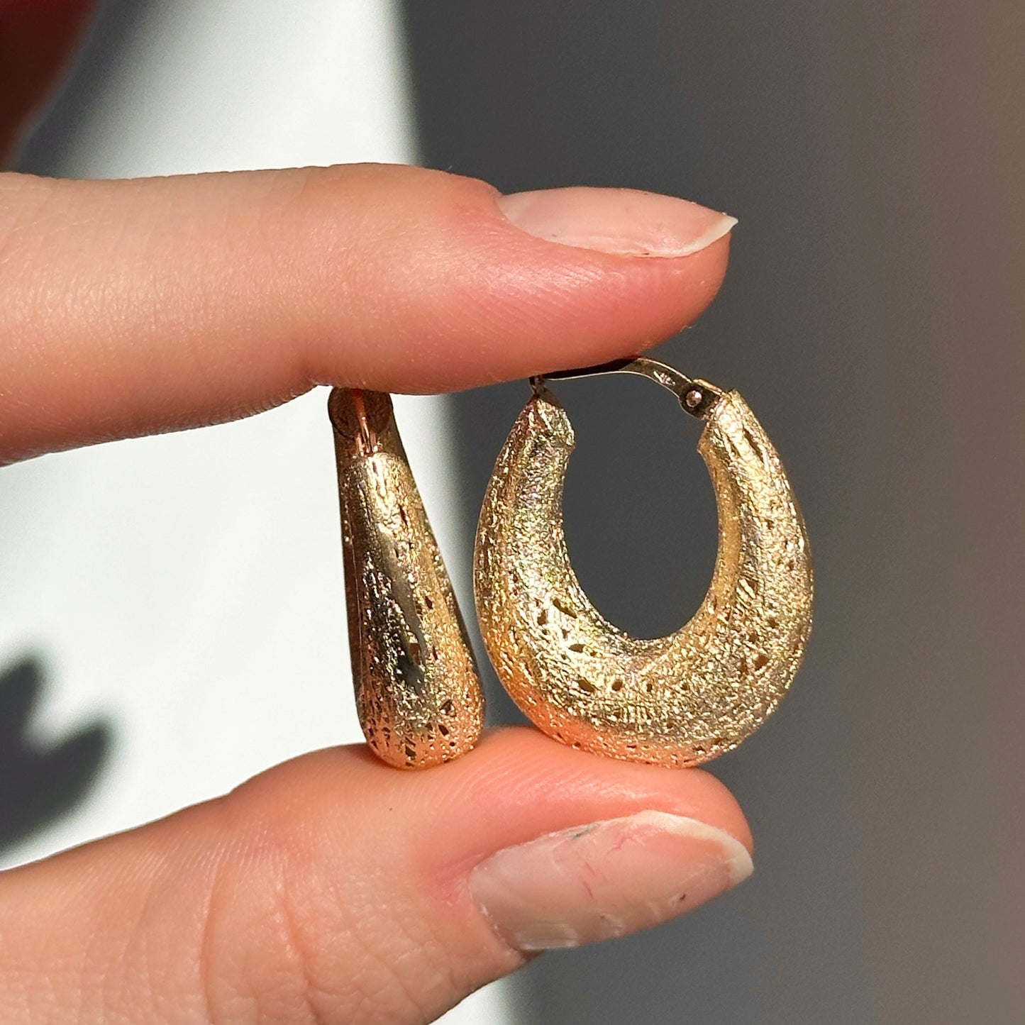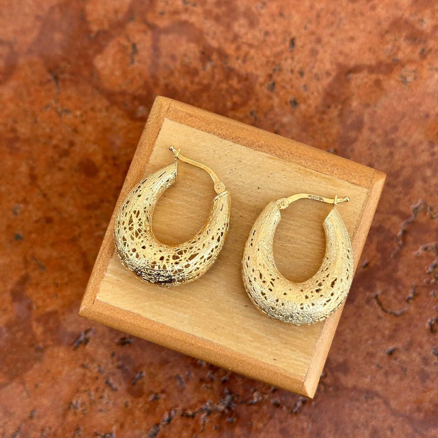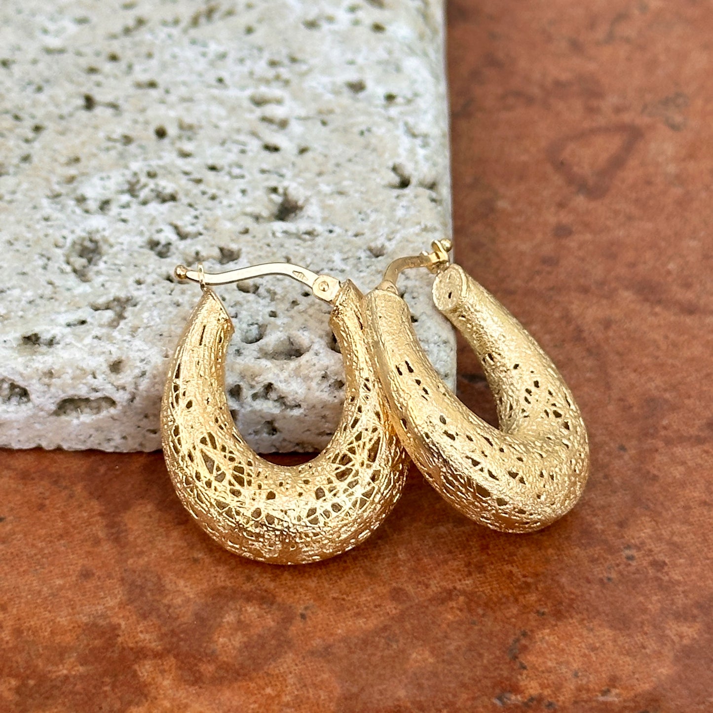 Estate/ Vintage 14KT Yellow Gold Cobweb-like Design Oval Hoop Earrings