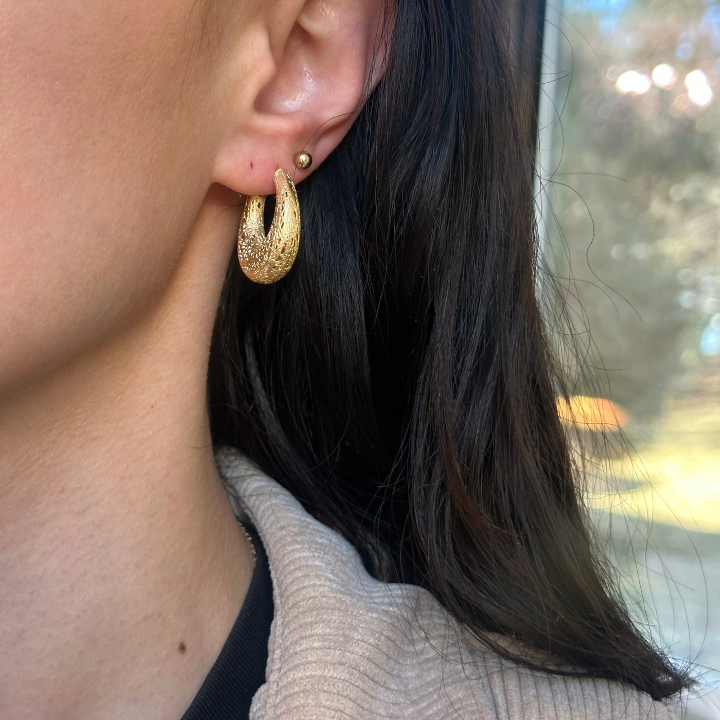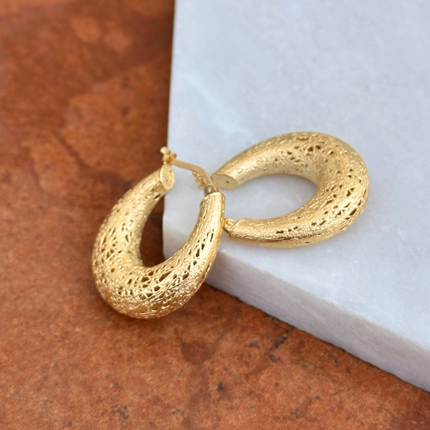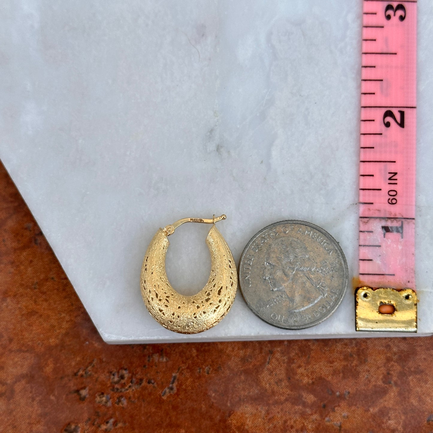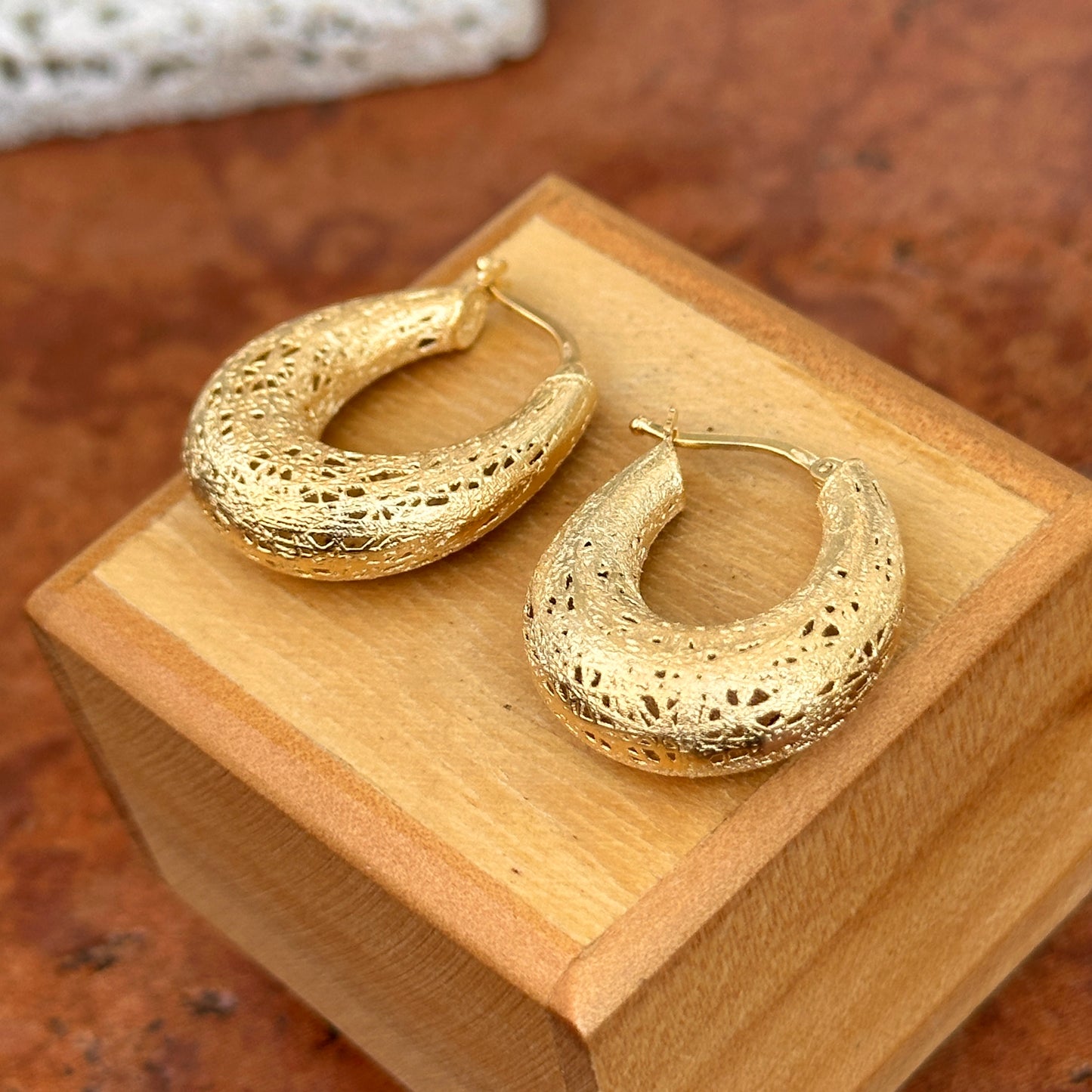 Estate/ Vintage 14KT Yellow Gold Cobweb-like Design Oval Hoop Earrings