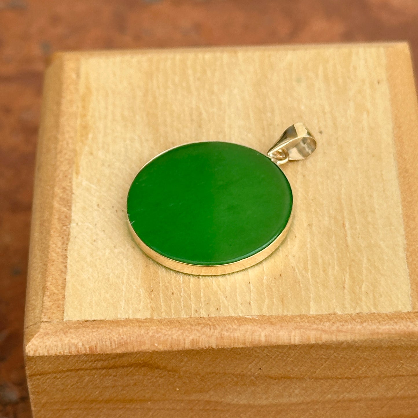 Estate 14KT Yellow Gold Flat Green Jade Bezel Round Pendant
