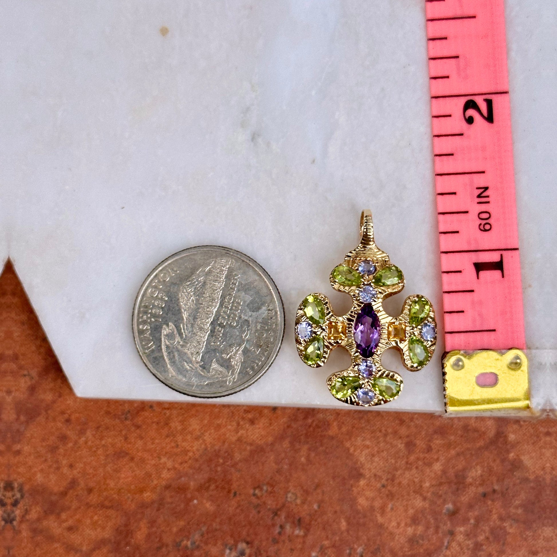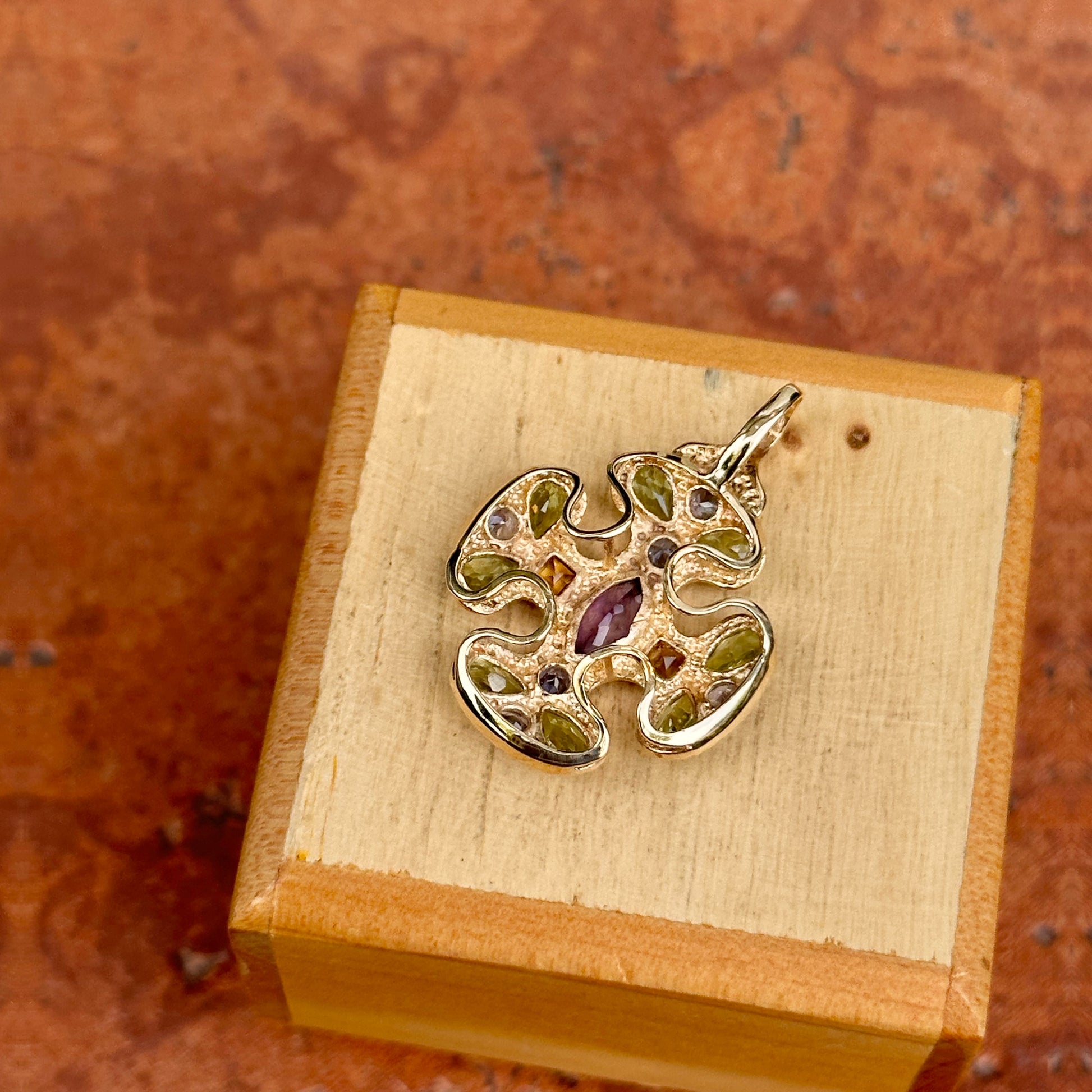 Vintage Estate 14KT Yellow Gold Gemstone Maltese Cross Pendant