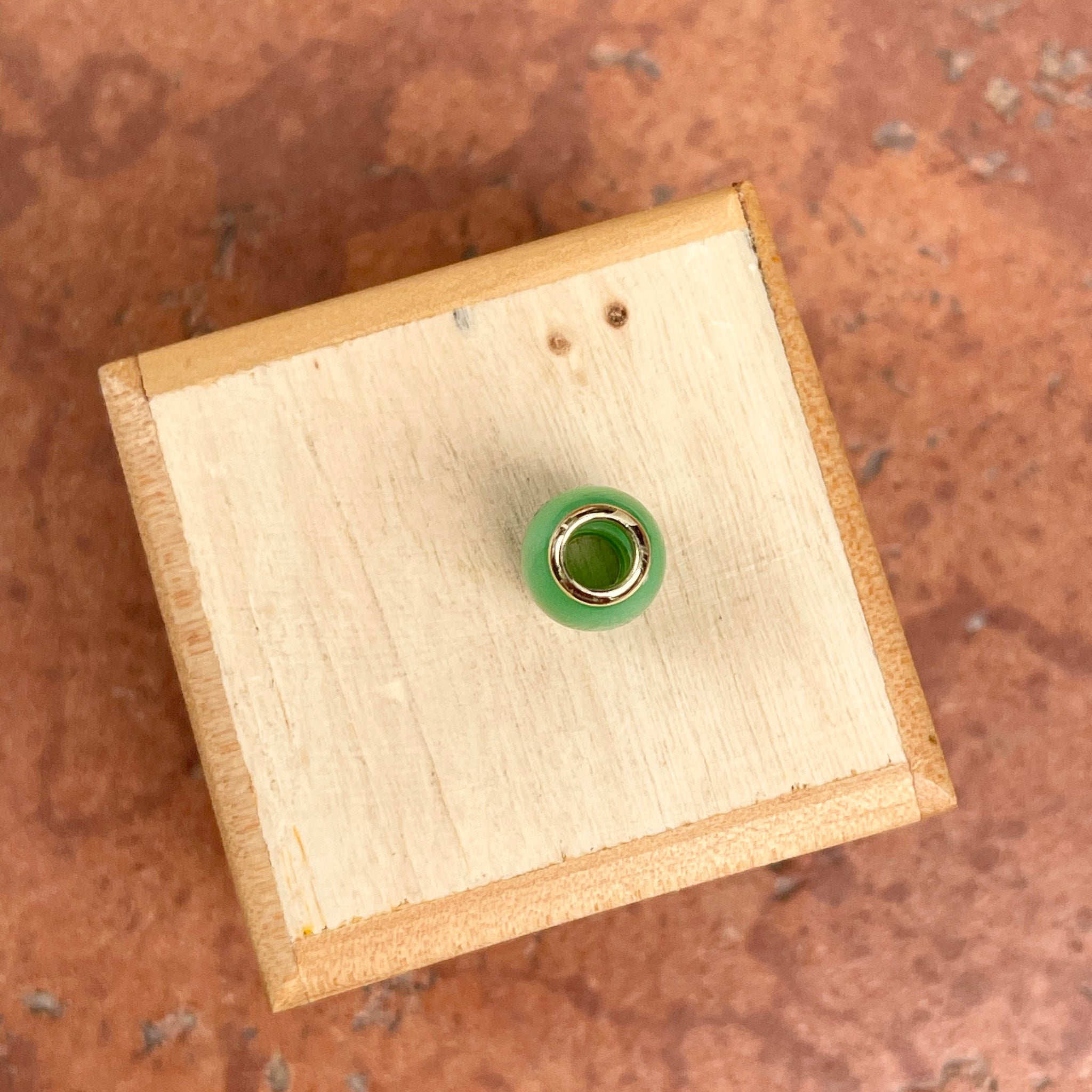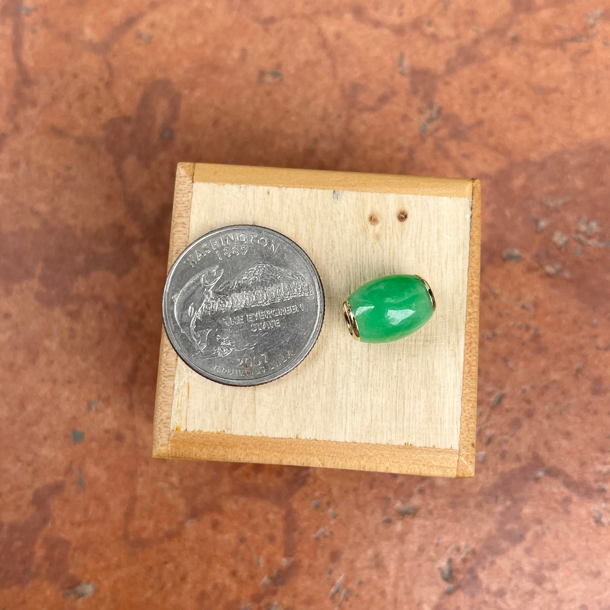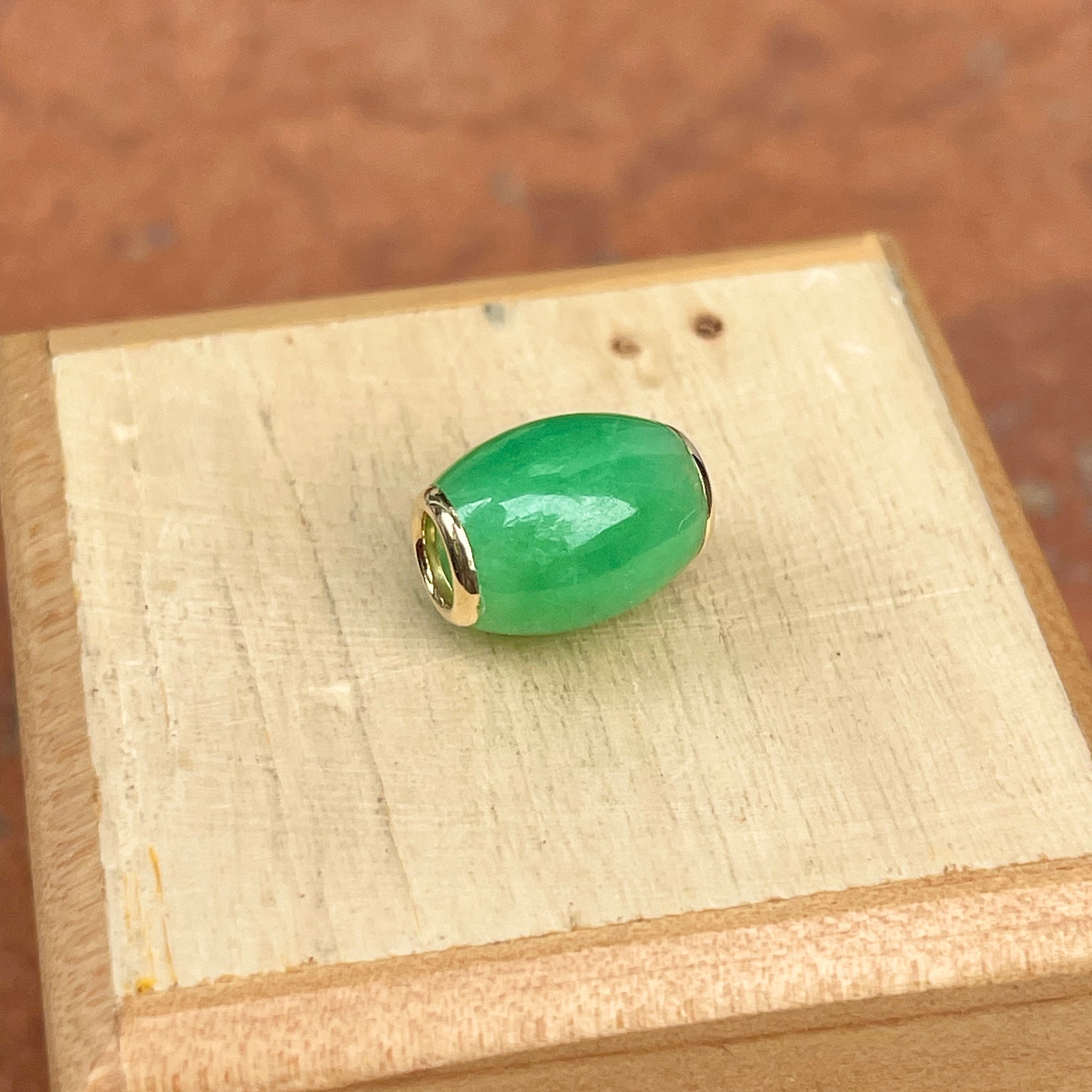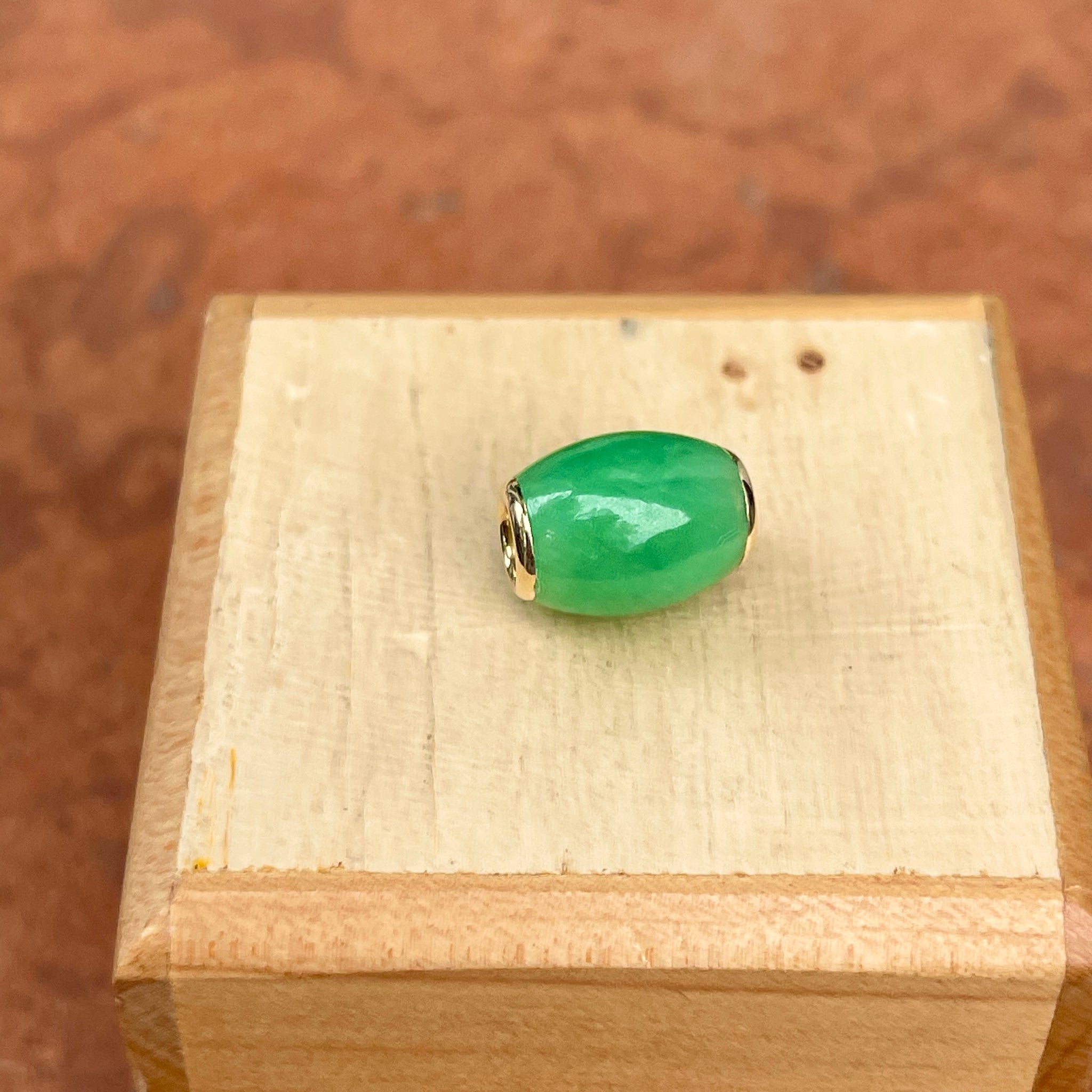Estate 14KT yellow gold genuine vibrant green jade oval pendant charm slide.