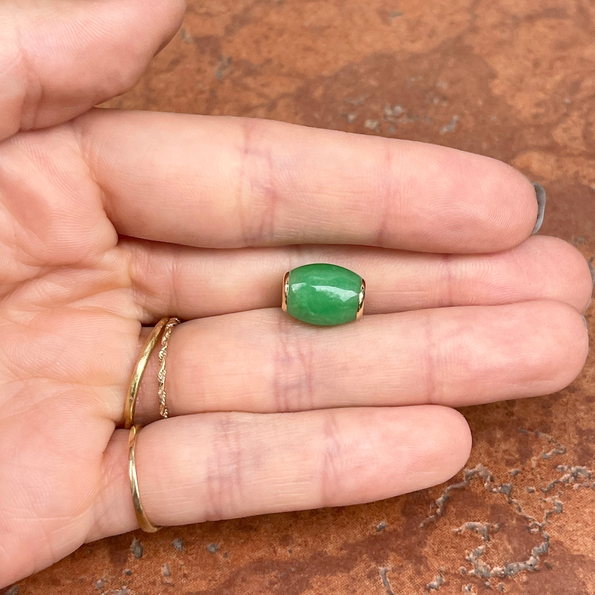 Estate 14KT Yellow Gold Green Jade Oval Pendant Slide