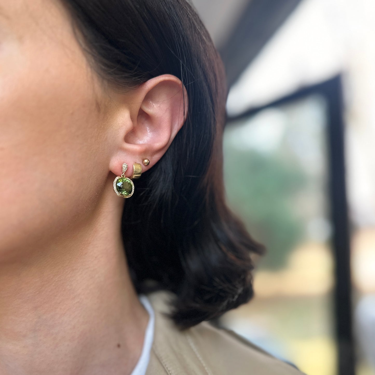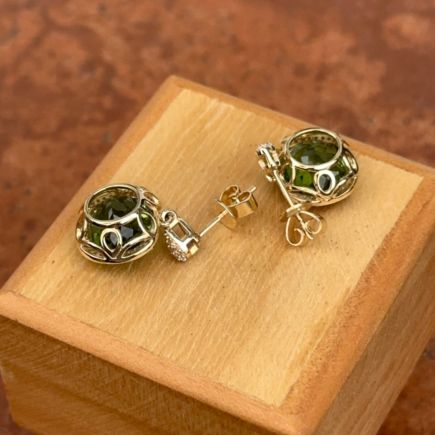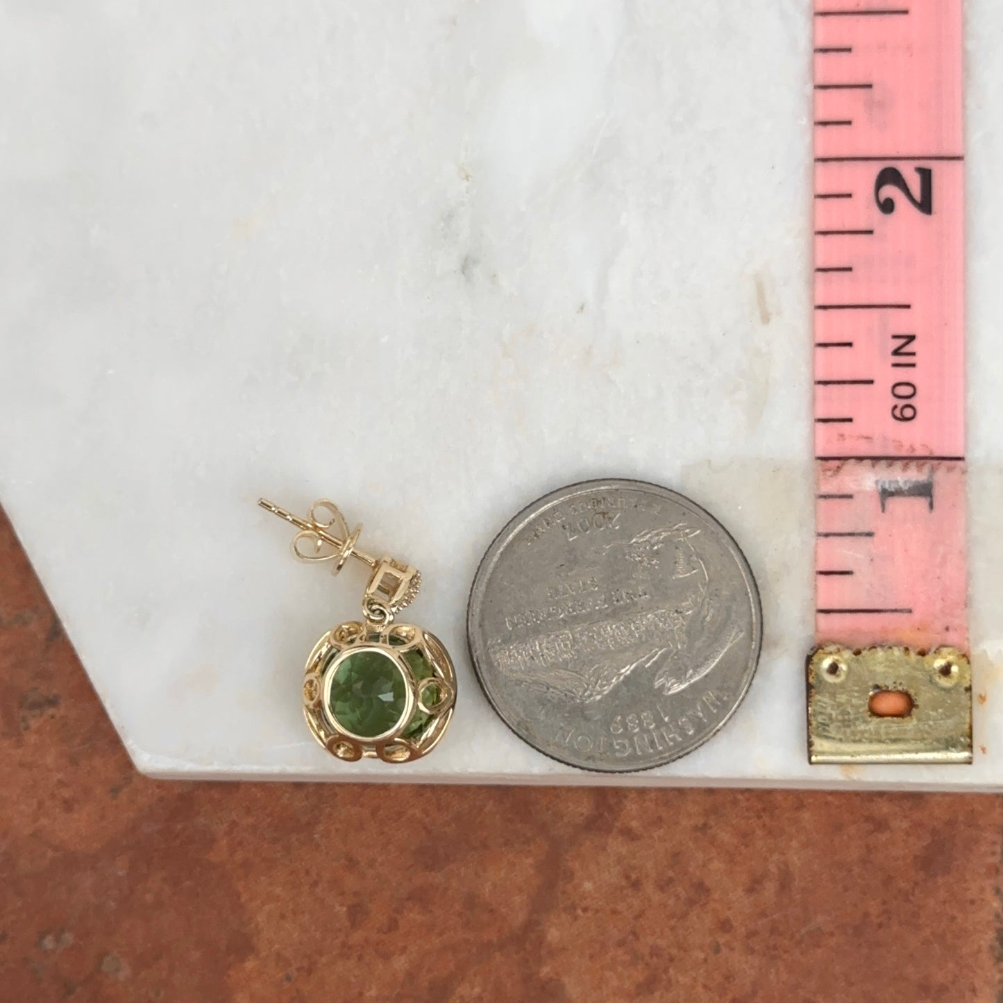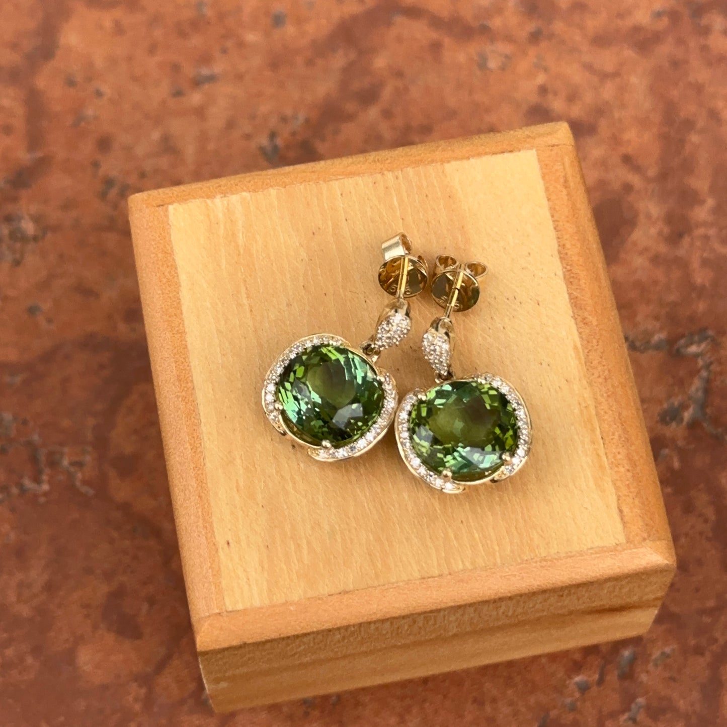 Estate 14KT Yellow Gold Green Tourmaline + Pave Diamond Earrings