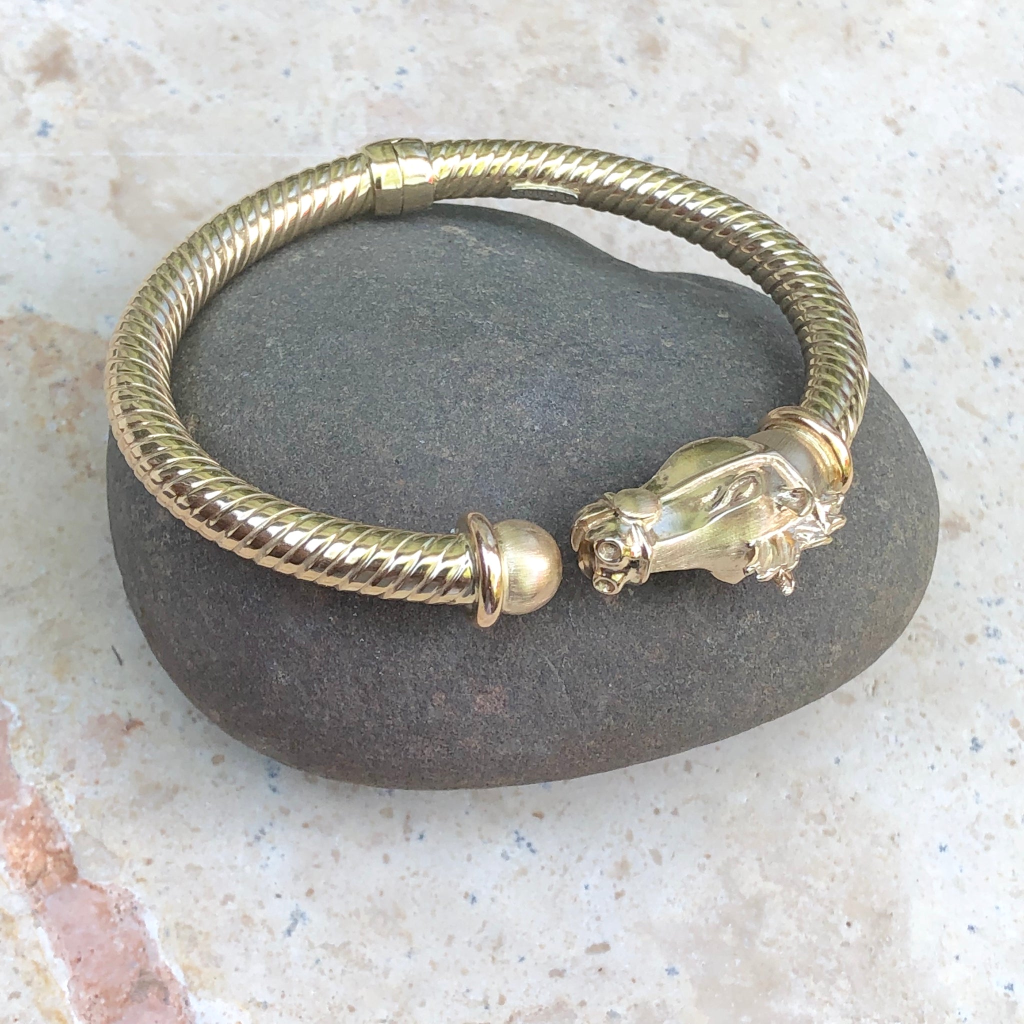 Estate 14KT Yellow Gold Coiled Horse Head Cuff Bangle Bracelet