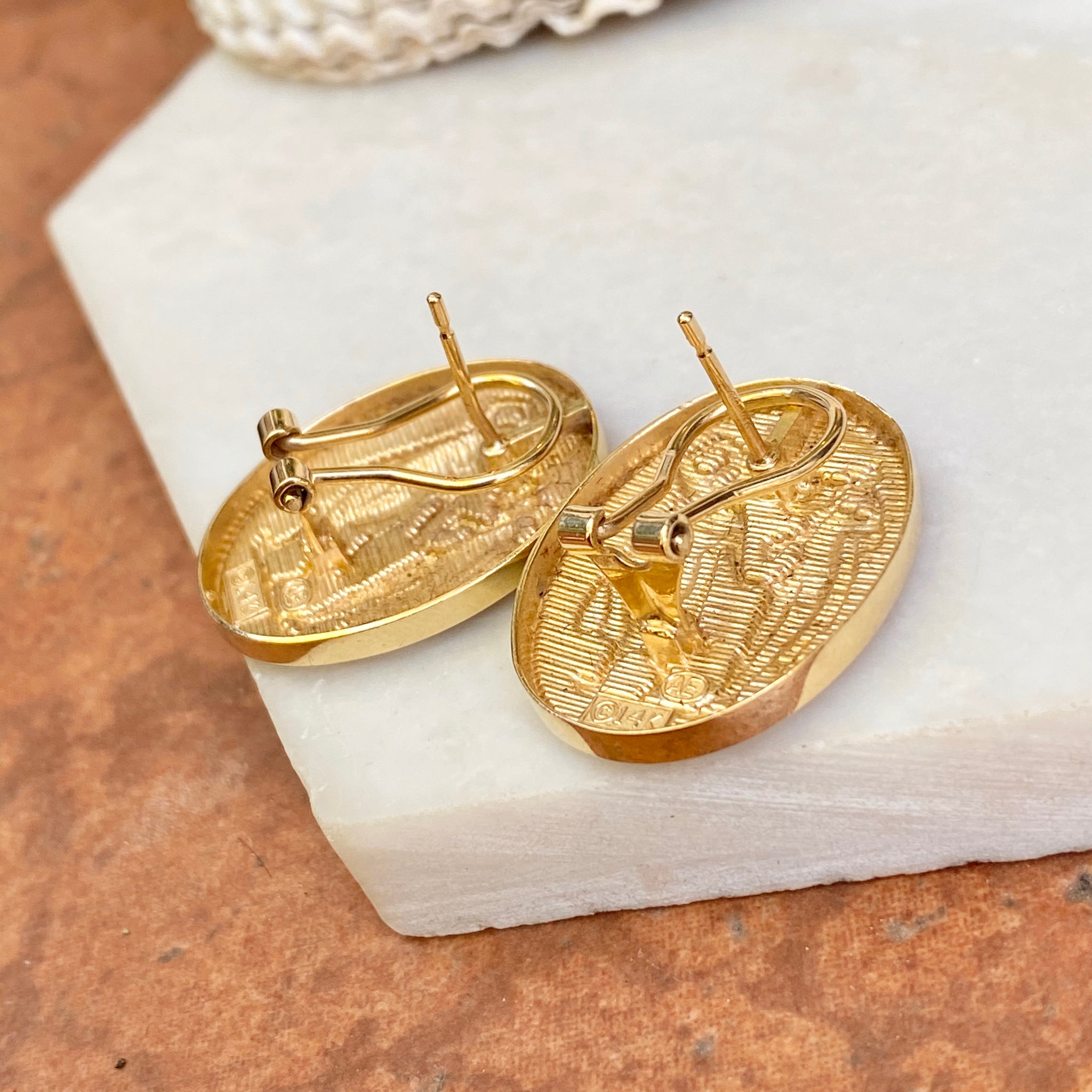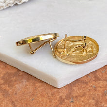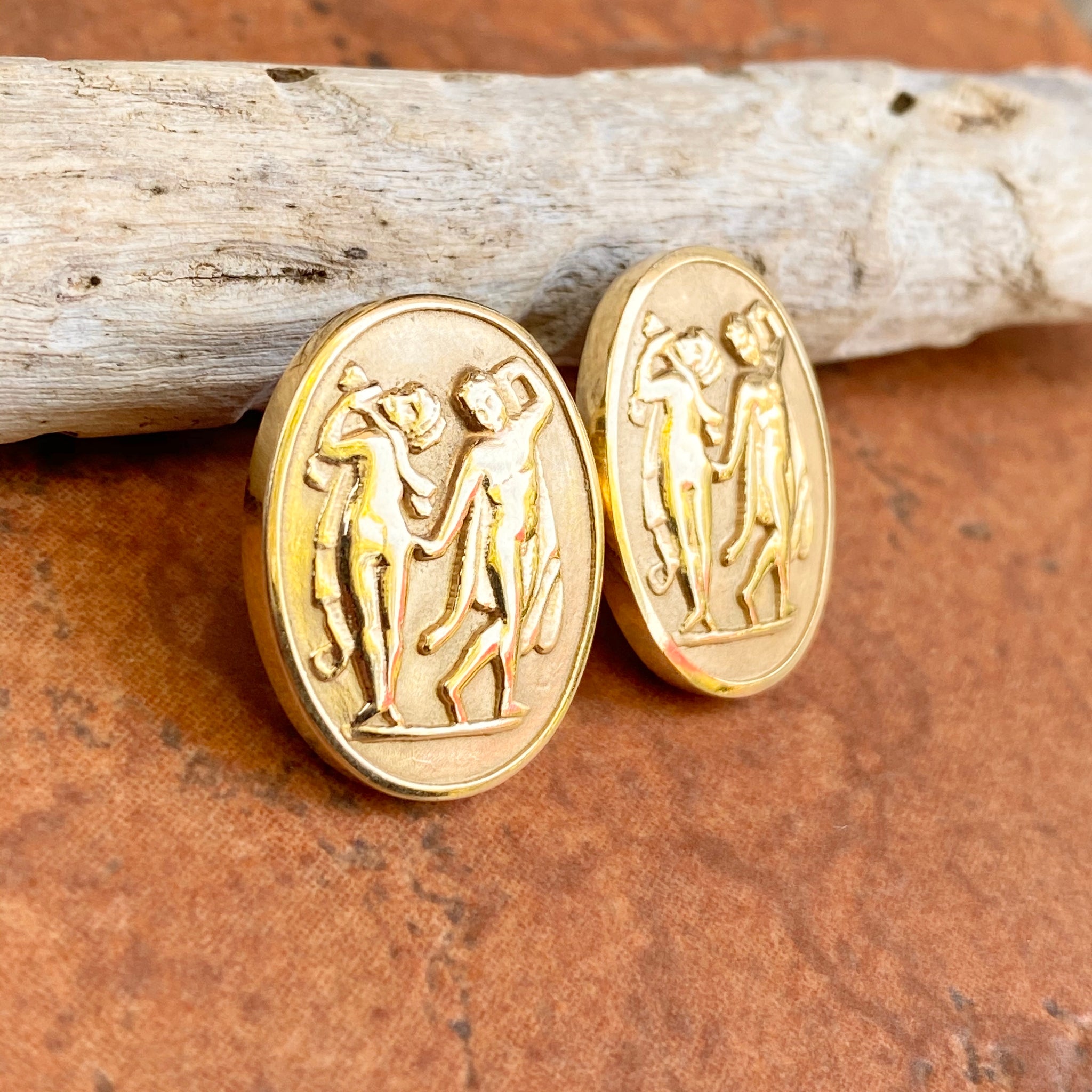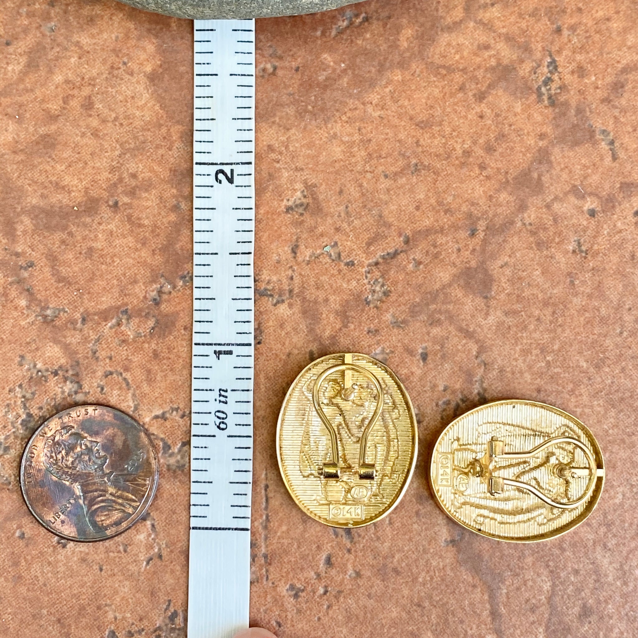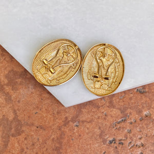 Estate 14KT Yellow Gold Italian Soldier Intaglio Large Oval Omega Back Earrings