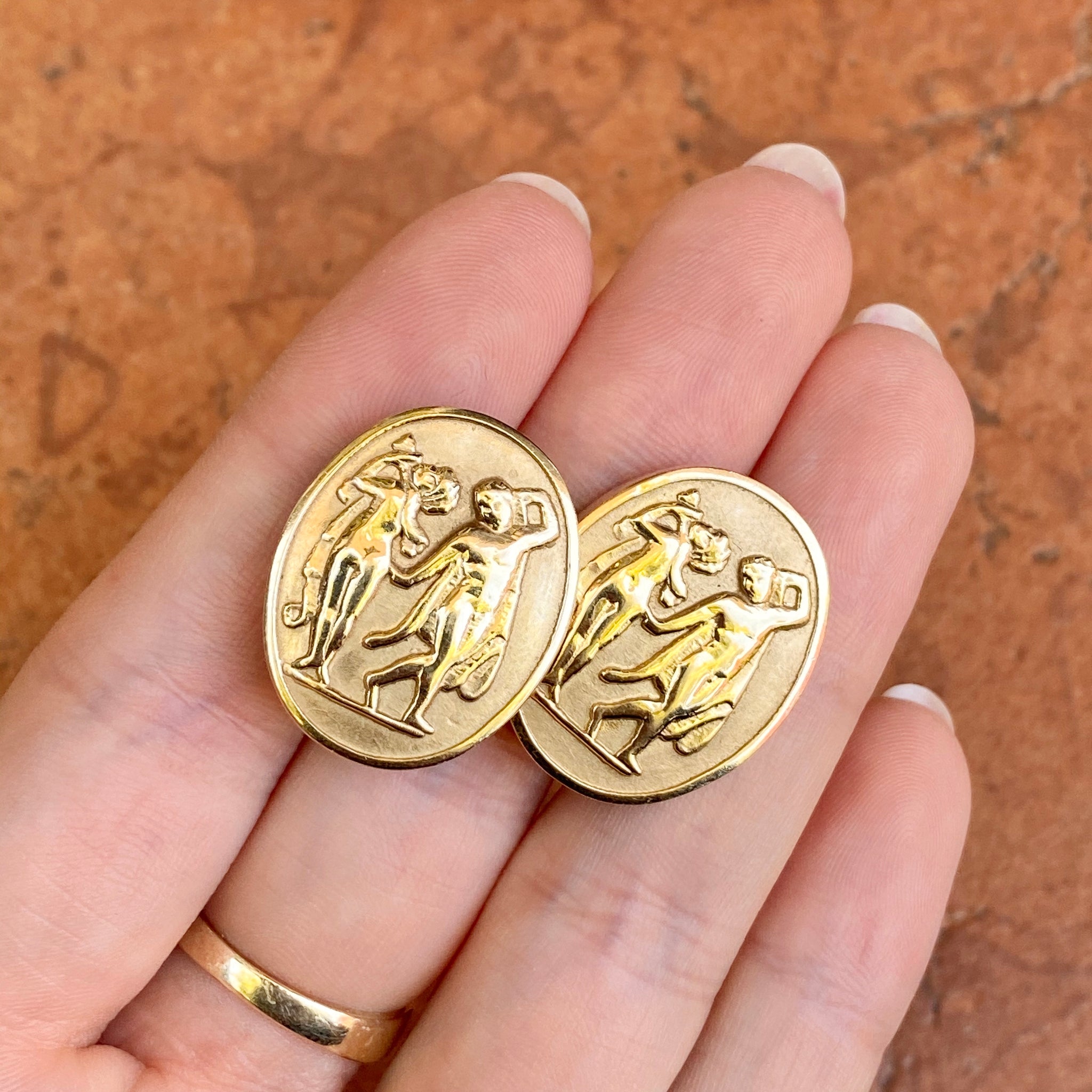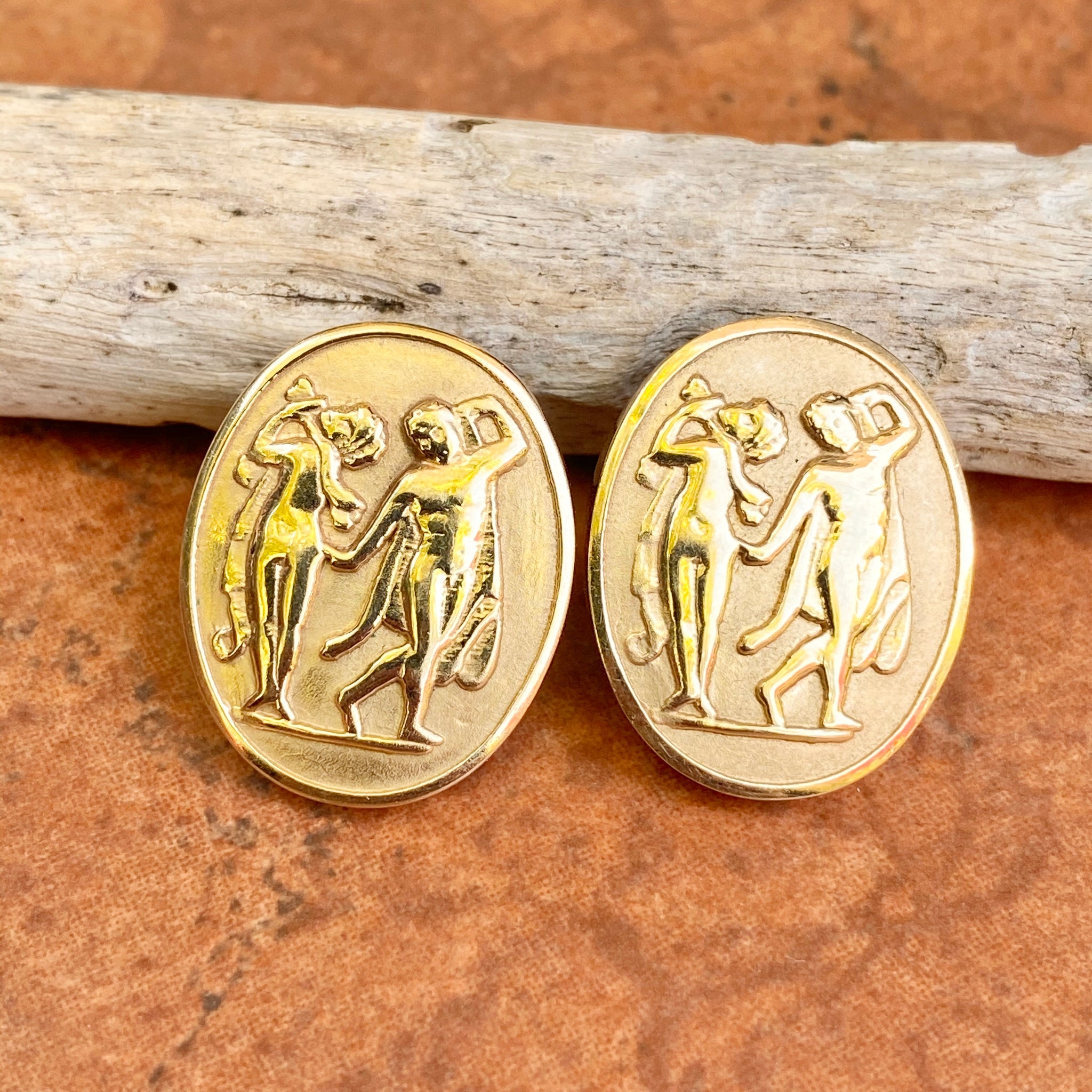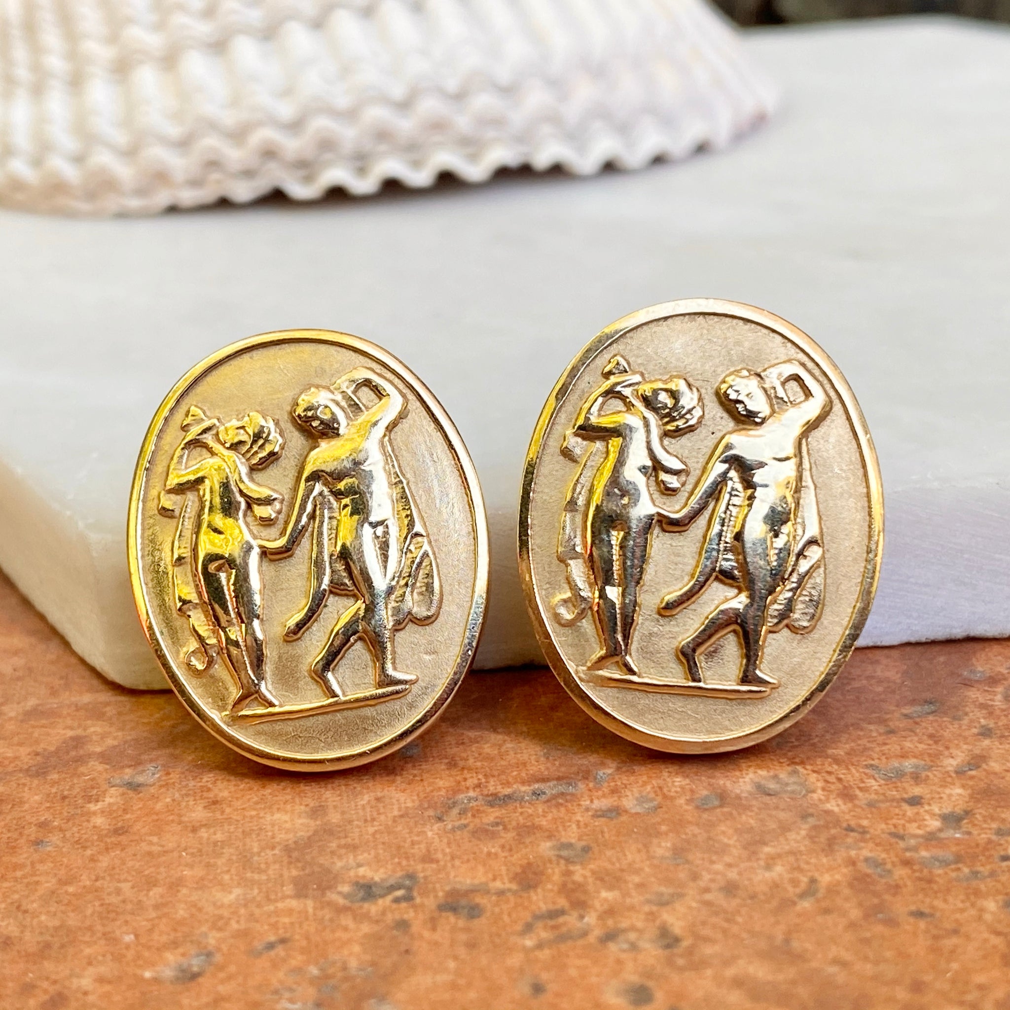 Estate 14KT Yellow Gold Italian Soldier Intaglio Large Oval Omega Back Earrings