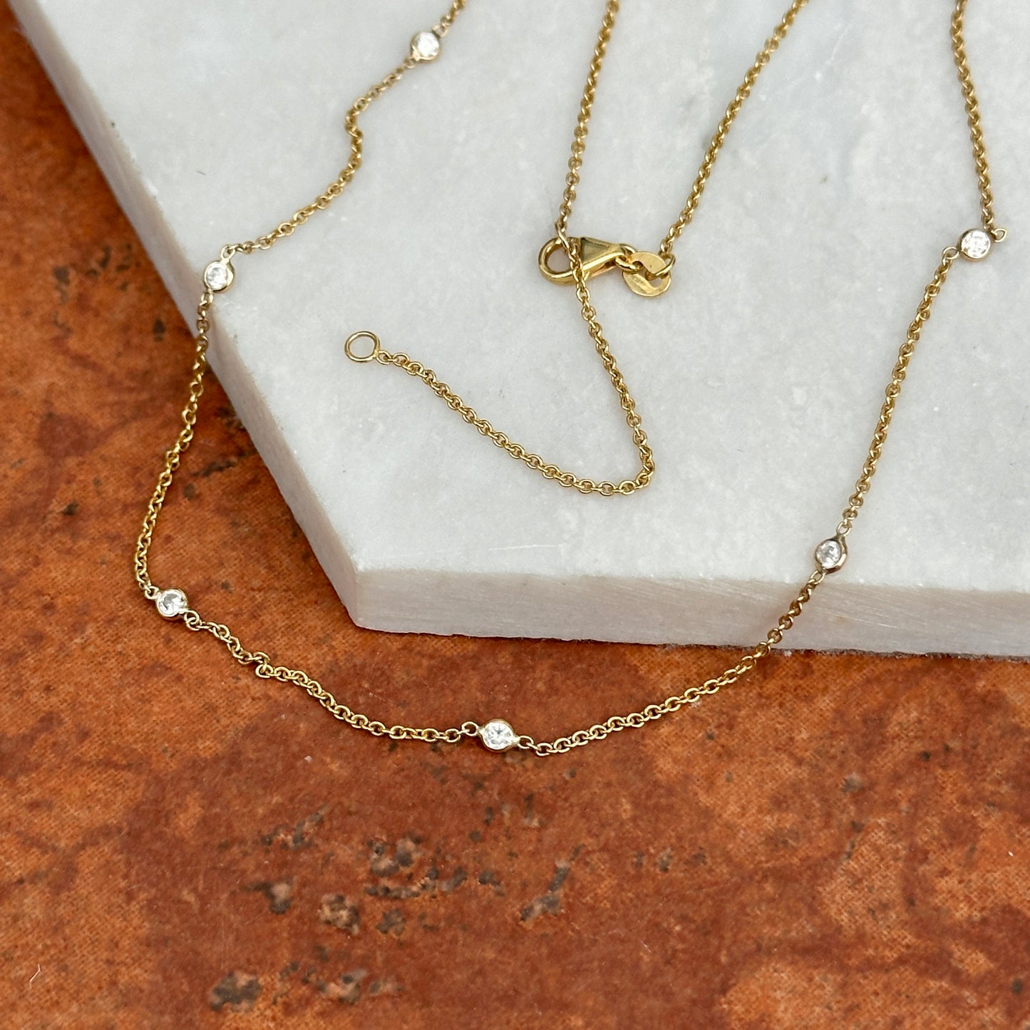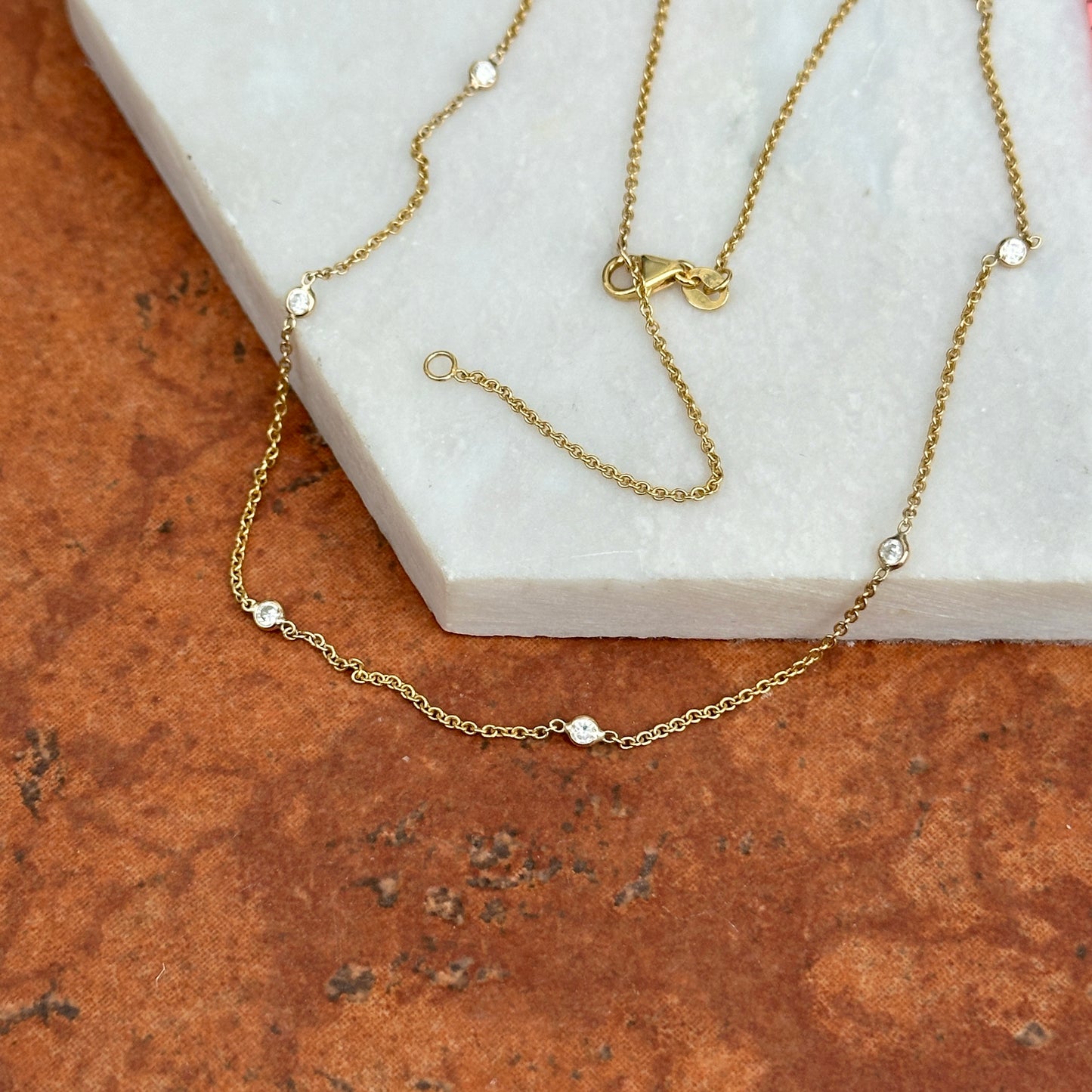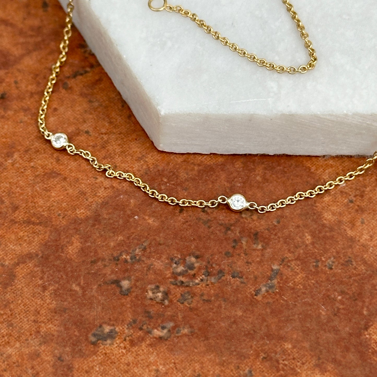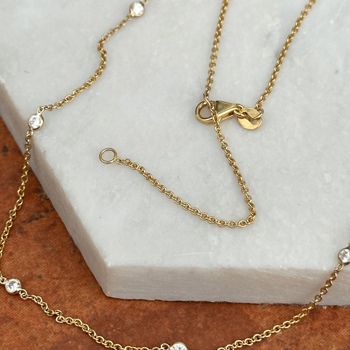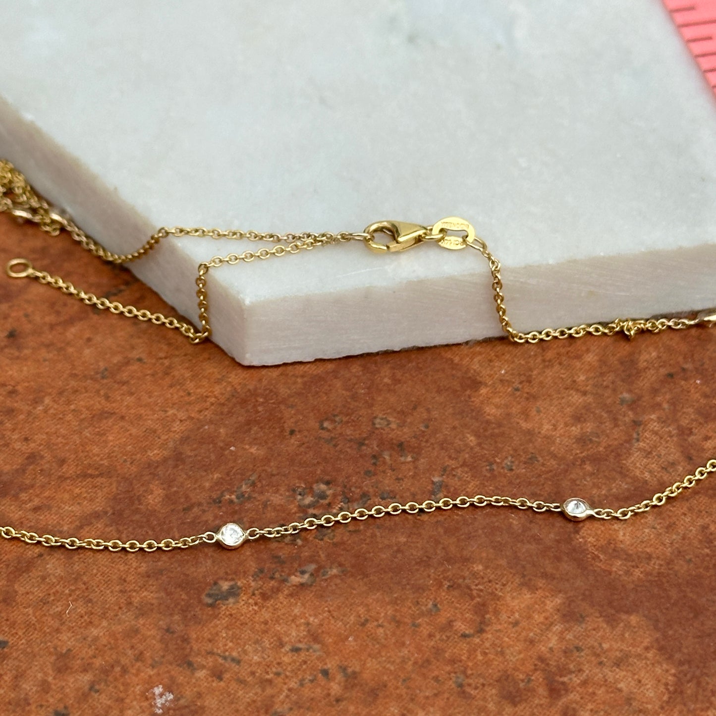 Estate 14KT Yellow Gold Lab Diamond Station Chain Necklace