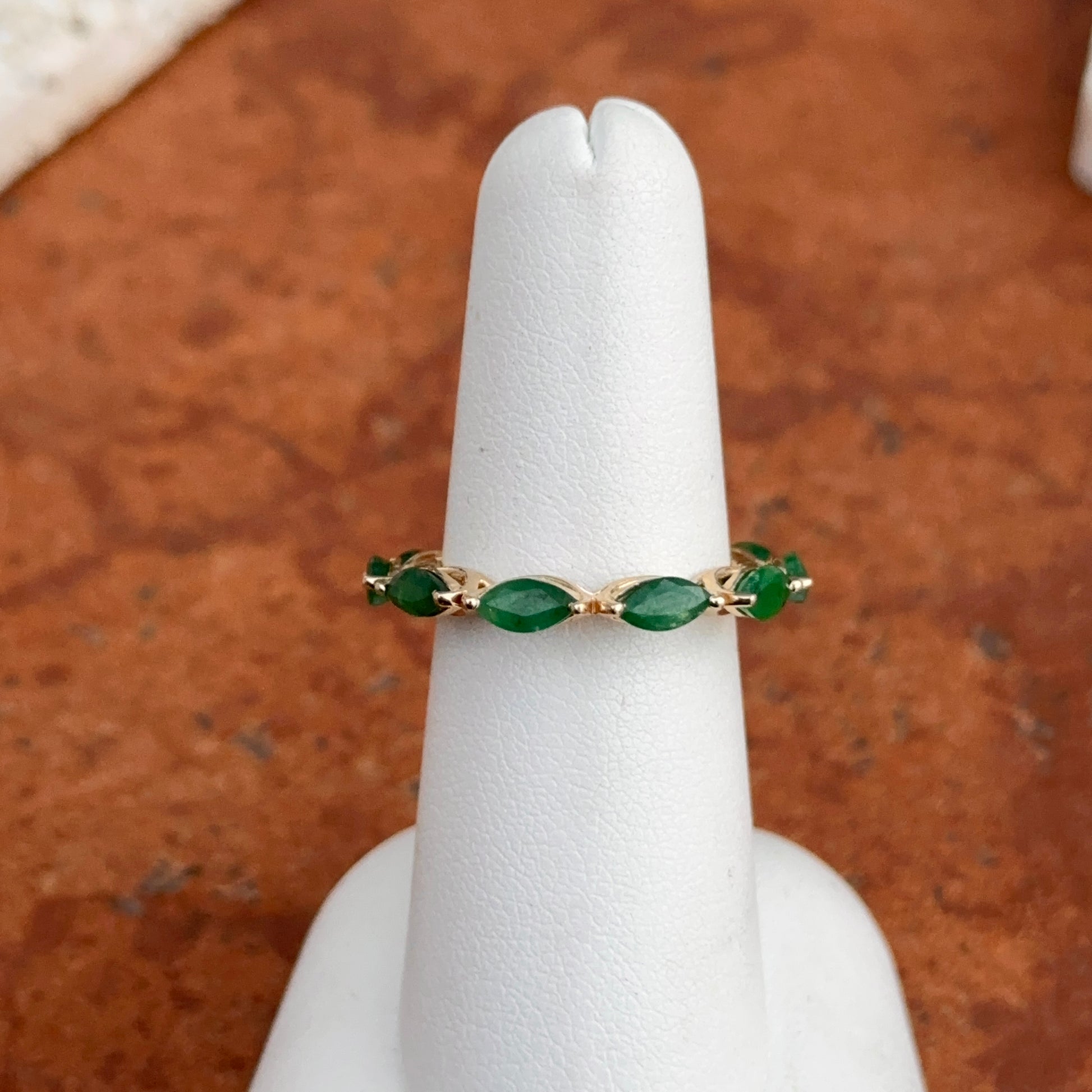 Estate 14KT Yellow Gold Marquise Emerald Eternity Band Ring Accent Ring 6.5