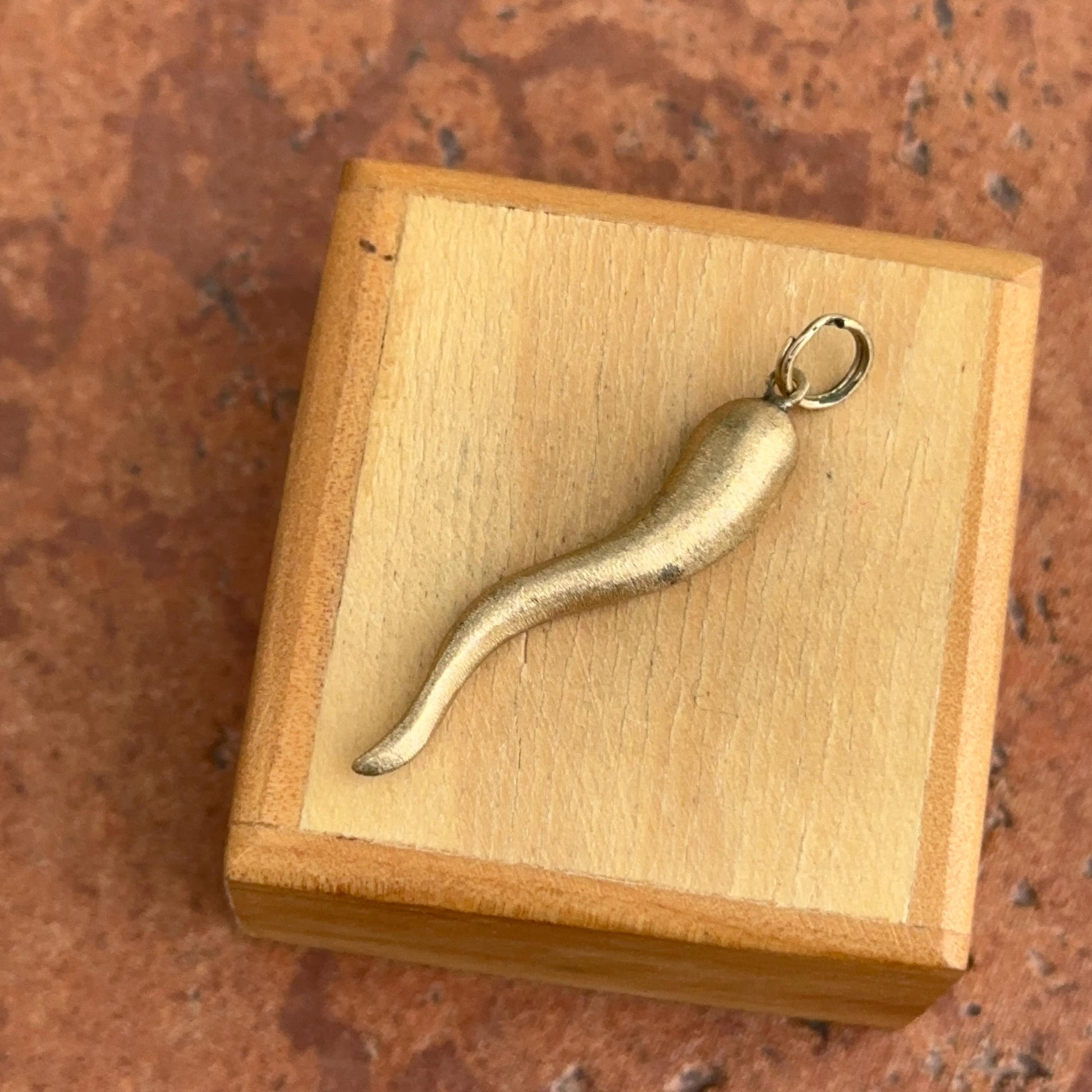 Estate Vintage Matte Satin Bark Finish 14KT Yellow Gold Italian horn "Cornicello" pendant charm.