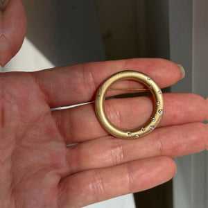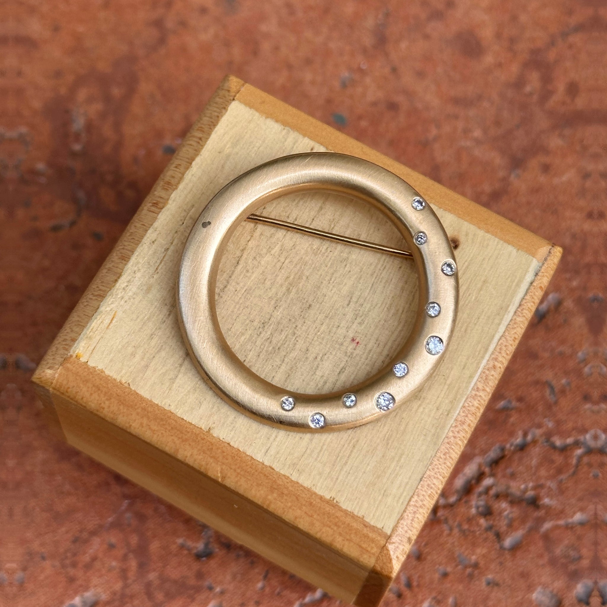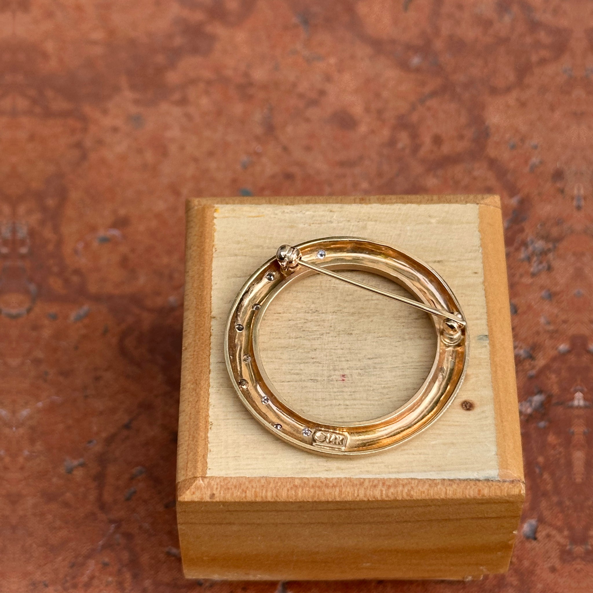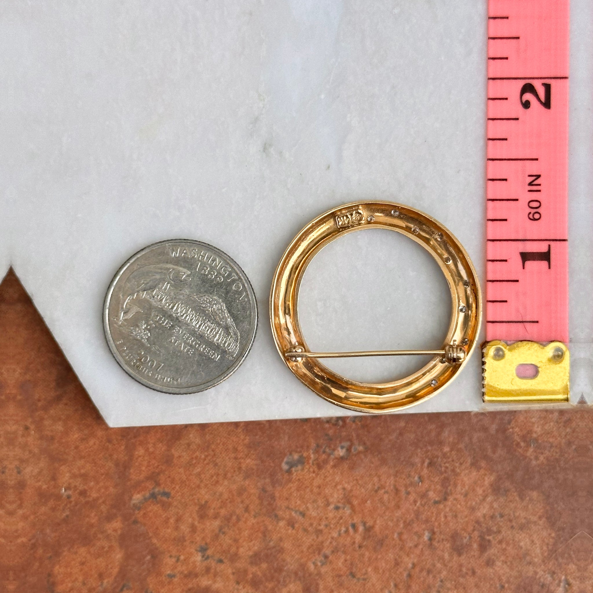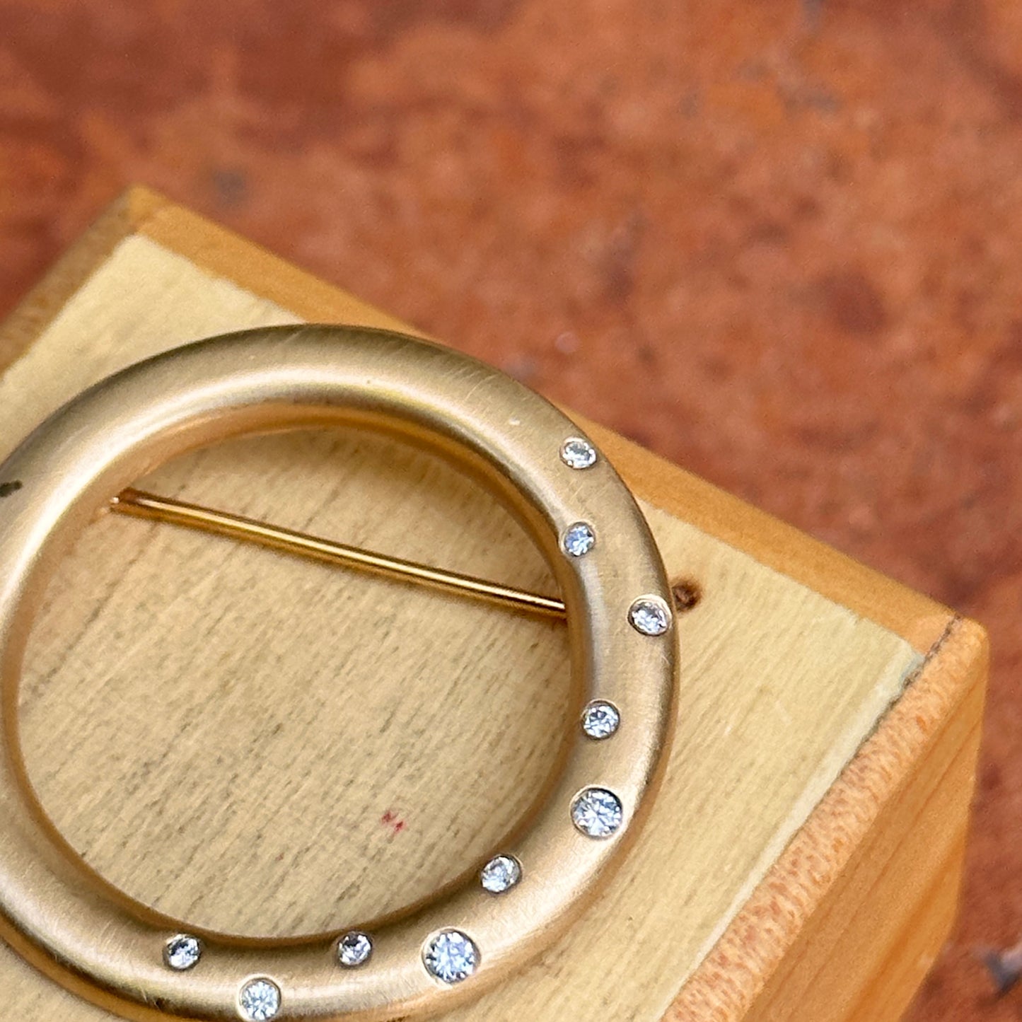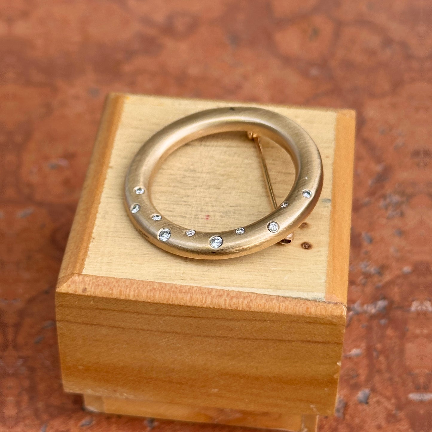 Estate 14KT Yellow Gold Matte Gypsy-Set Diamond Circle Pin Brooch