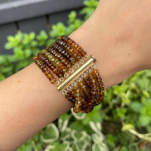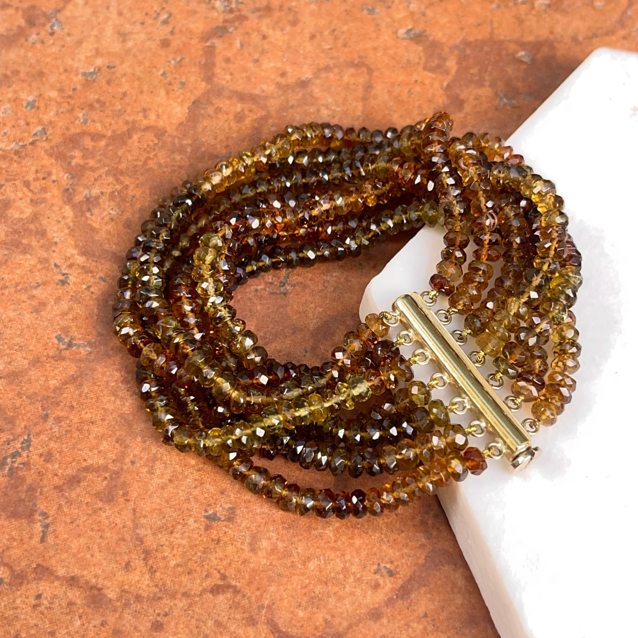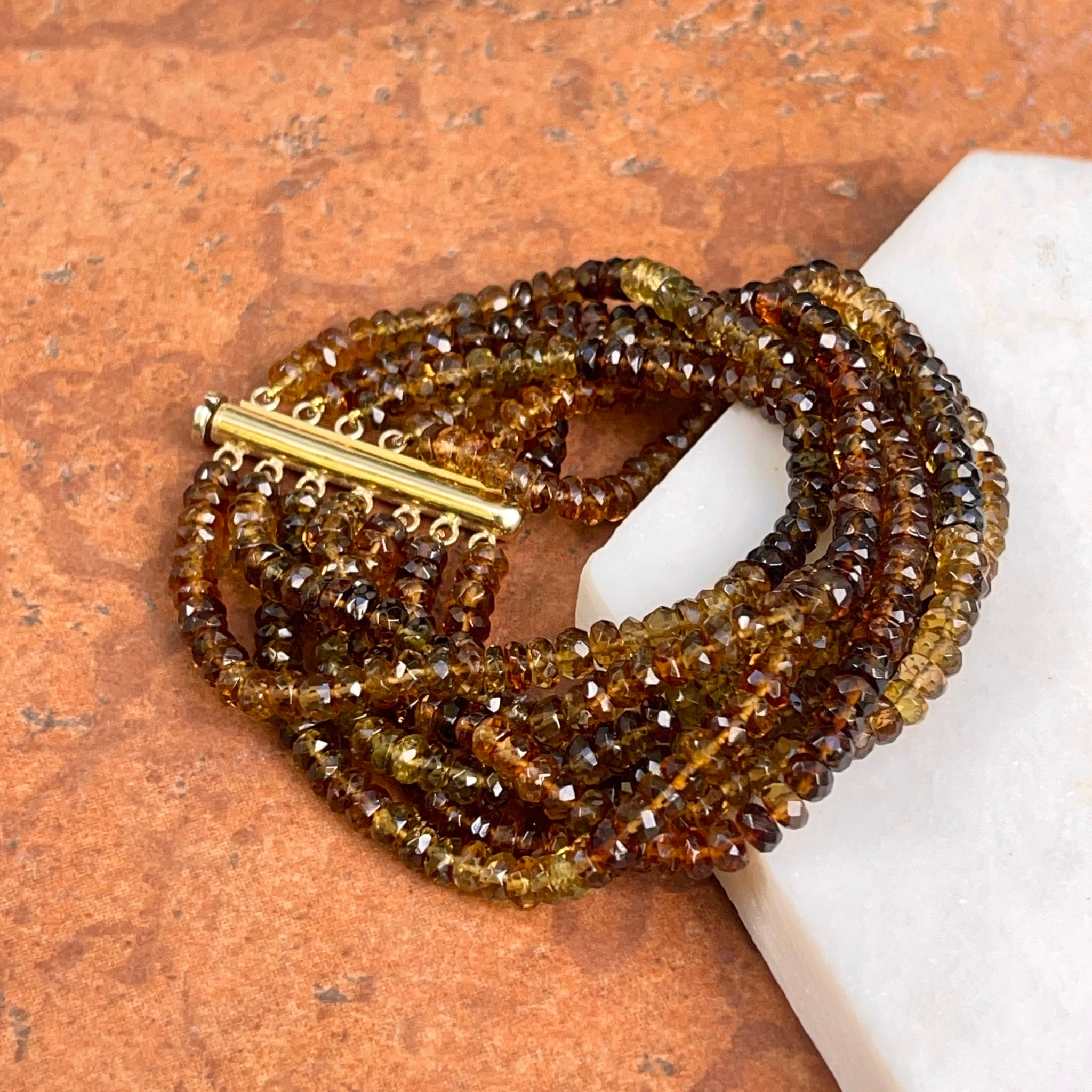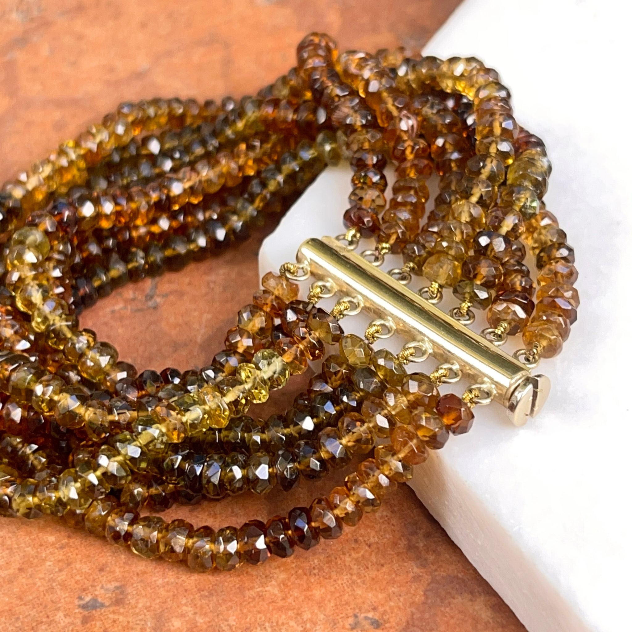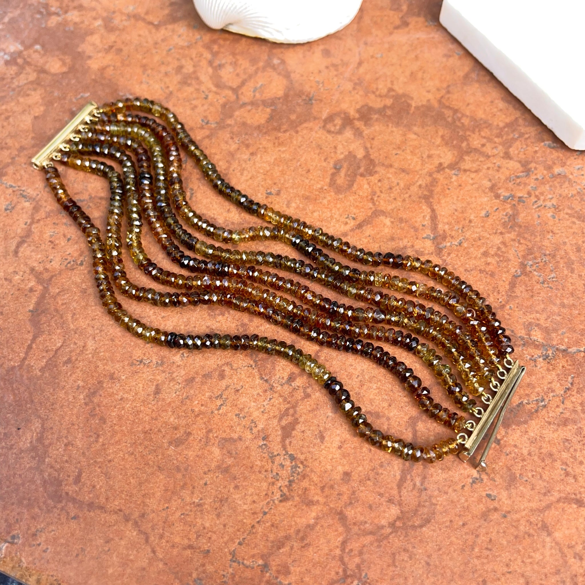 Estate 14KT Yellow Gold Multi-Strand Brown Tourmaline Beaded Bracelet