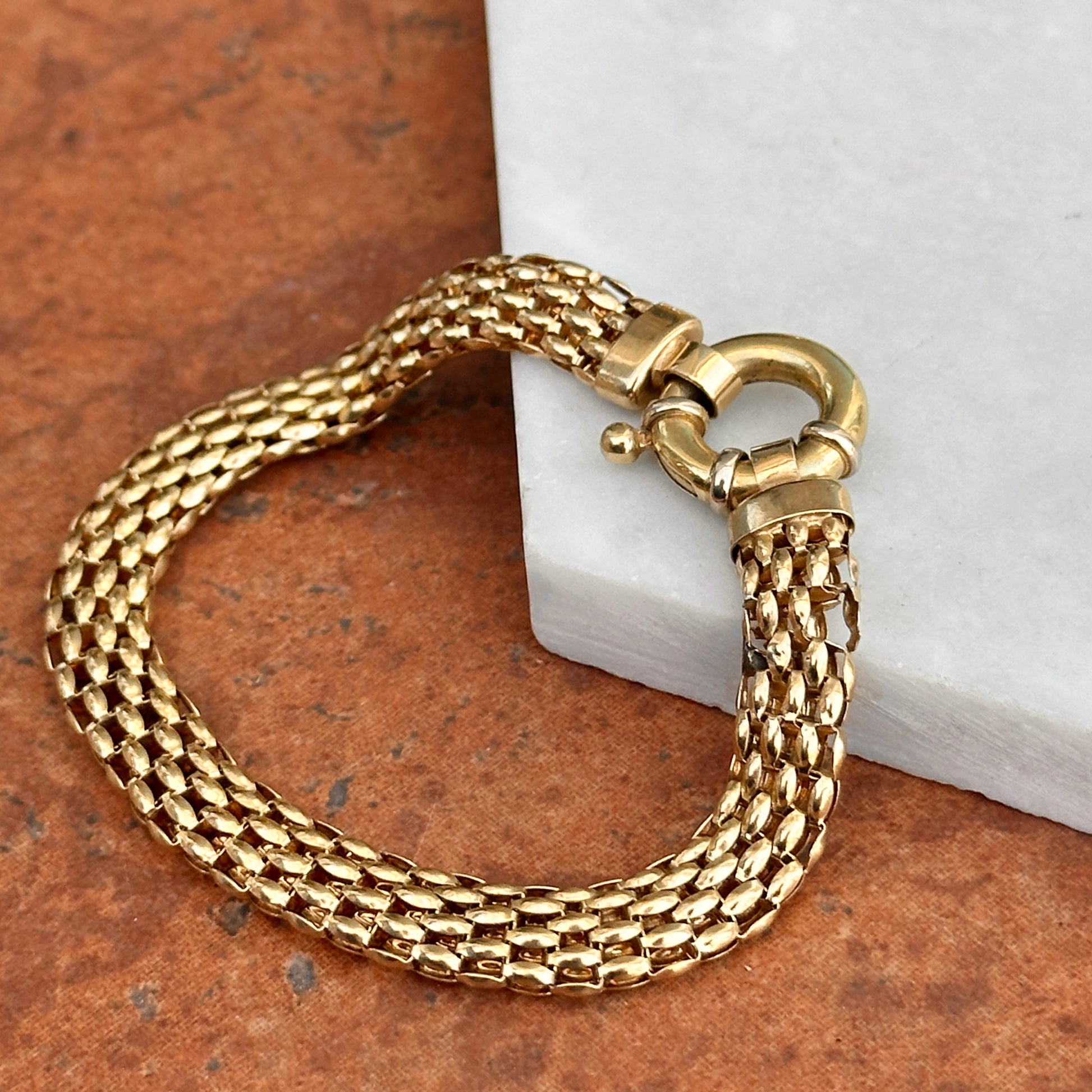 Estate 14KT Yellow Gold Open Weave Link Bracelet + Fancy Spring Ring 7”