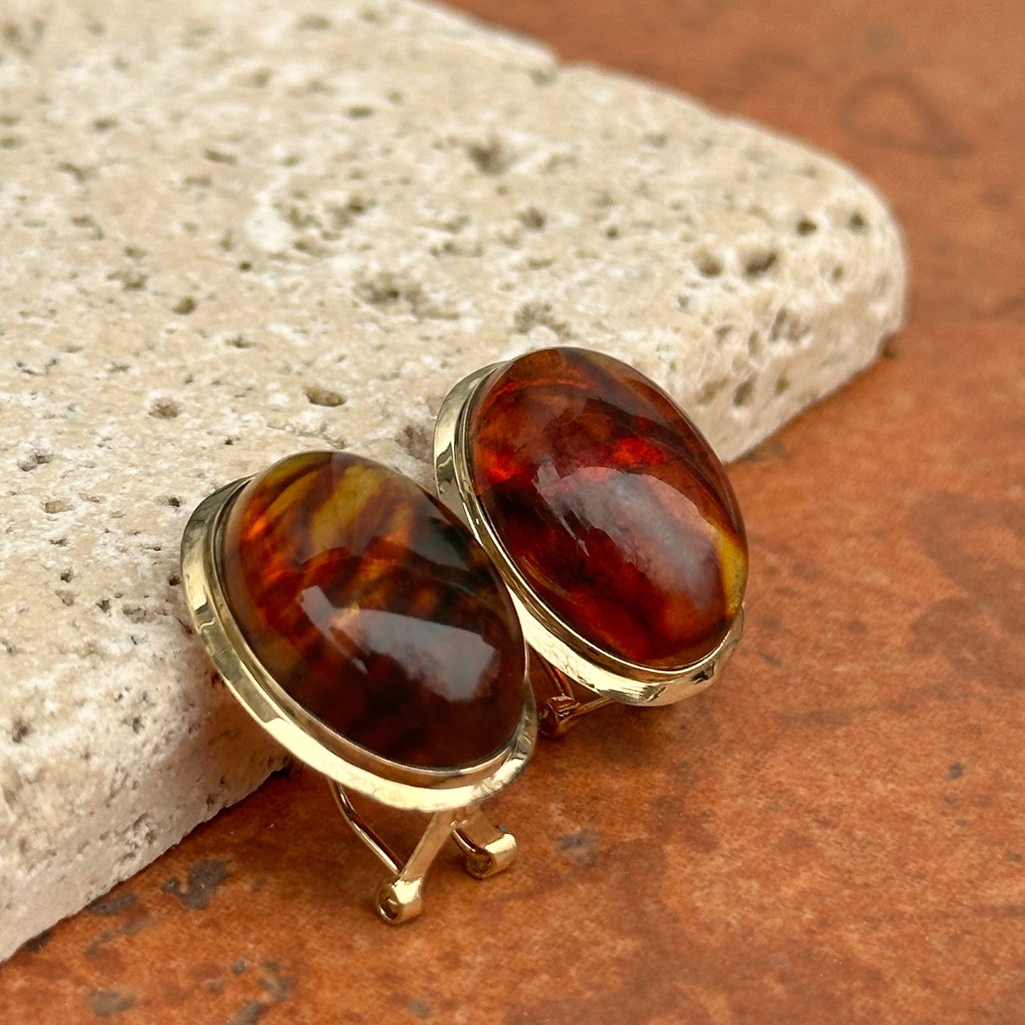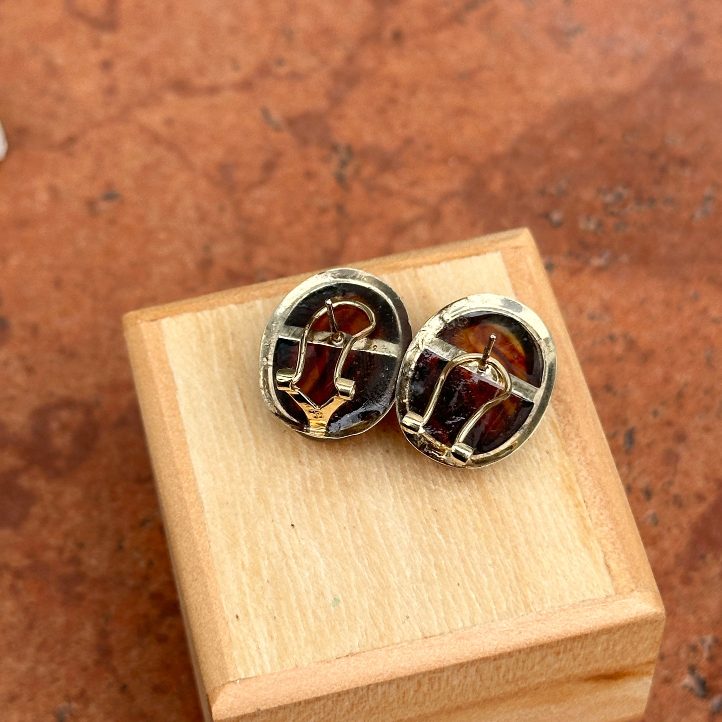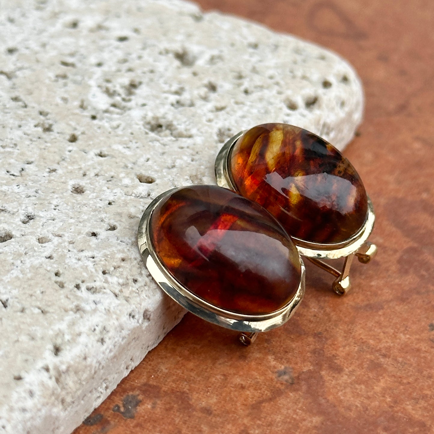 Estate 14KT Yellow Gold Oval Bezel Amber Omega Earrings