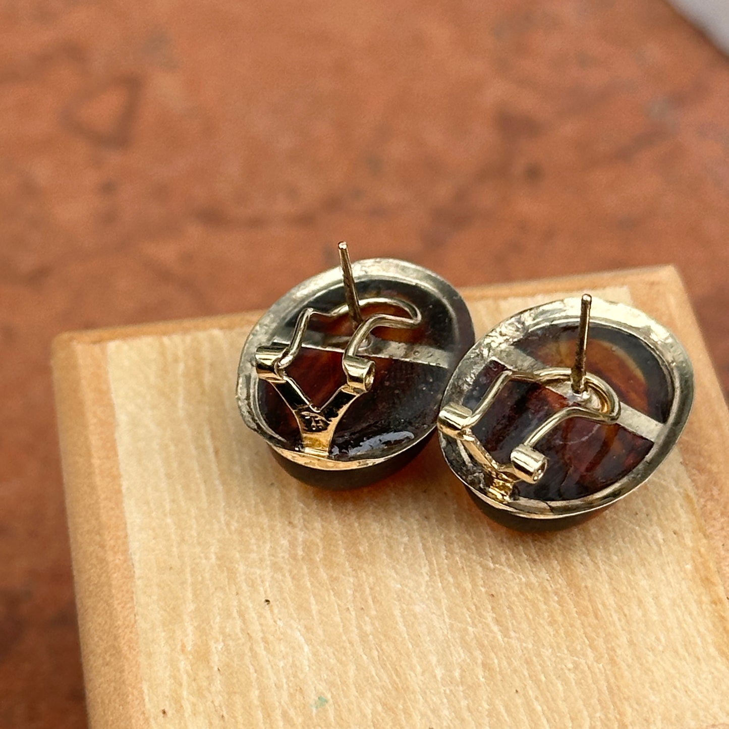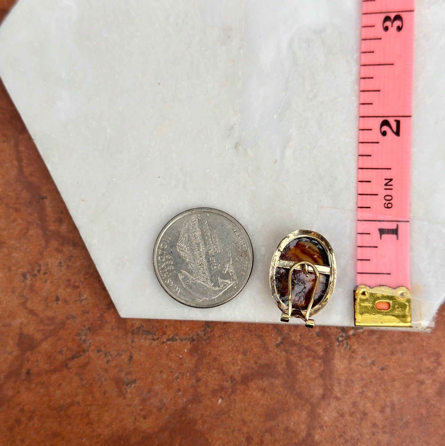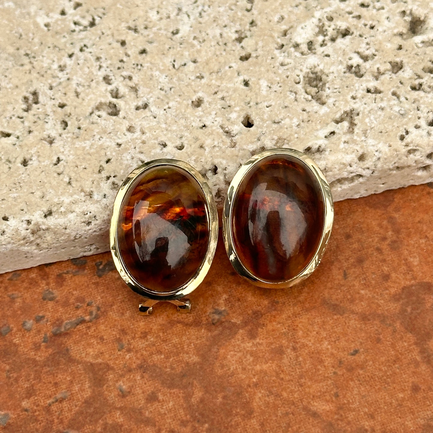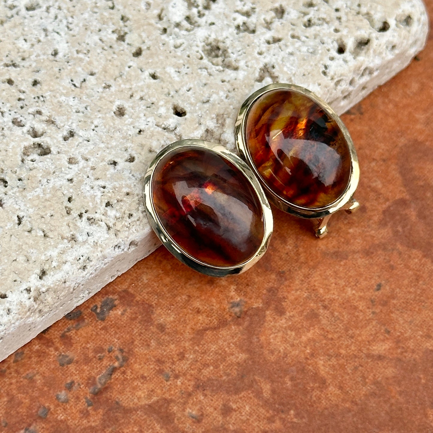 Estate 14KT Yellow Gold Oval Bezel Amber Omega Earrings
