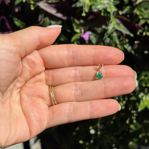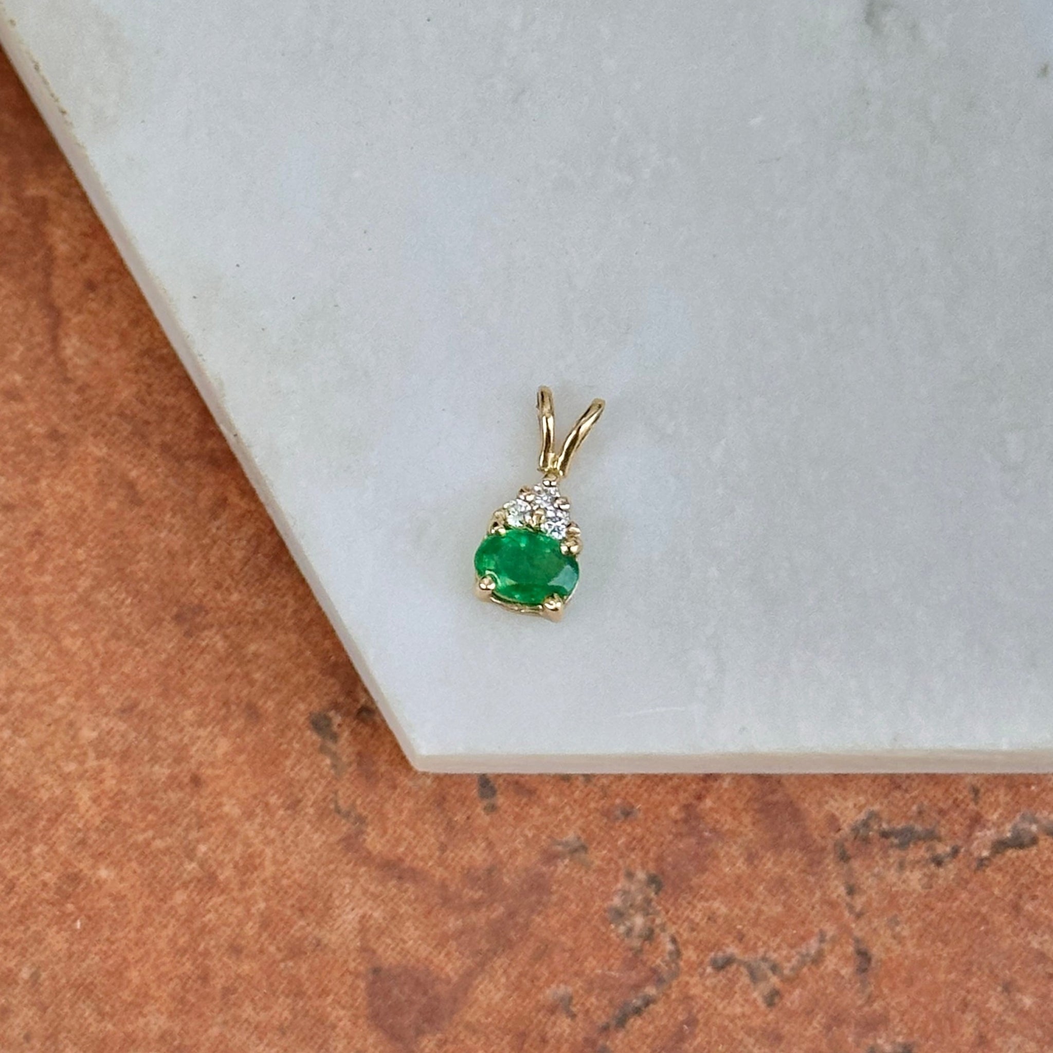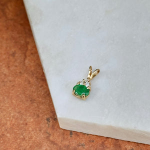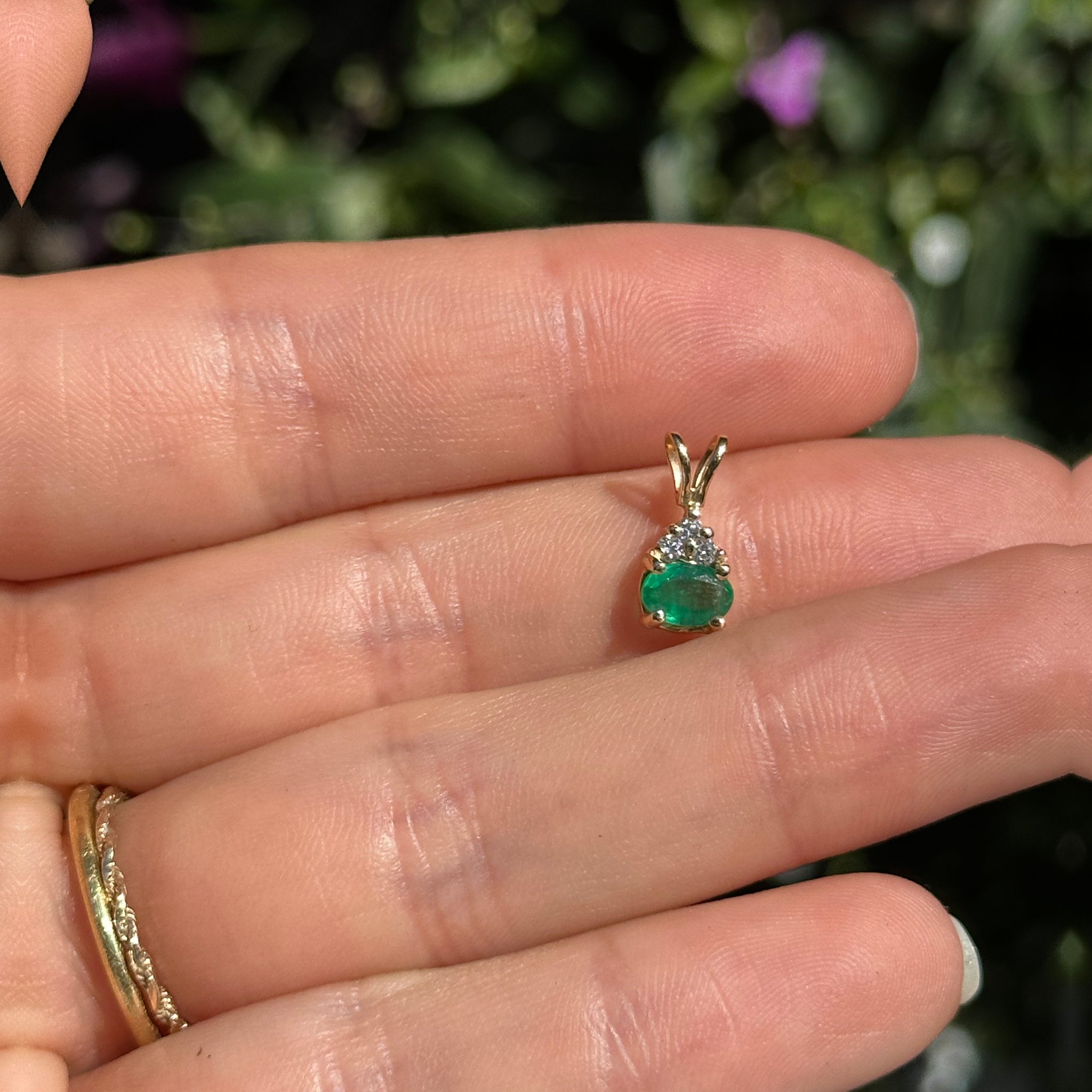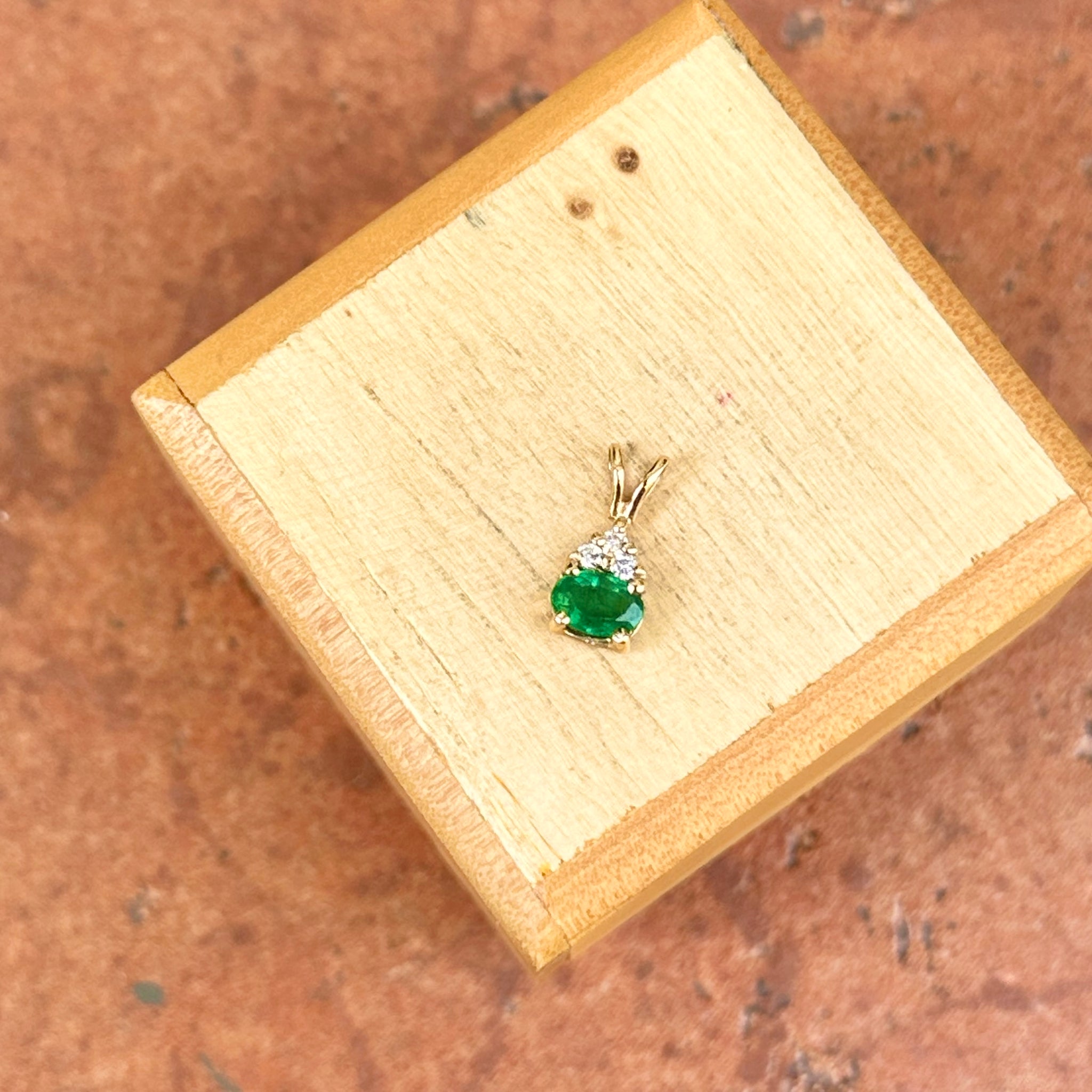 Estate 14KT Yellow Gold Oval Emerald + Diamond Drop Pendant
