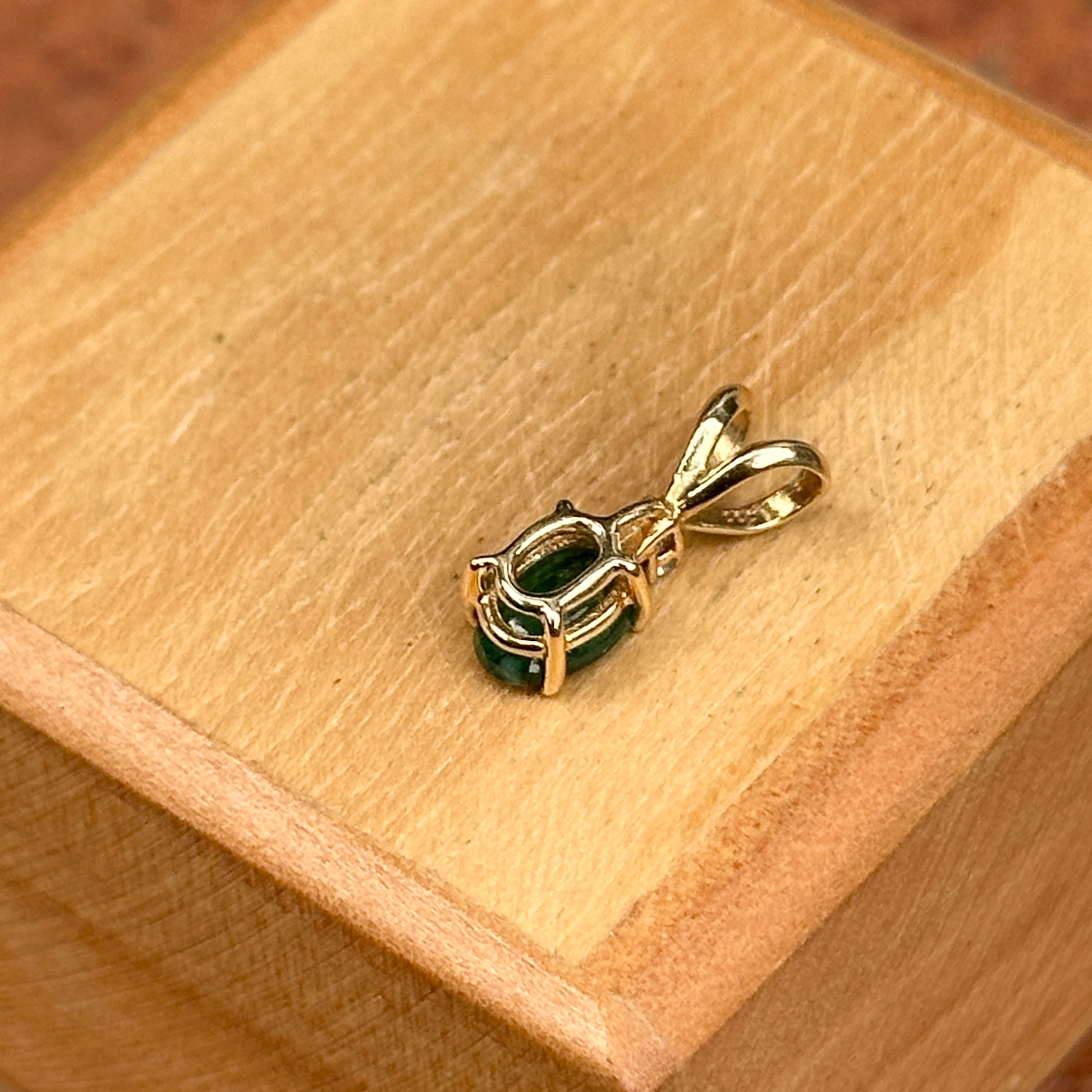 Estate 14KT Yellow Gold Oval Faceted Emerald + Diamond Pendant