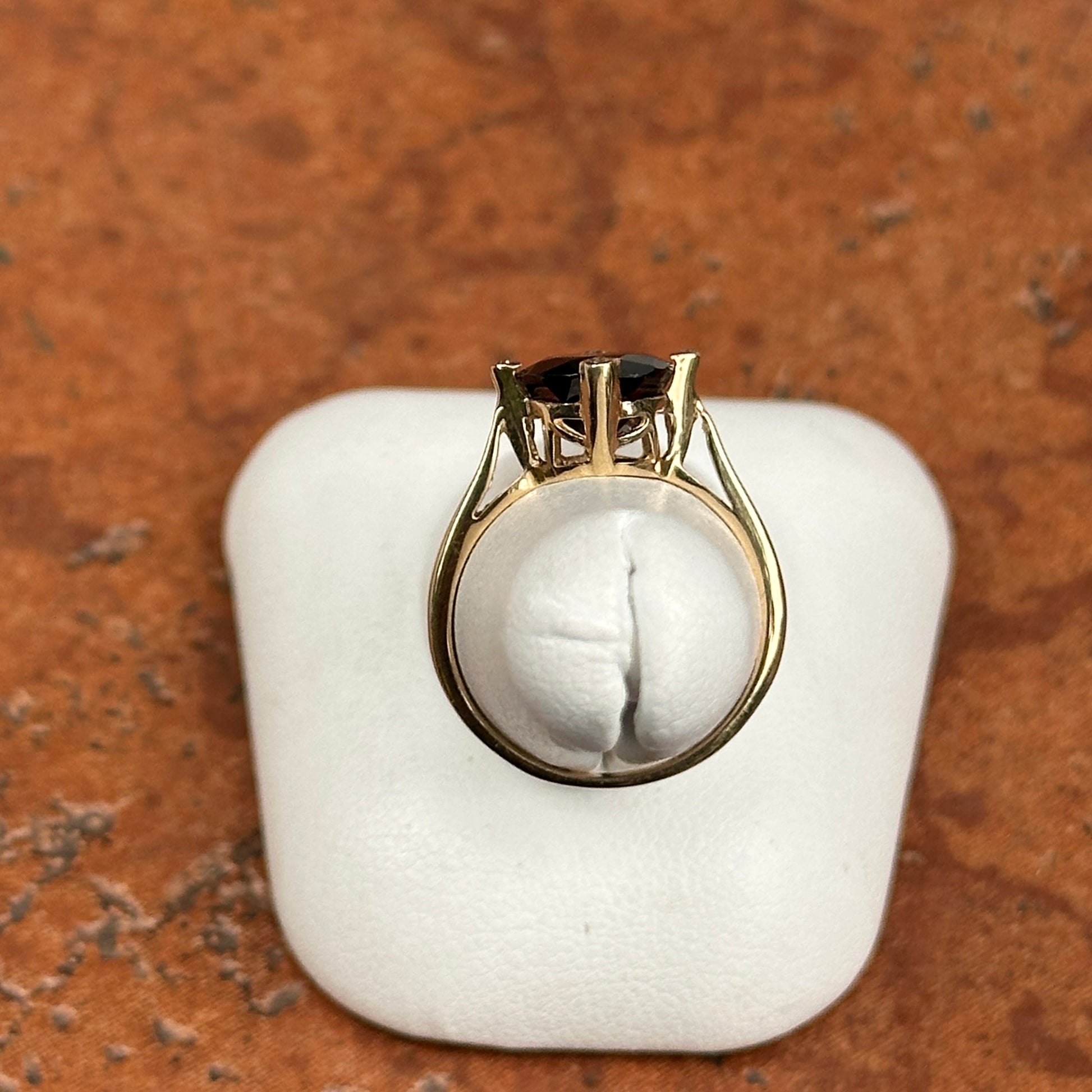 Estate 14KT Yellow Gold Oval Faceted Raspberry Garnet + Diamond Ring