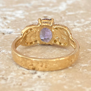 Estate 14KT Yellow Gold Oval 1.25 CT Tanzanite + Diamond Detailed Ring