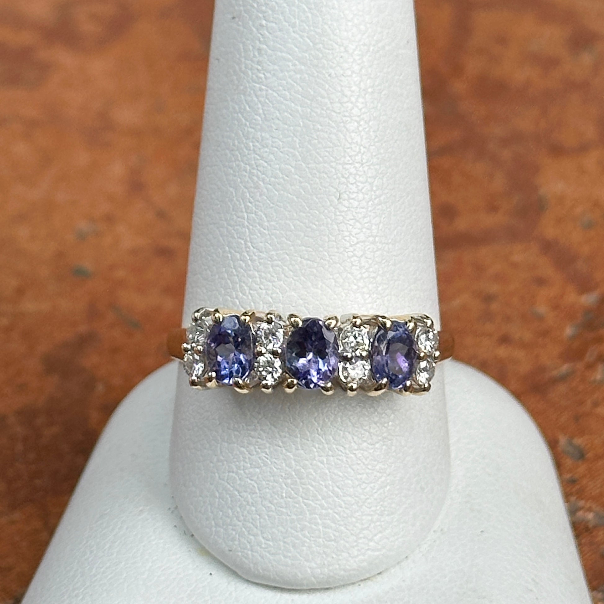 Estate 14K Yellow Gold Oval Tanzanite and Round Diamond Band