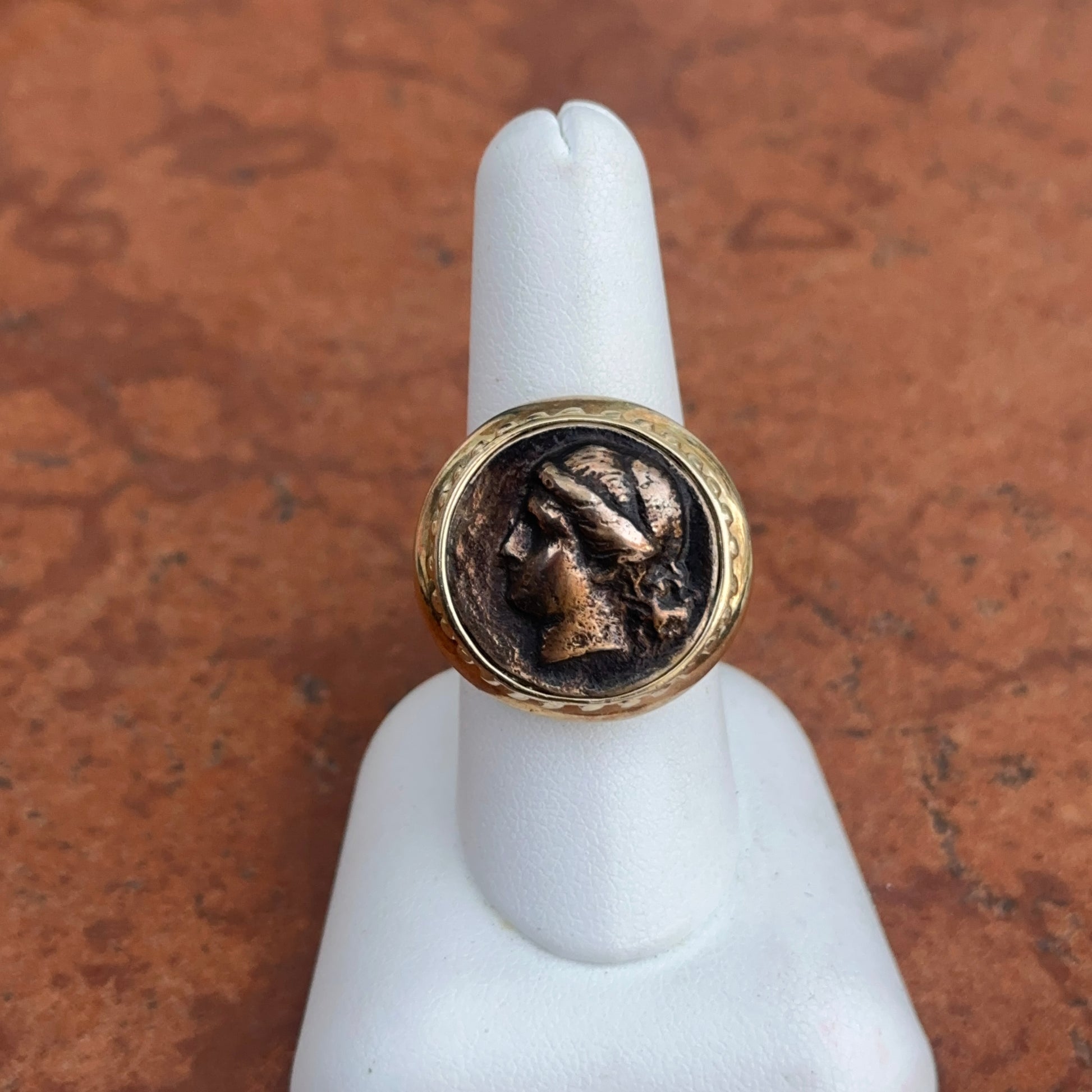 Estate 14KT Yellow Gold Plated Bezel Replica Bronze Sterling Silver Coin Ring