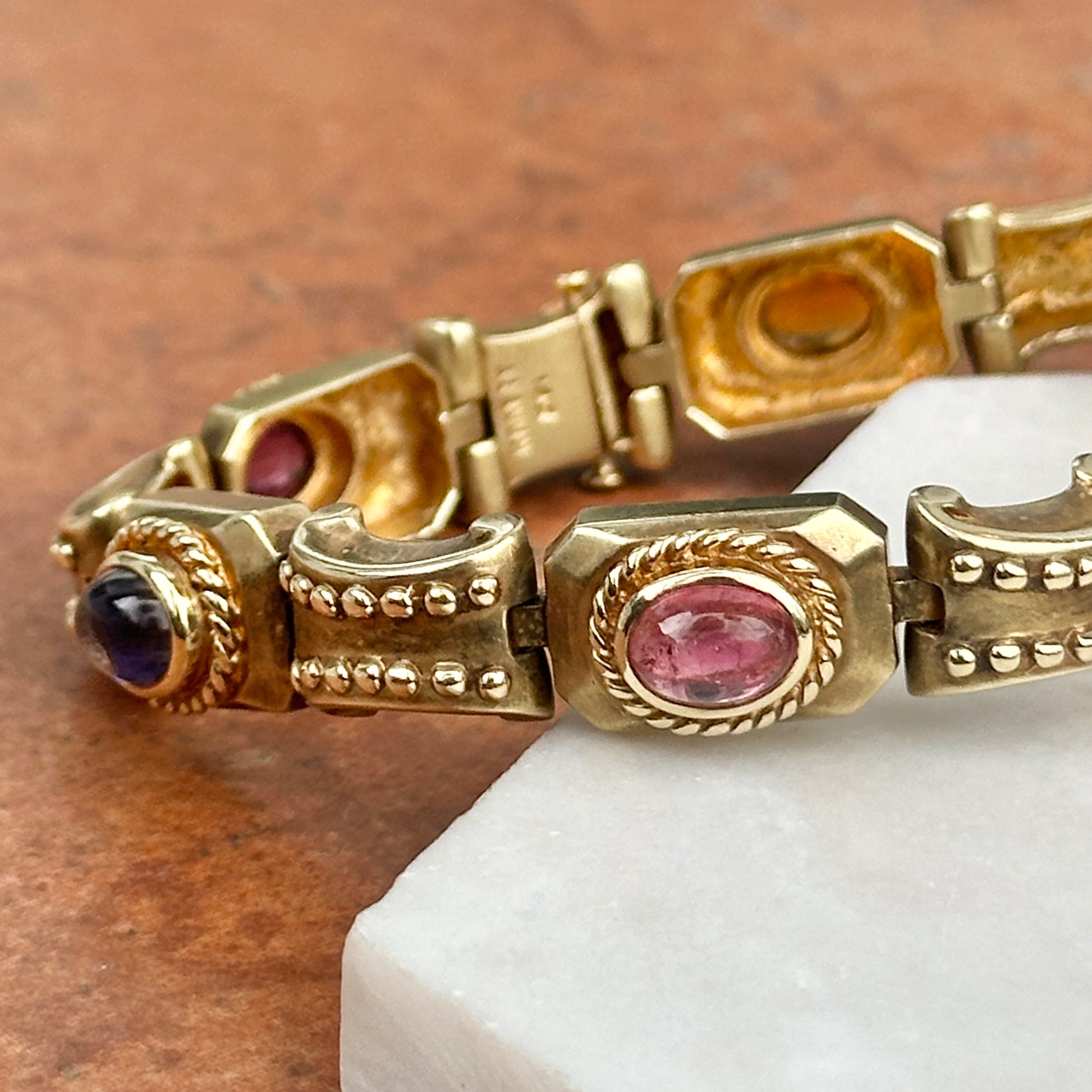 Estate 14KT Yellow Gold Raafty Cabochon Gemstone Link Bracelet