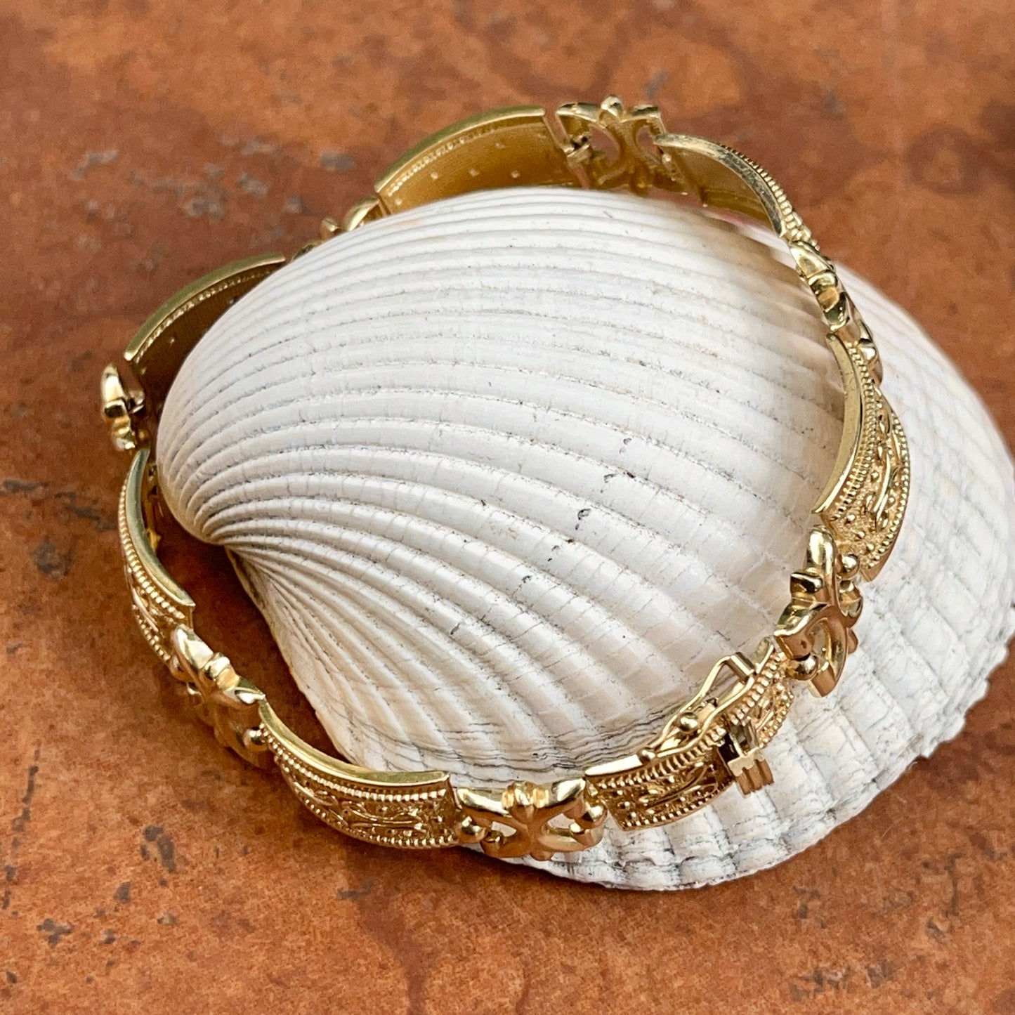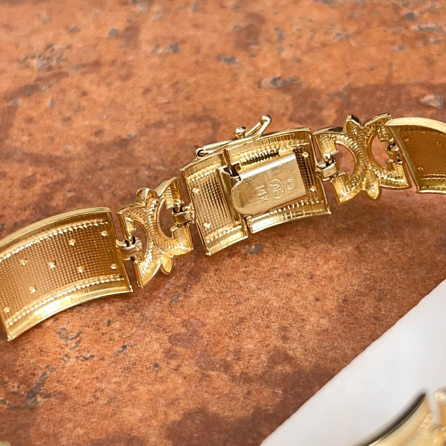 Estate 14KT Yellow Gold Rectangle Byzantine Textured Link Bracelet